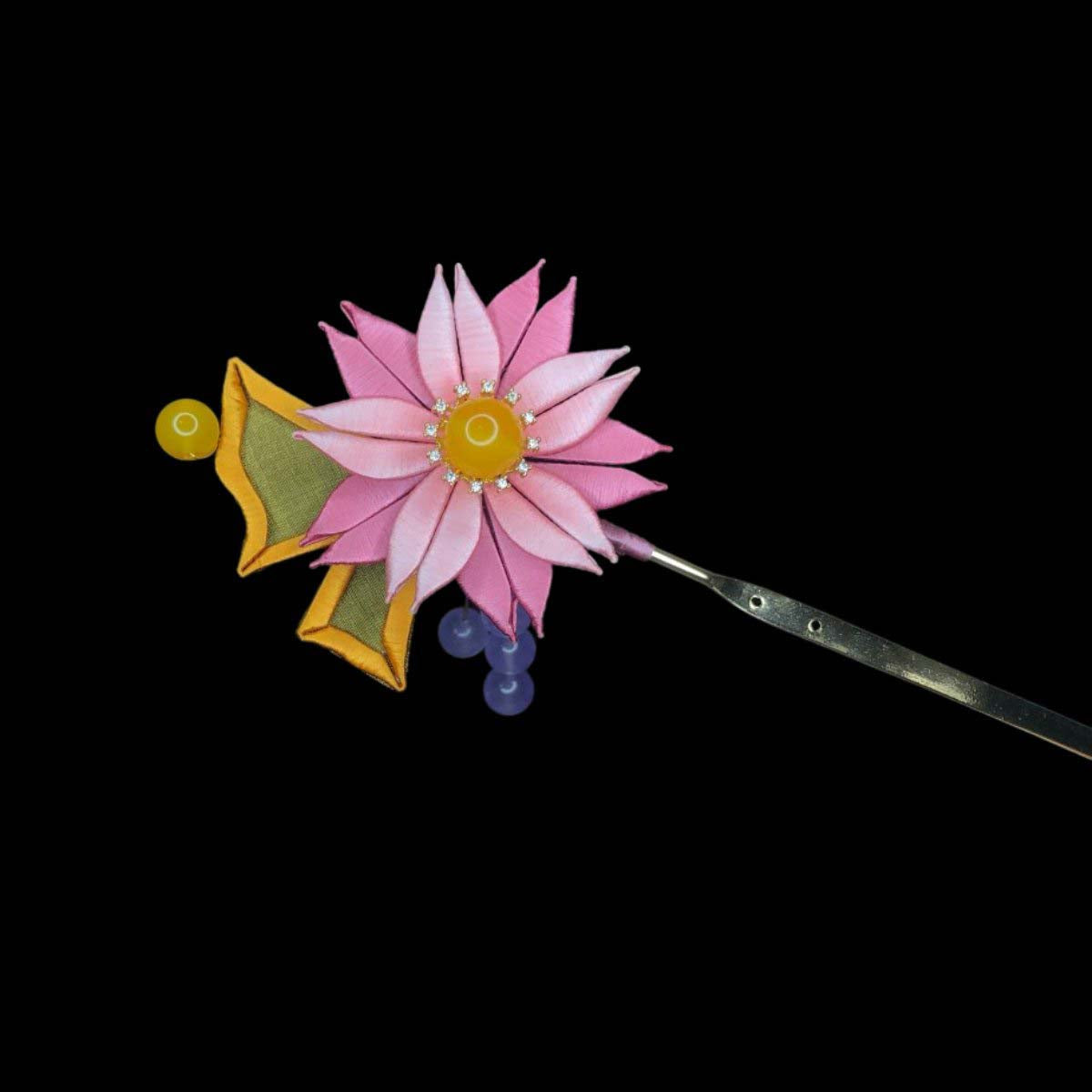 Materials: natural silk, color-preserving copper, yellow agate, blue agate