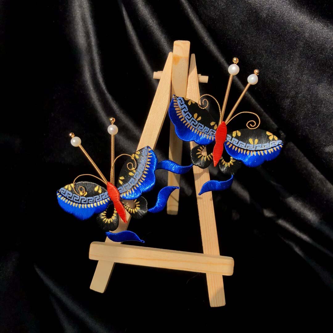 One butterfly style is a U hairpin, the two butterflies style is a pair of ear spoon hairpins, replicas of cultural relics from the Forbidden City.