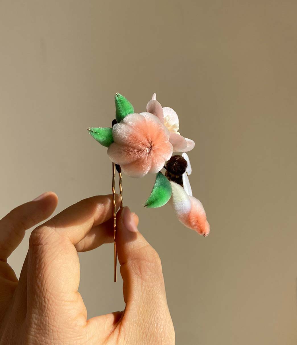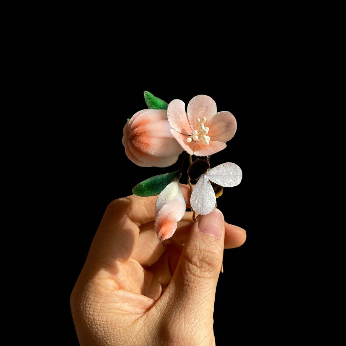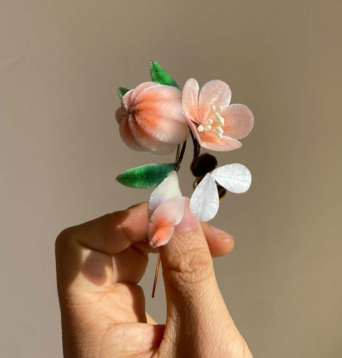 Peach Bespoke Hairpin-Silk Hairpin(Ronghua)