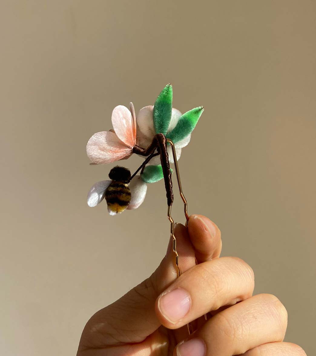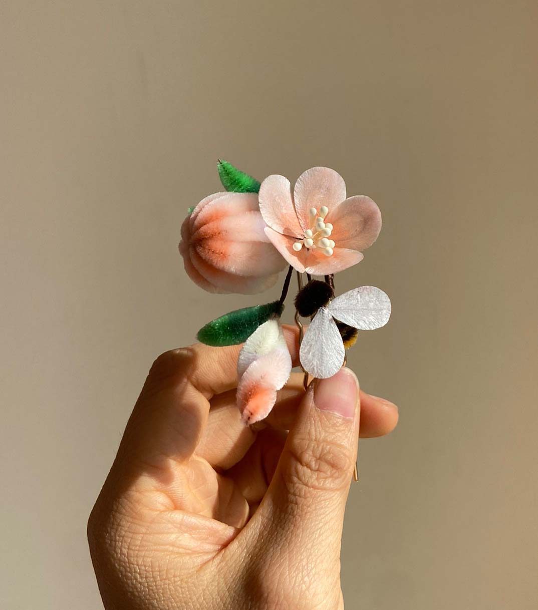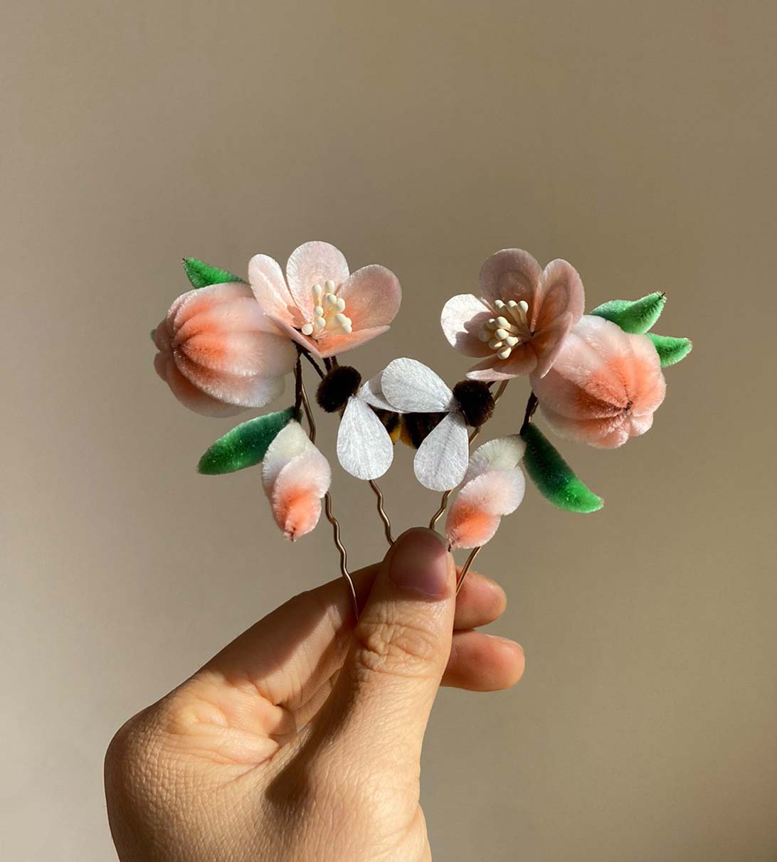 Peach Bespoke Hairpin-Silk Hairpin(Ronghua)