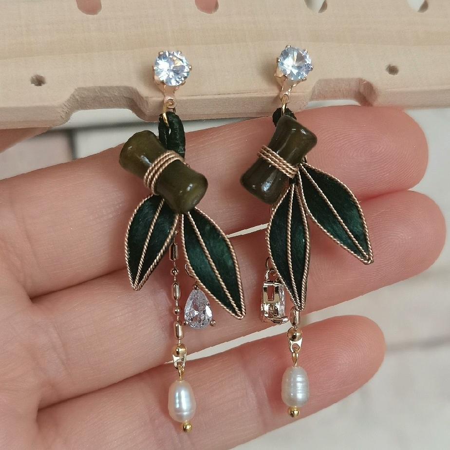 Bamboo Bespoke Earrings - Silk Earrings(Ronghua)
