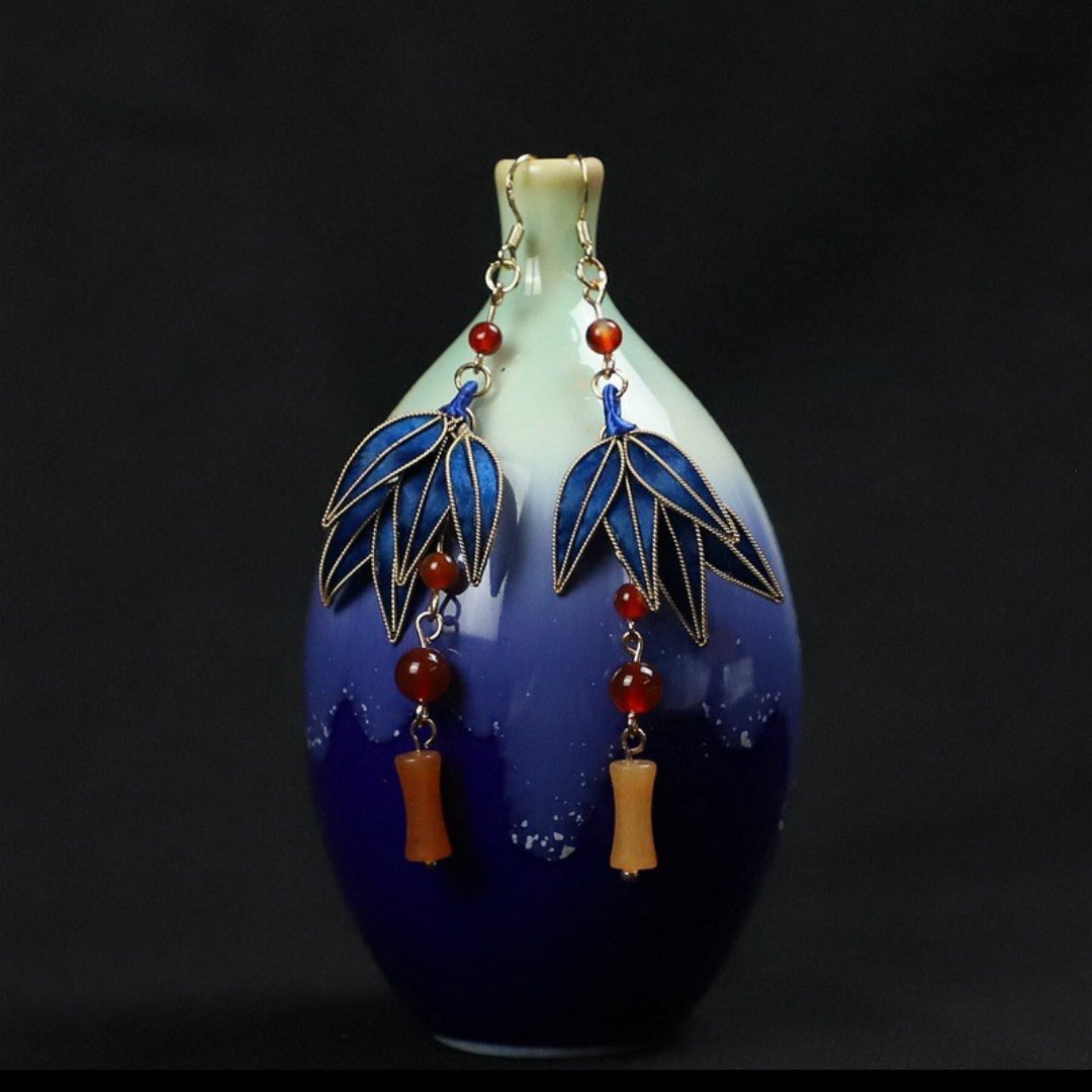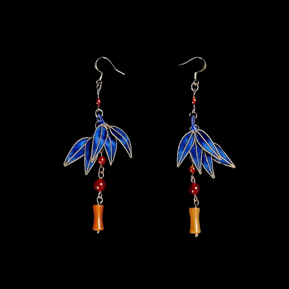 Bamboo Leaf Bespoke Earrings - Silk Earrings(Ronghua)