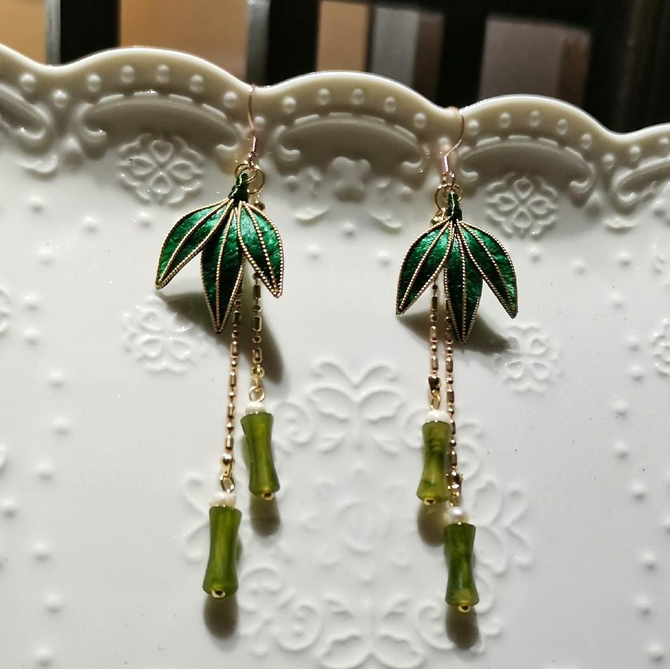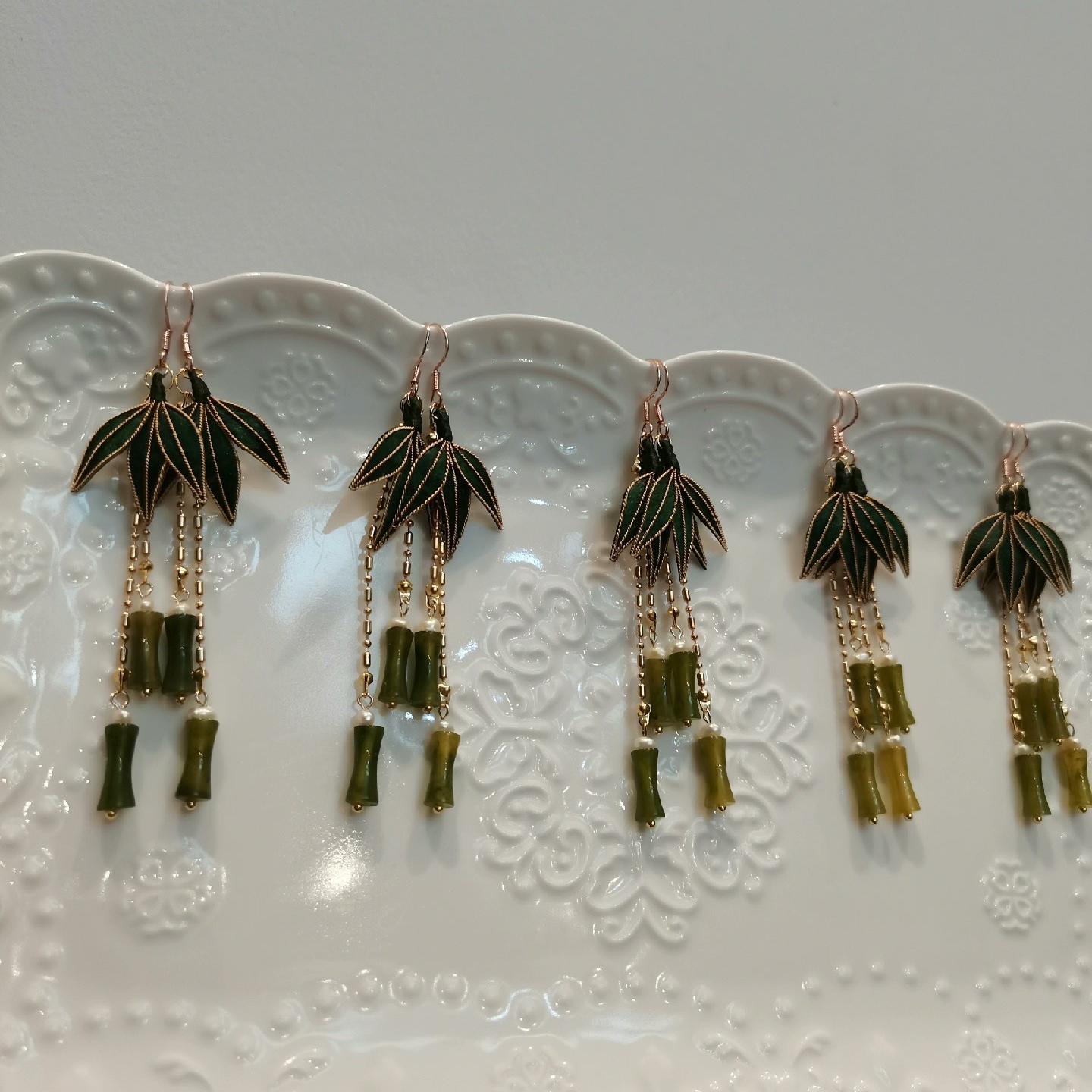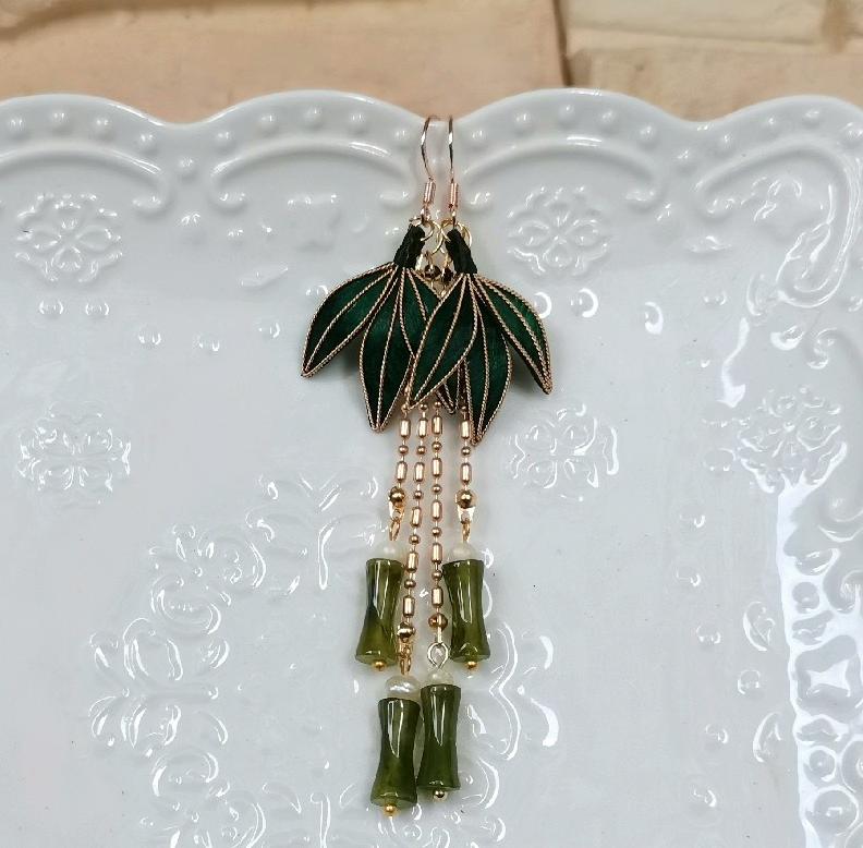 Bamboo Leaves Bespoke Earrings - Silk Earrings(Ronghua)