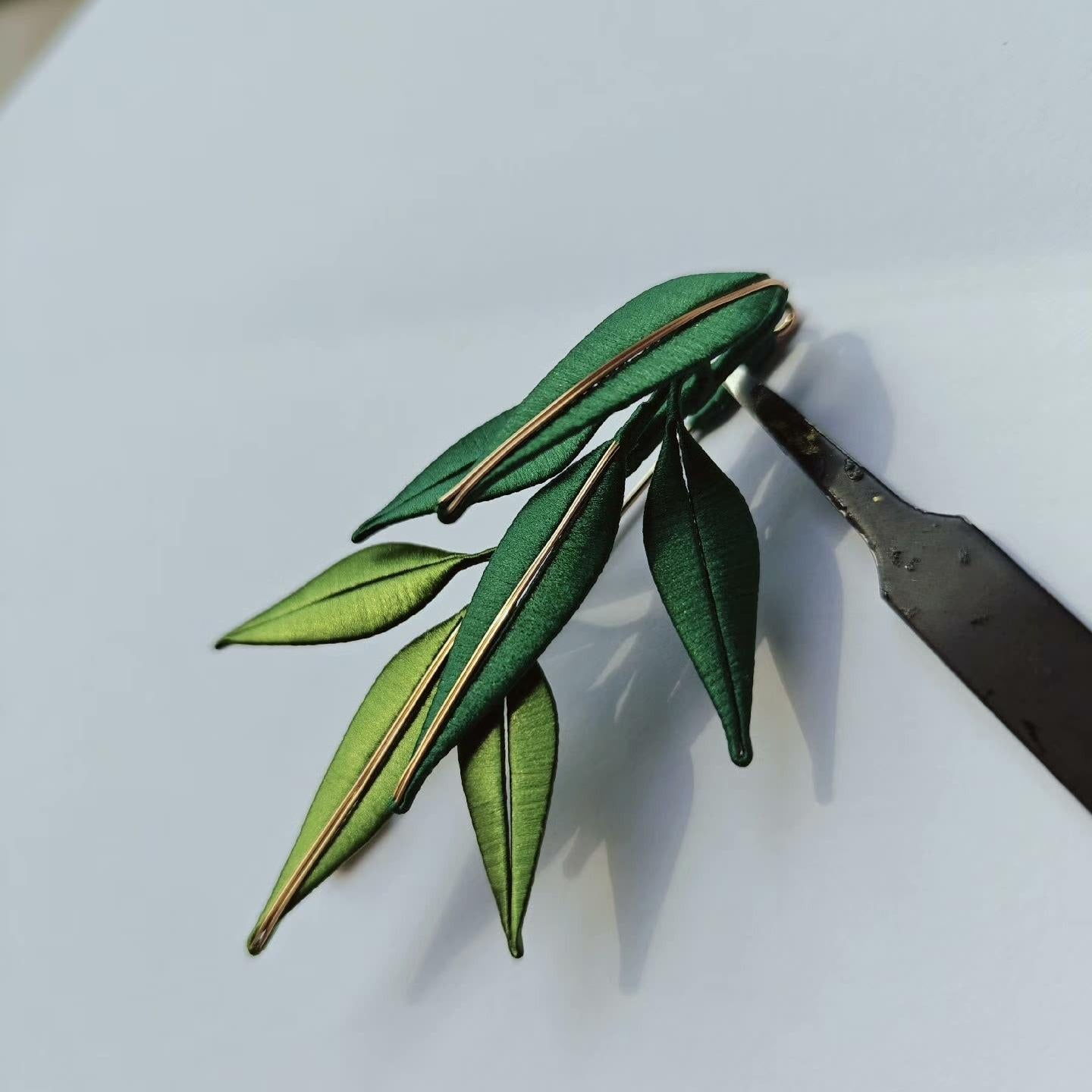 Bamboo Leaves Handmade Brooch - Silk Brooch(Chanhua)