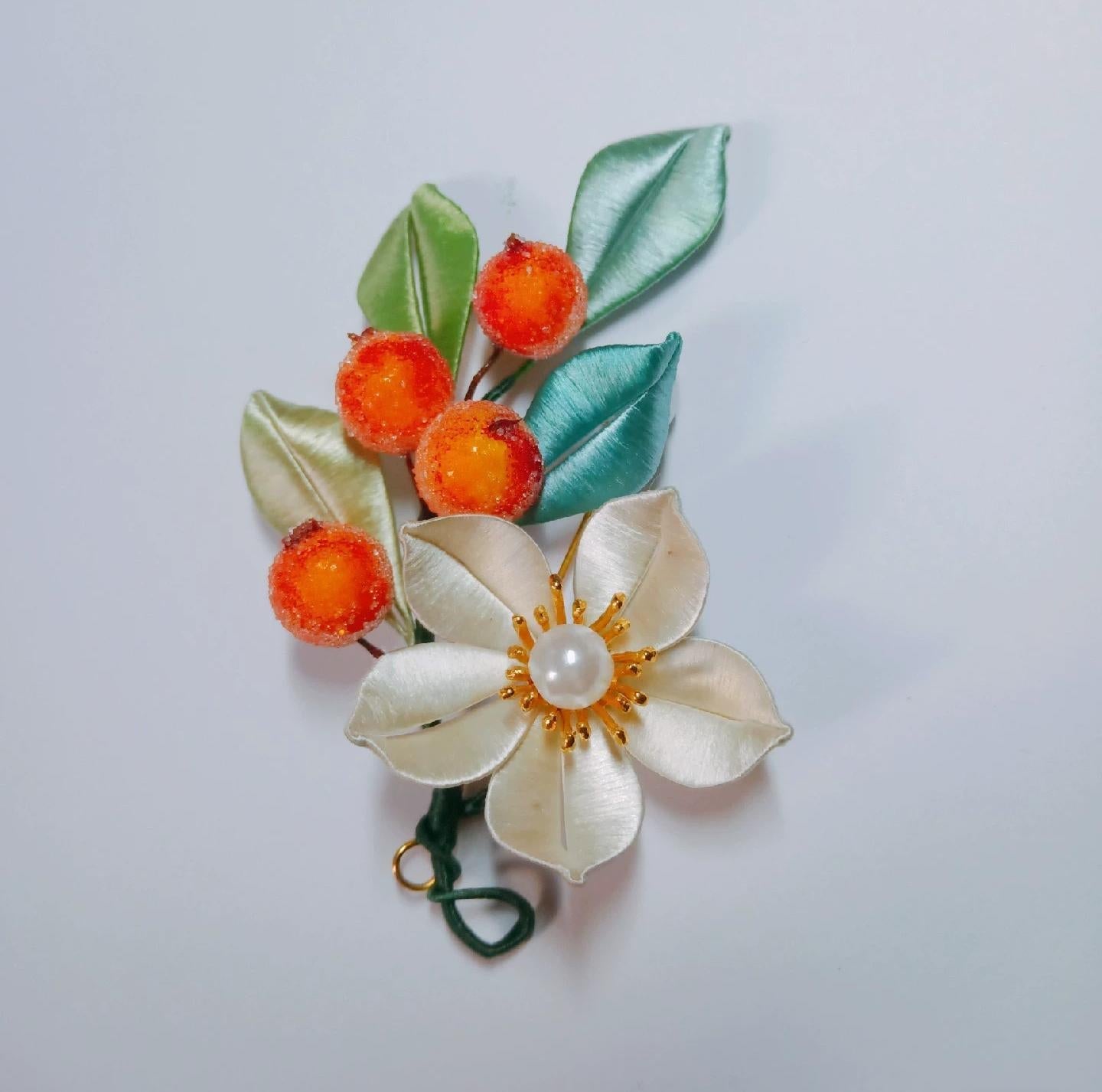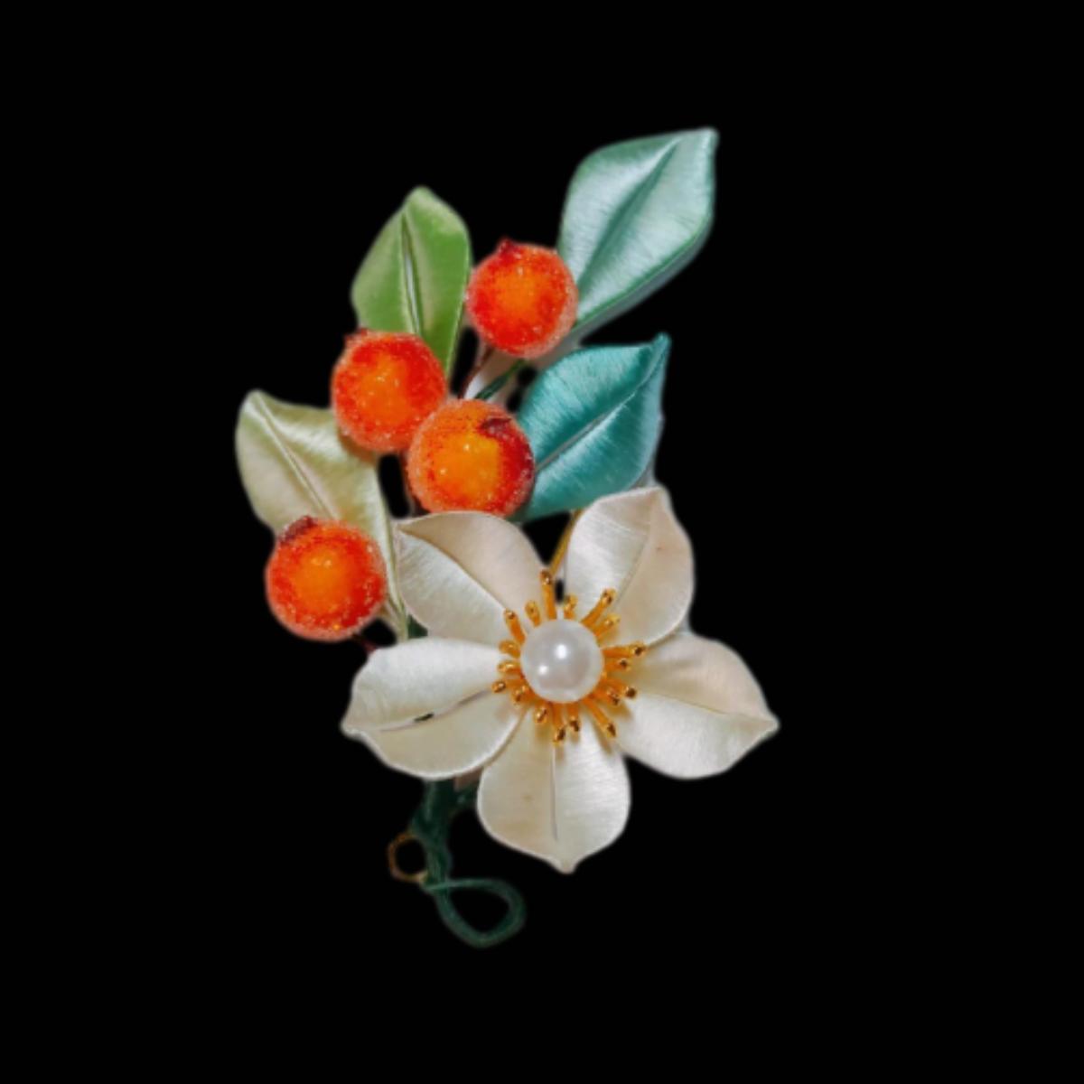Berry And Flower Handmade Brooch - Silk Brooch(Chanhua)