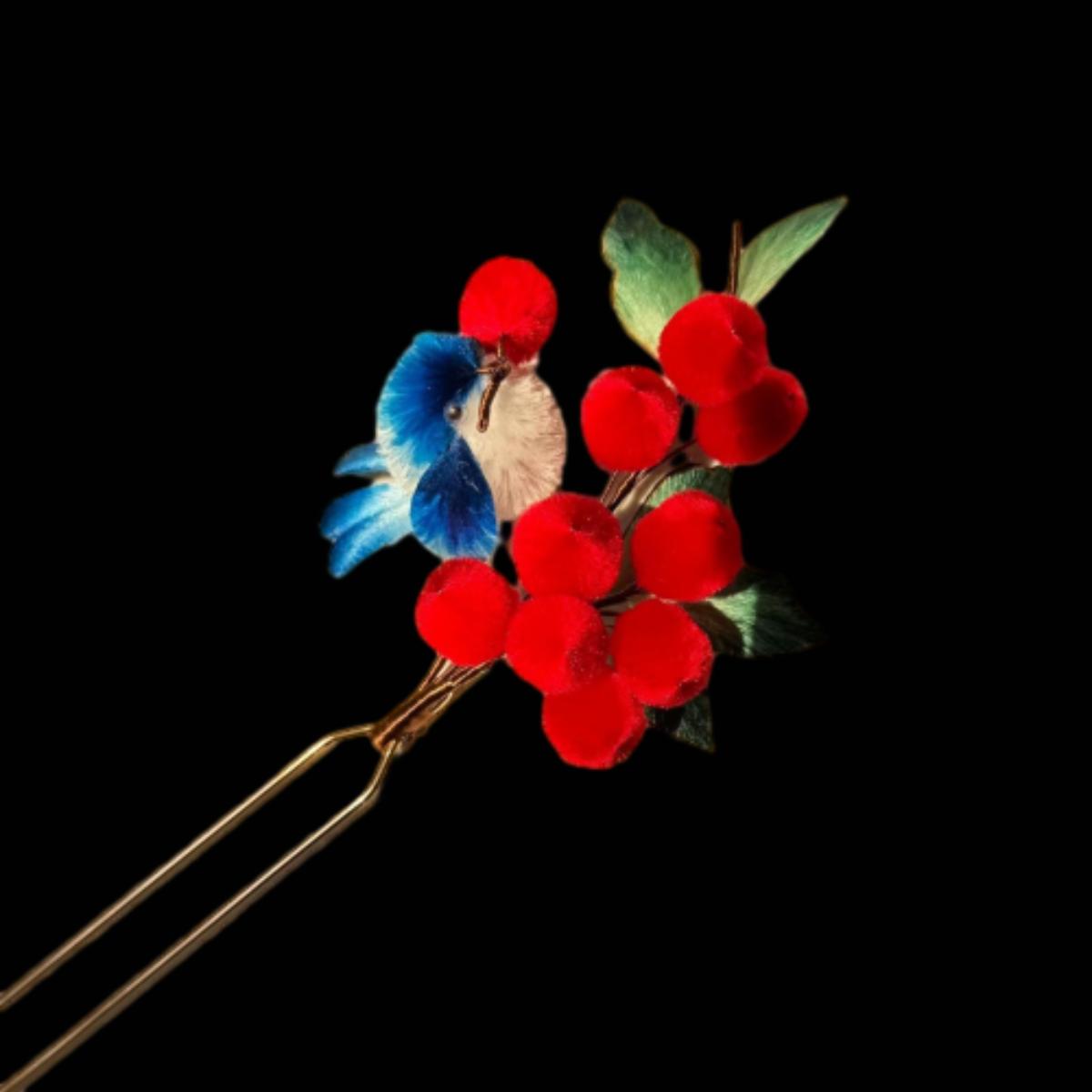 Bird And Red Fruit Bespoke Hairpin - Silk Hairpin(Ronghua)