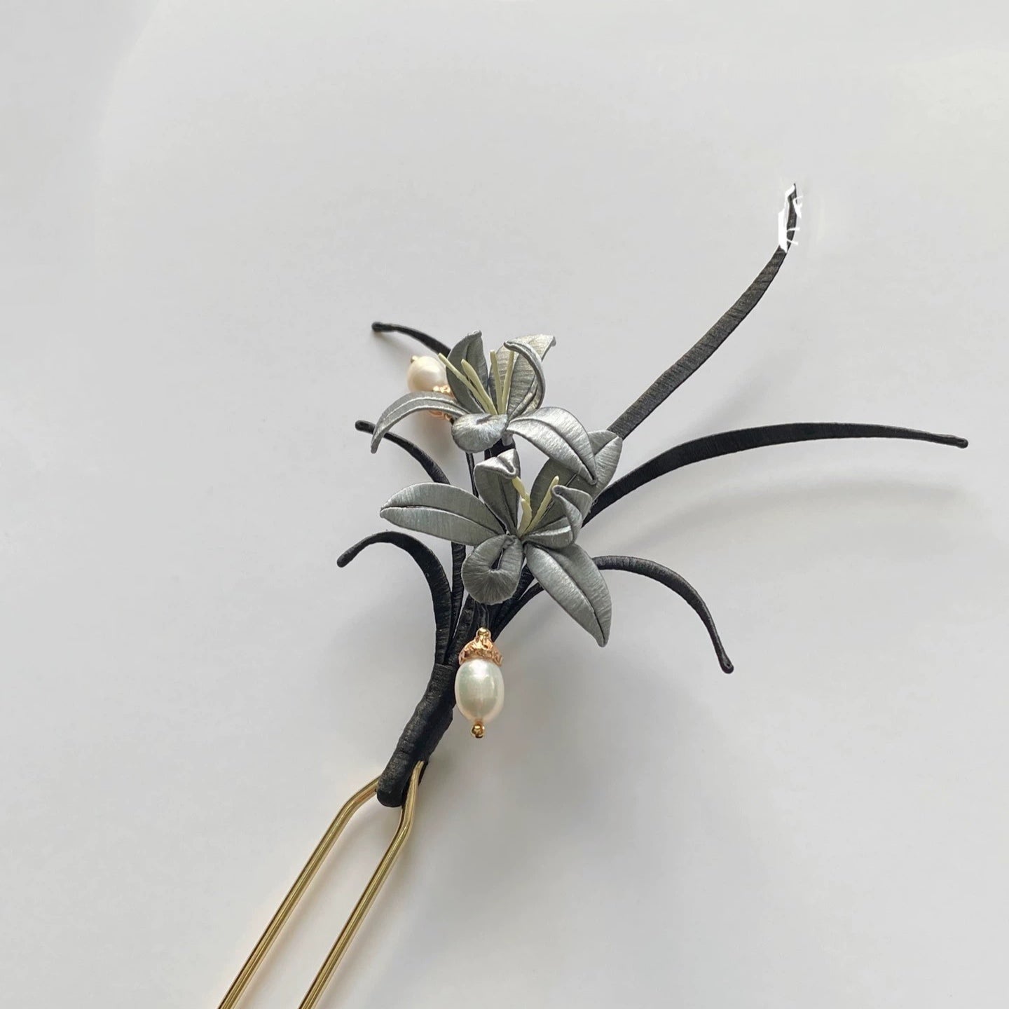 Black Orchid Bespoke Hairpin - Silk Hairpin(Chanhua)
