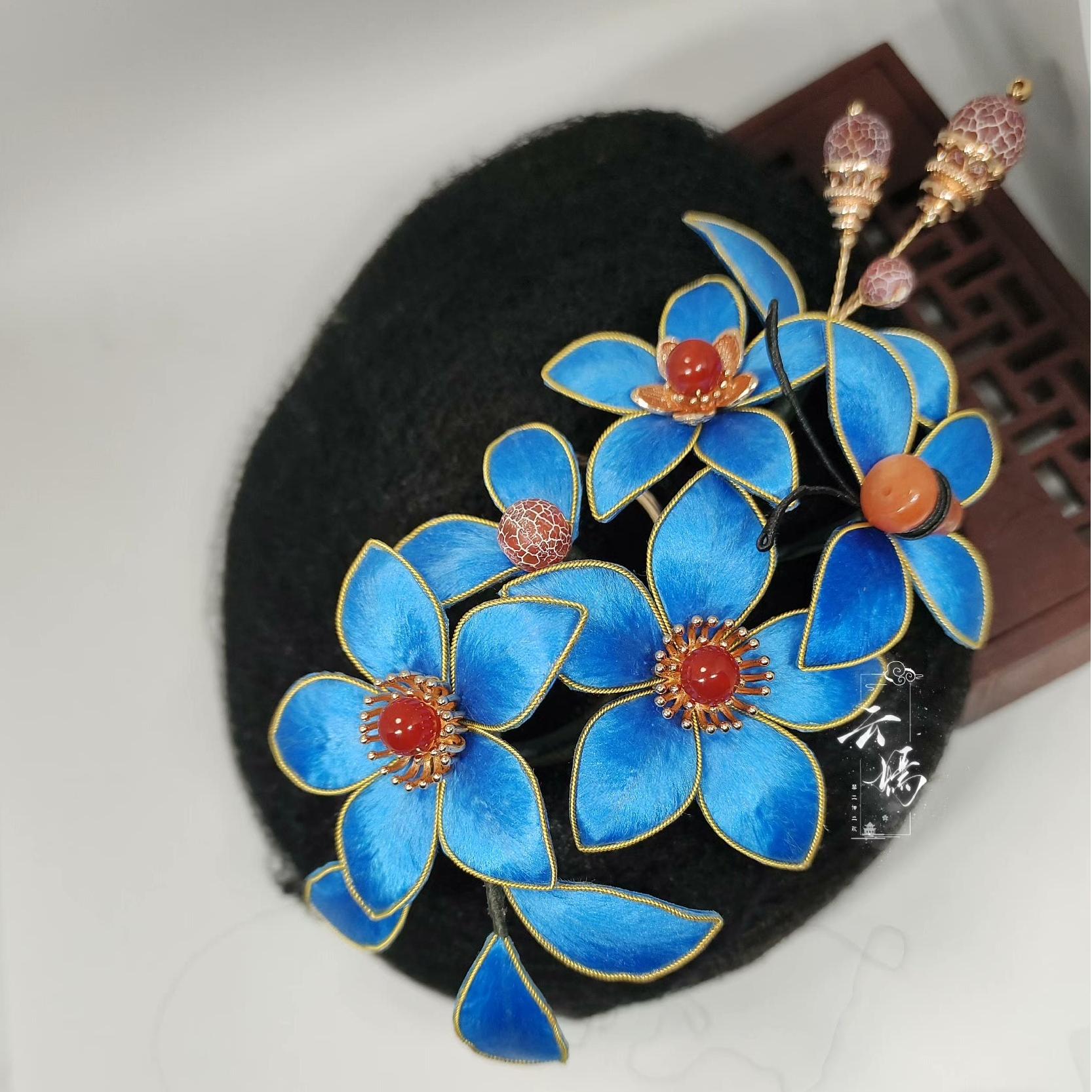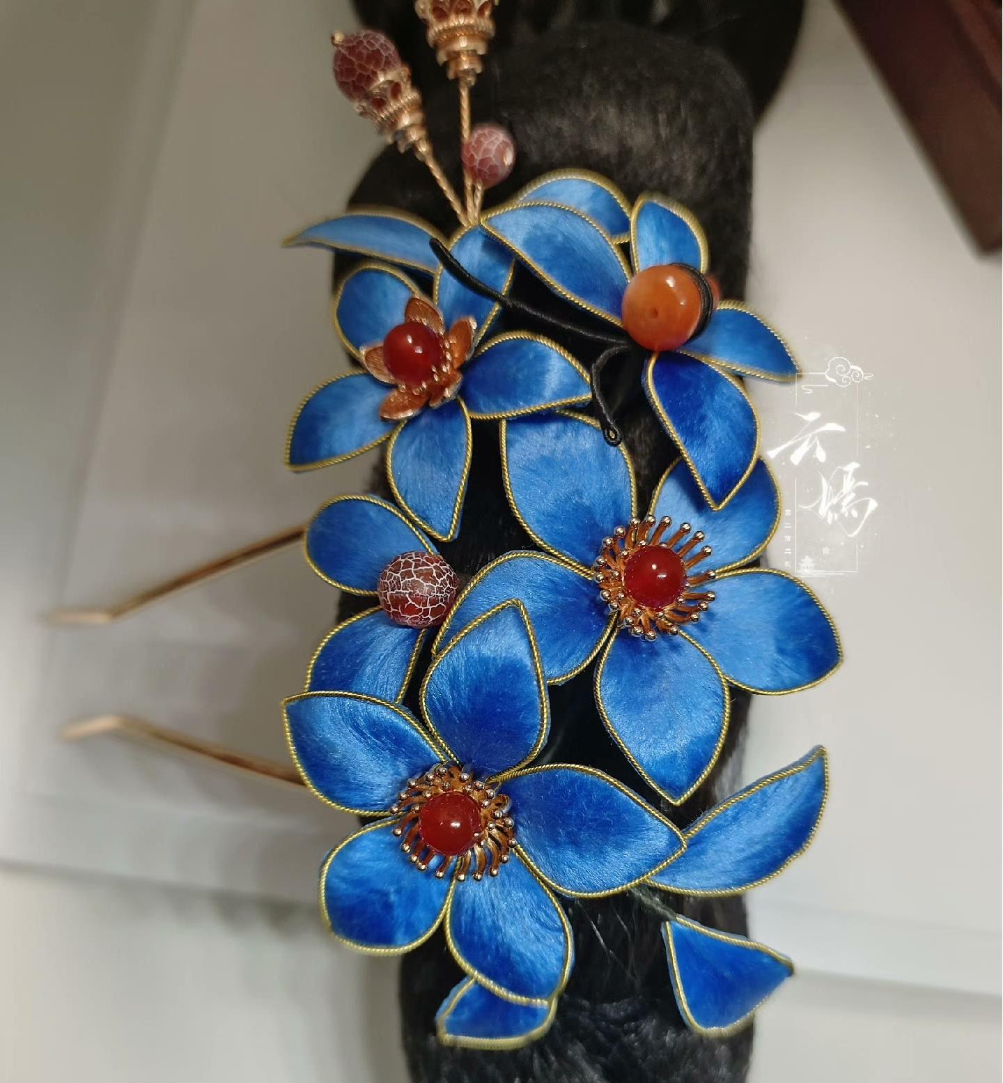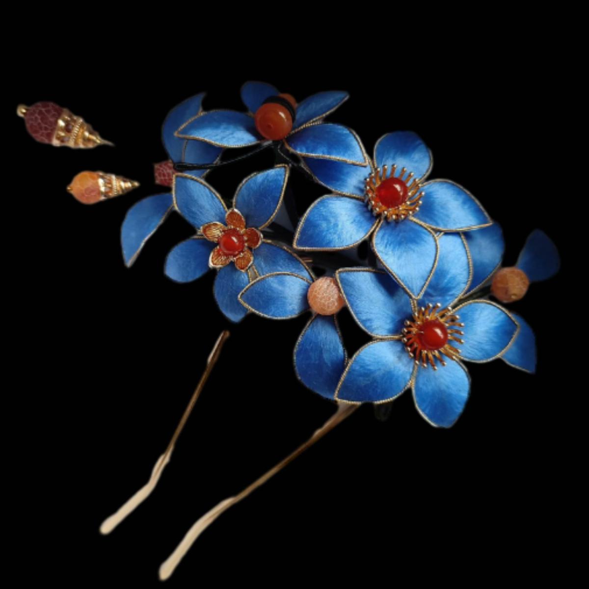 Blue Flower Bespoke Hairpin - Silk Hairpin(Ronghua)