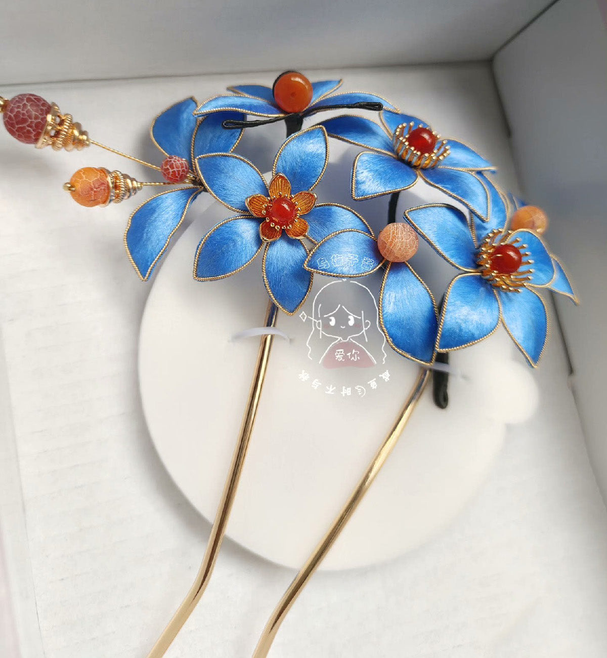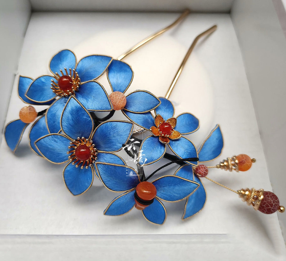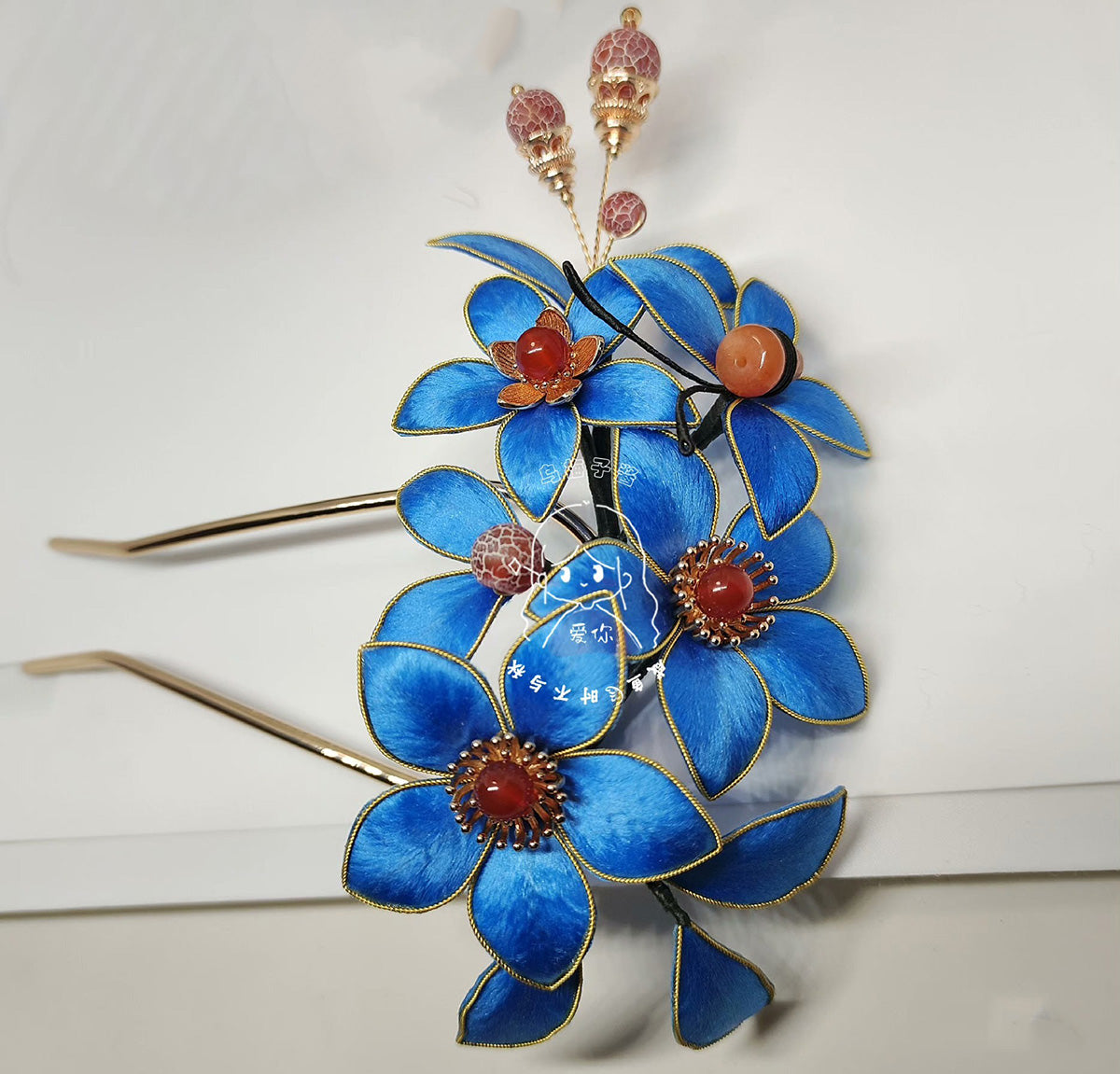 Blue Flower Bespoke Hairpin - Silk Hairpin(Ronghua)