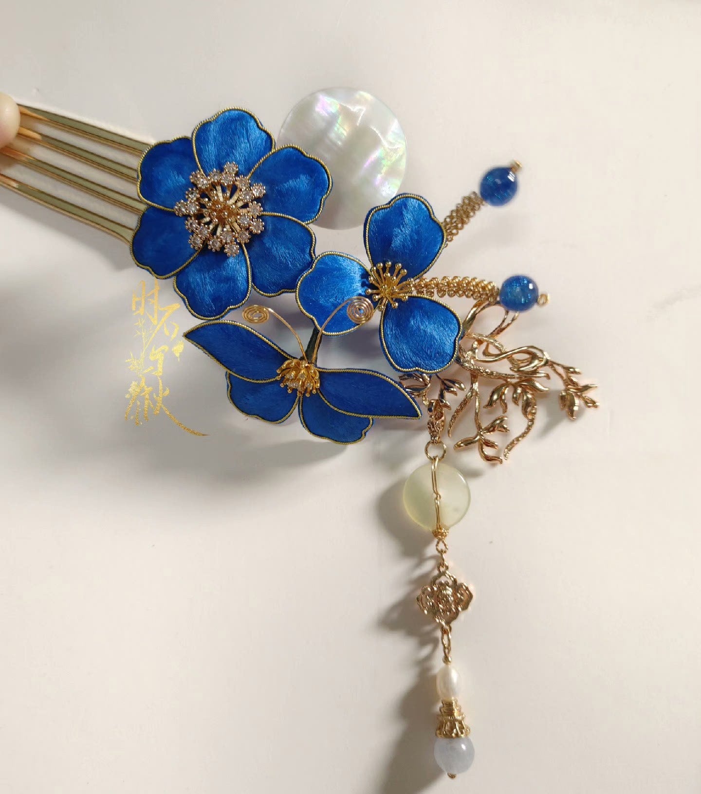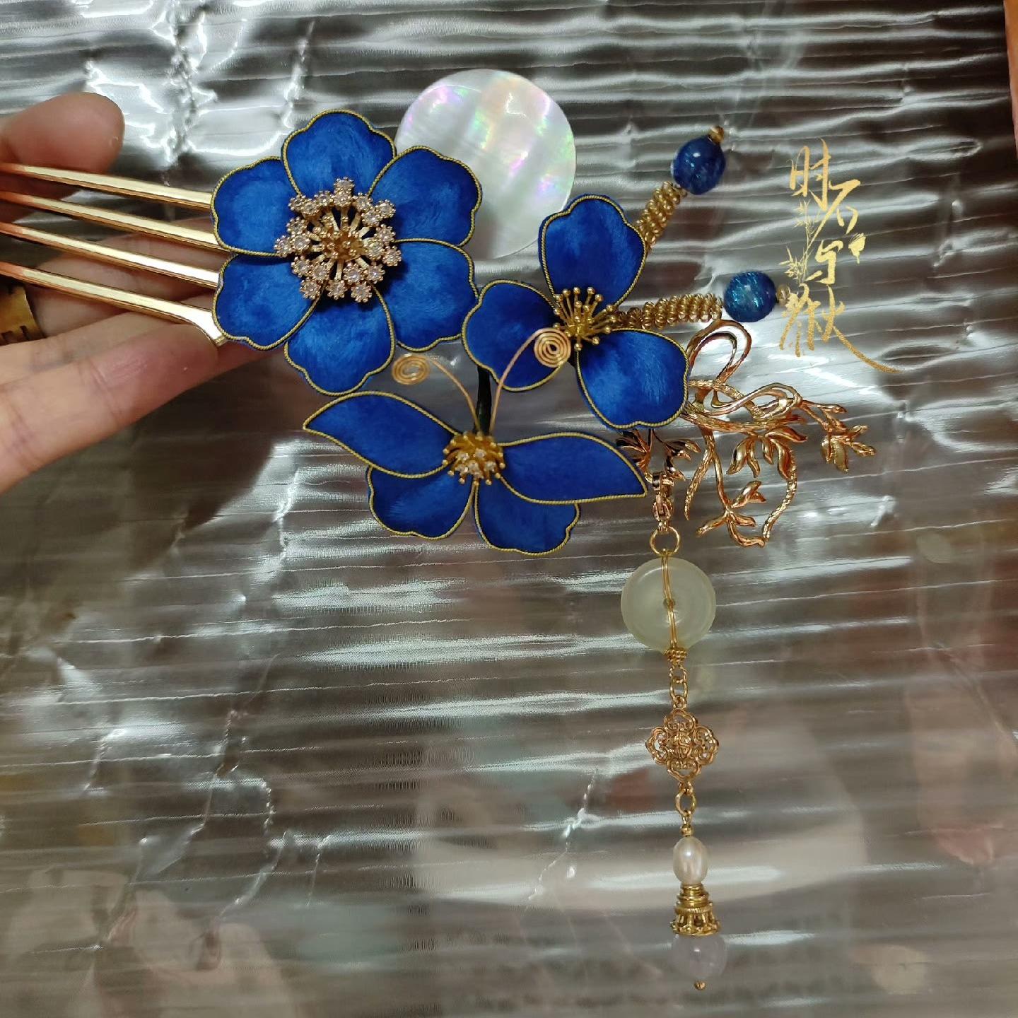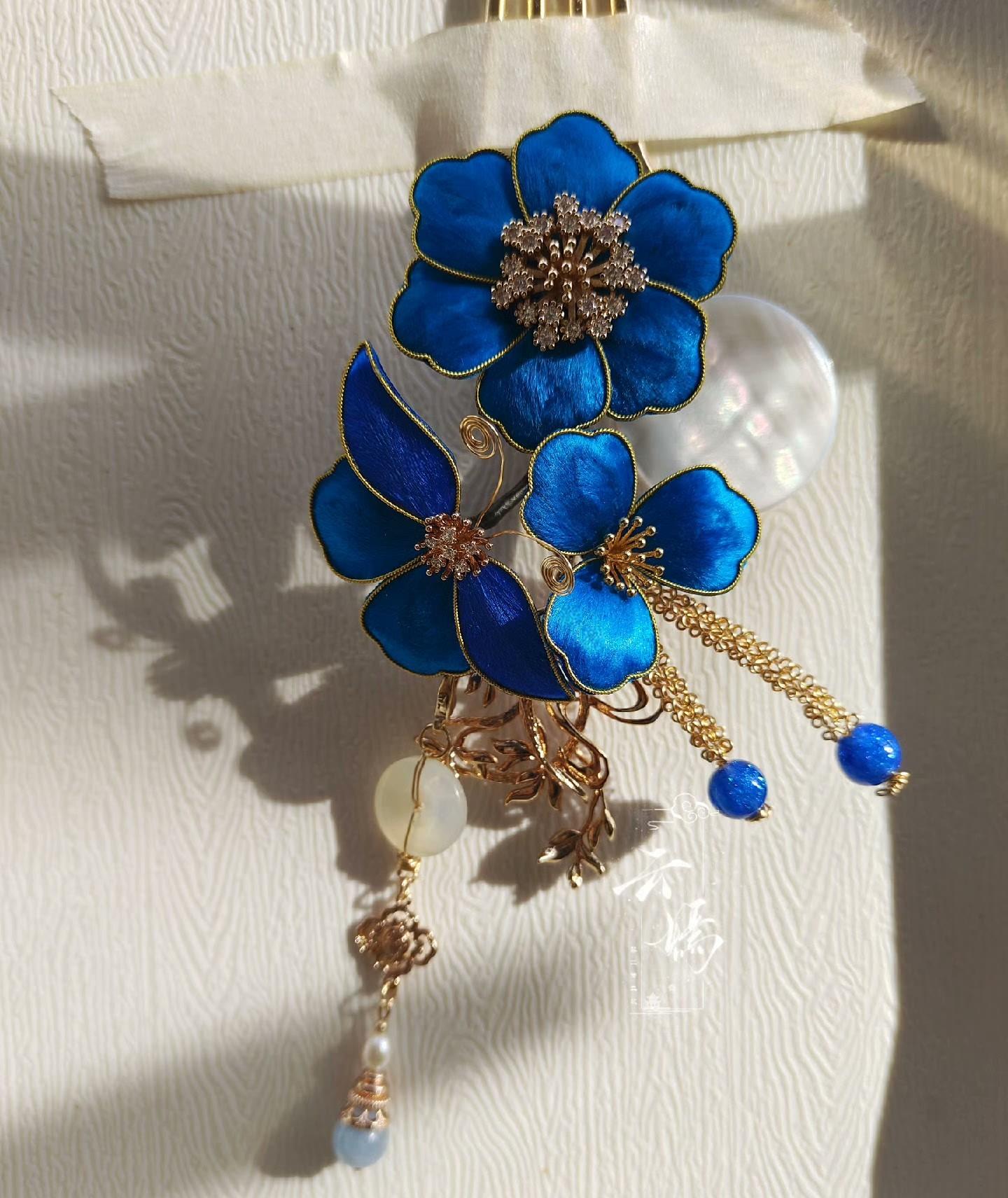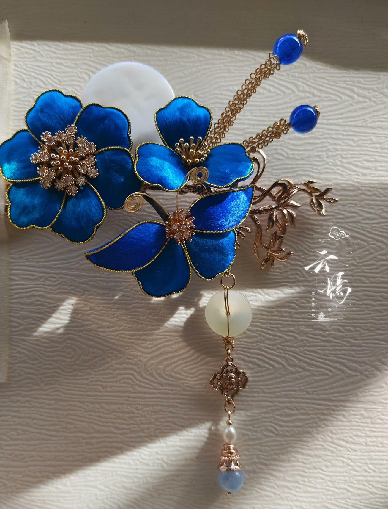 Blue Flower Bespoke Hairpin - Silk Hairpin(Ronghua)