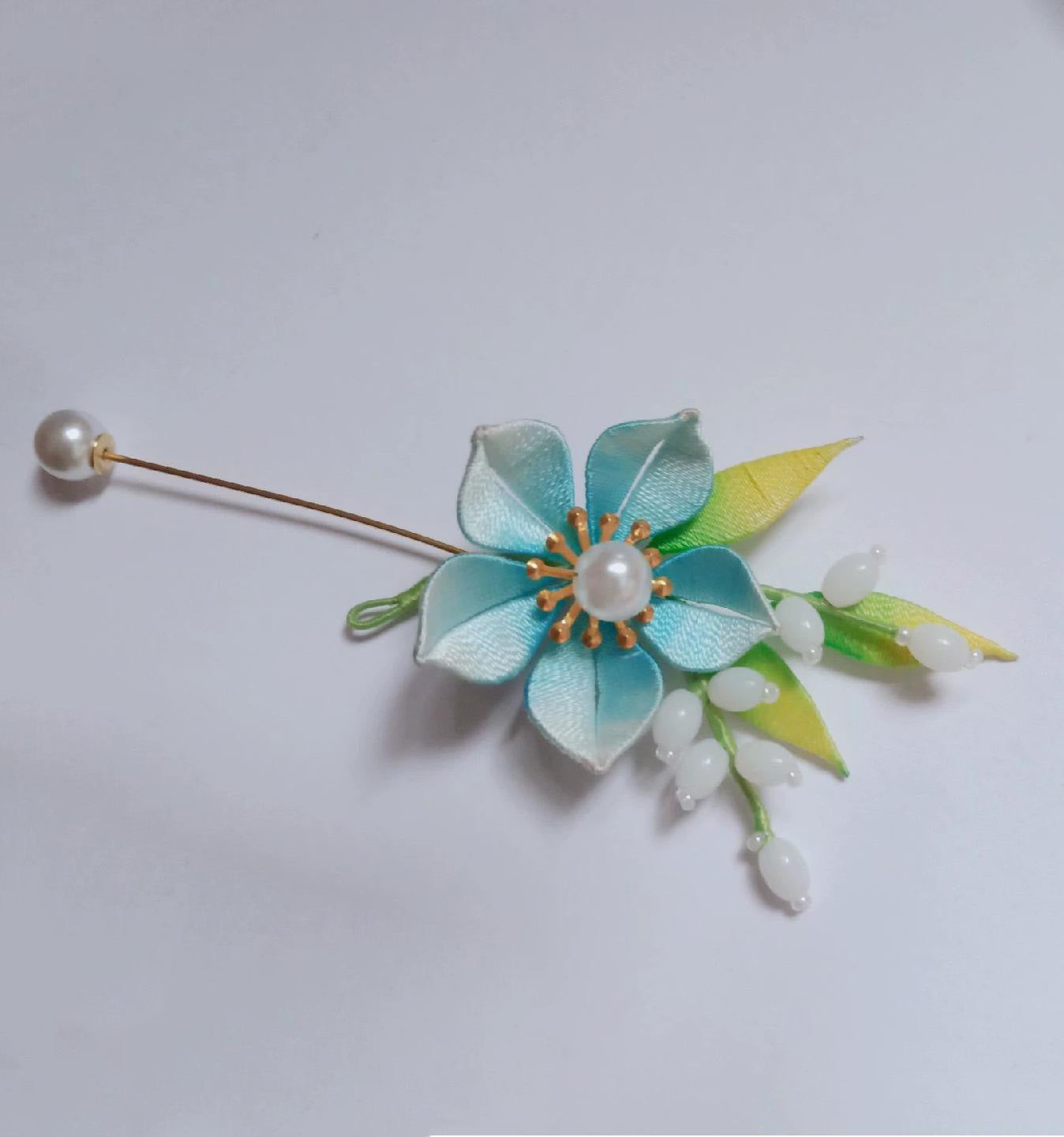 Blue Flower Handmade Brooch - Silk Brooch(Chanhua)