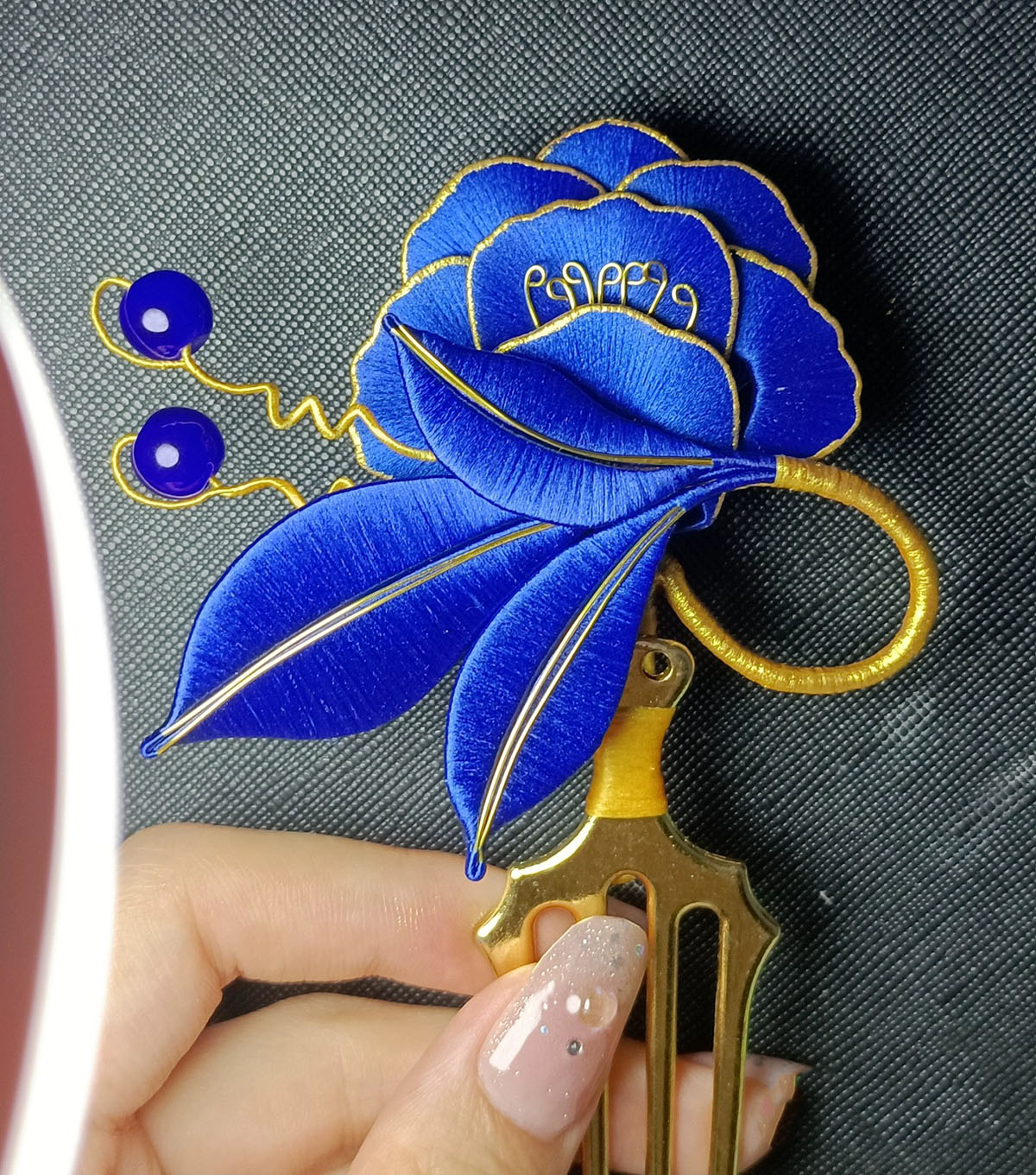 Blue Flower Handmade Hairpin - Silk Hairpin(Chanhua)