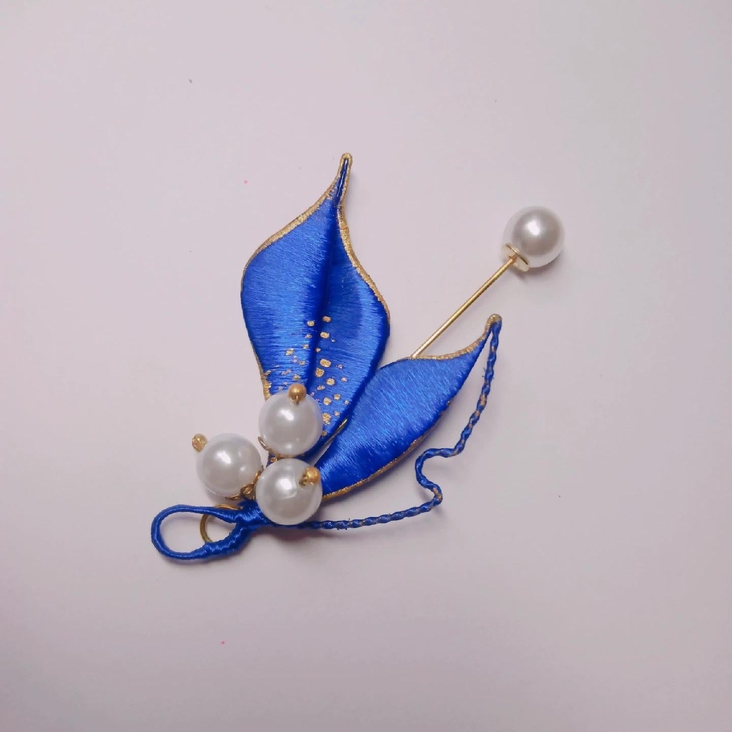 Blue Handmade Brooch - Silk Brooch(Chanhua)