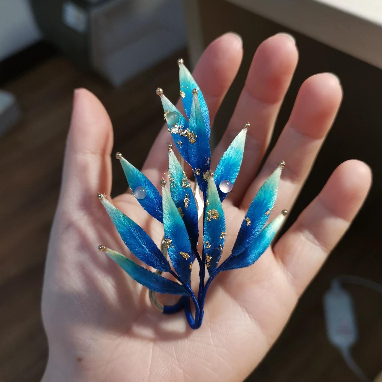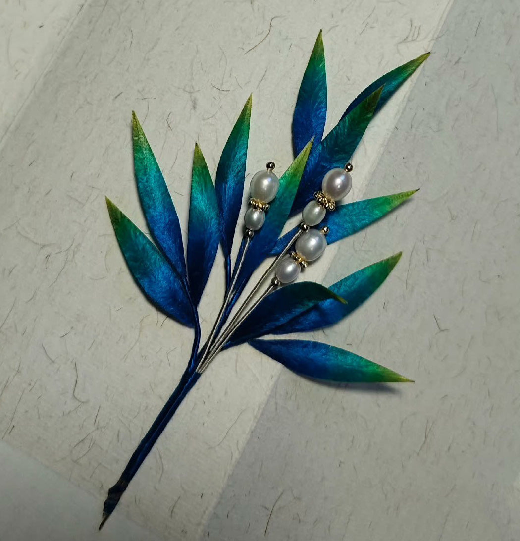 Blue Leaves Bespoke Brooch - Silk Brooch(Ronghua)