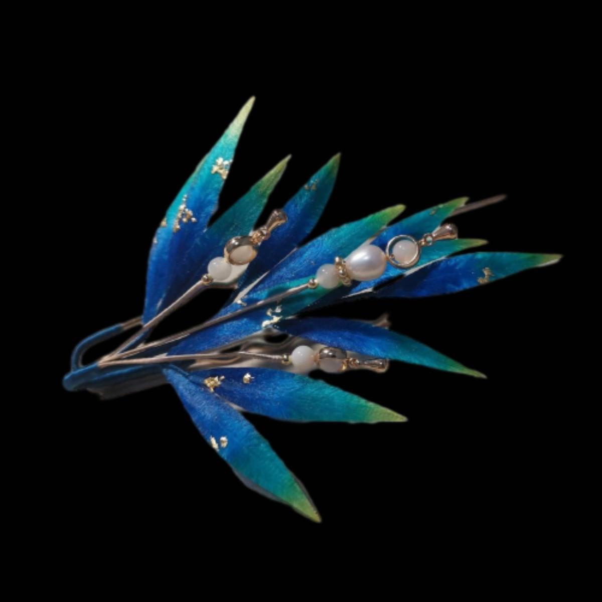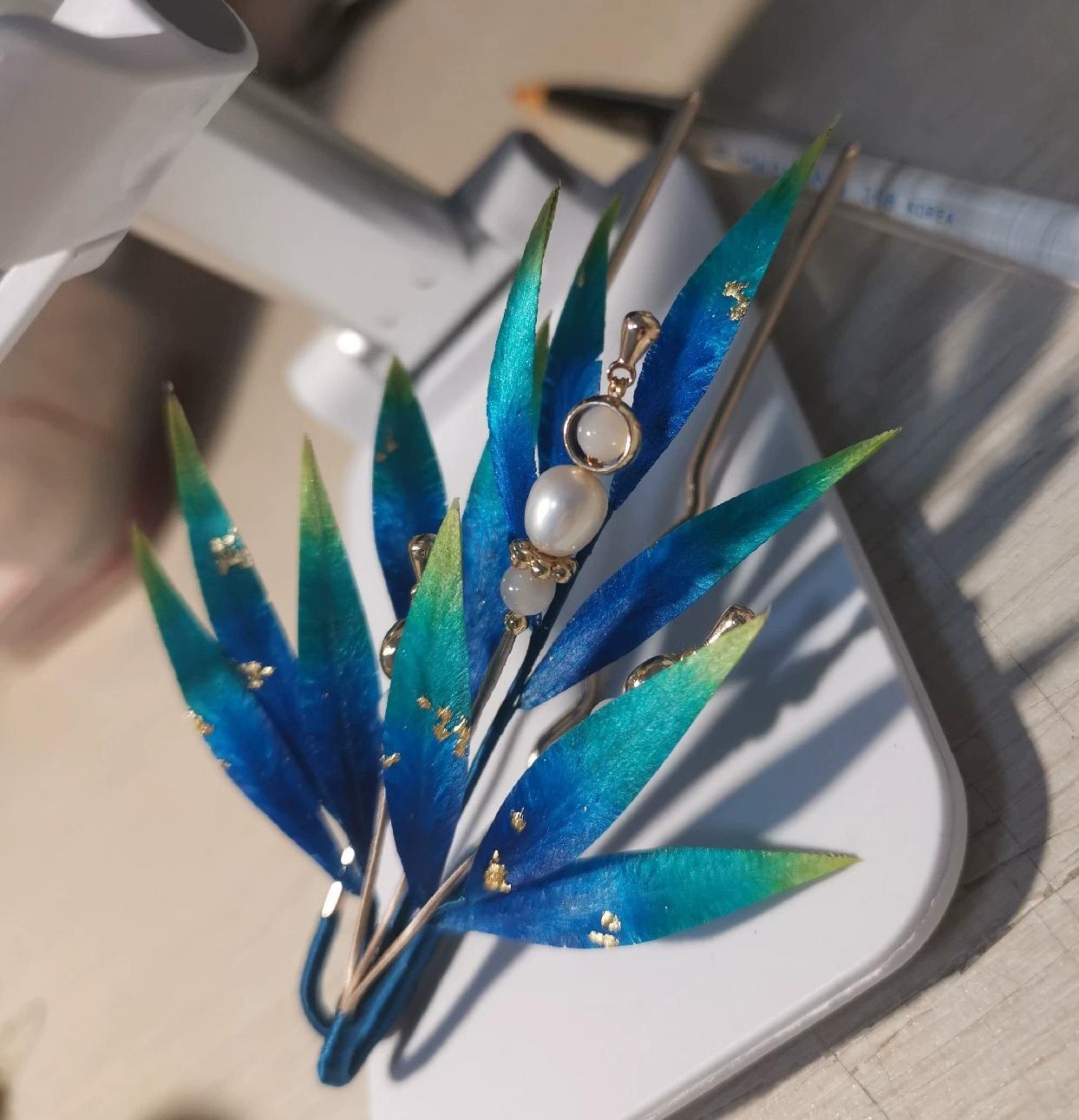 Blue Leaves Bespoke Brooch - Silk Brooch(Ronghua)