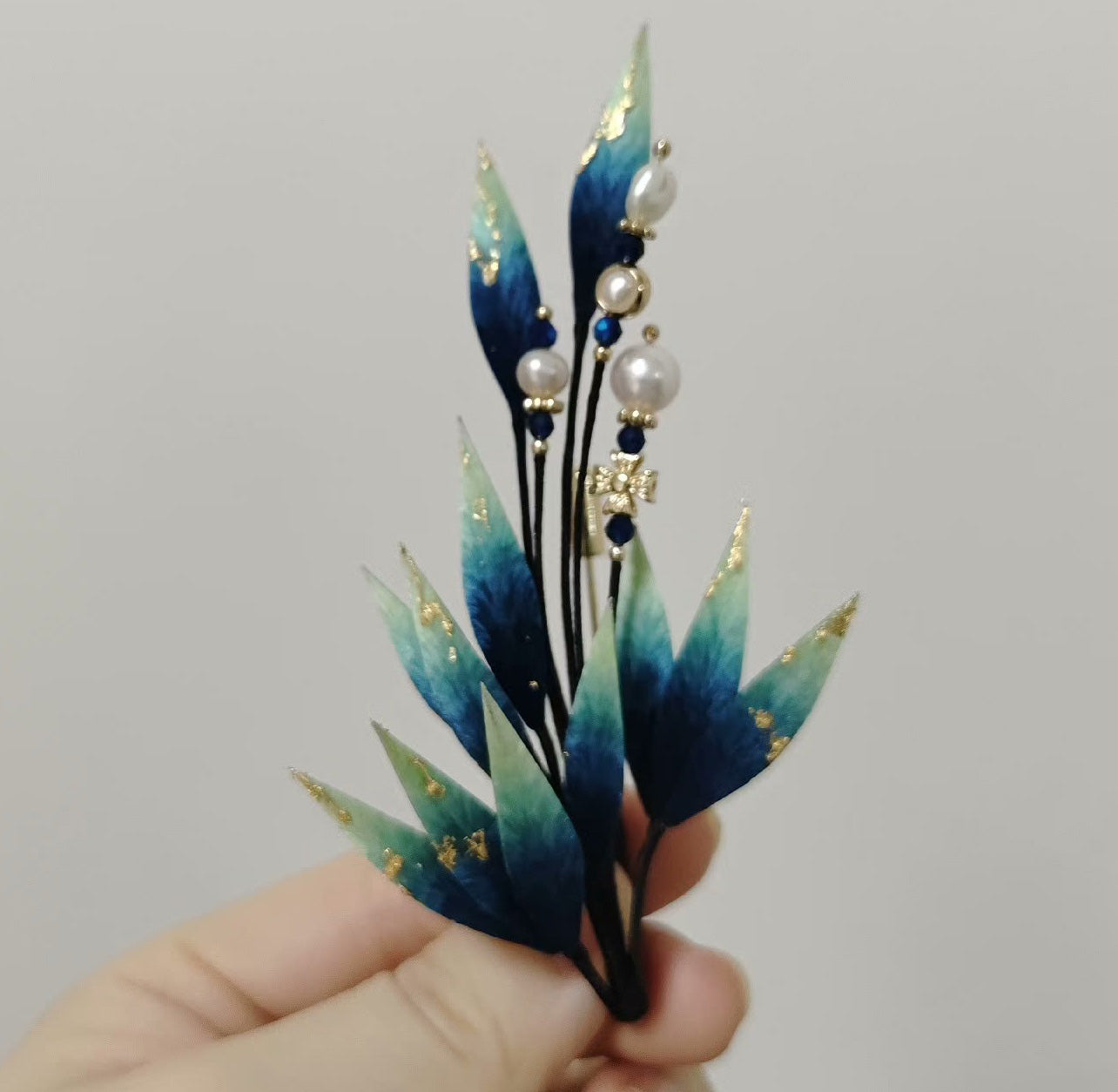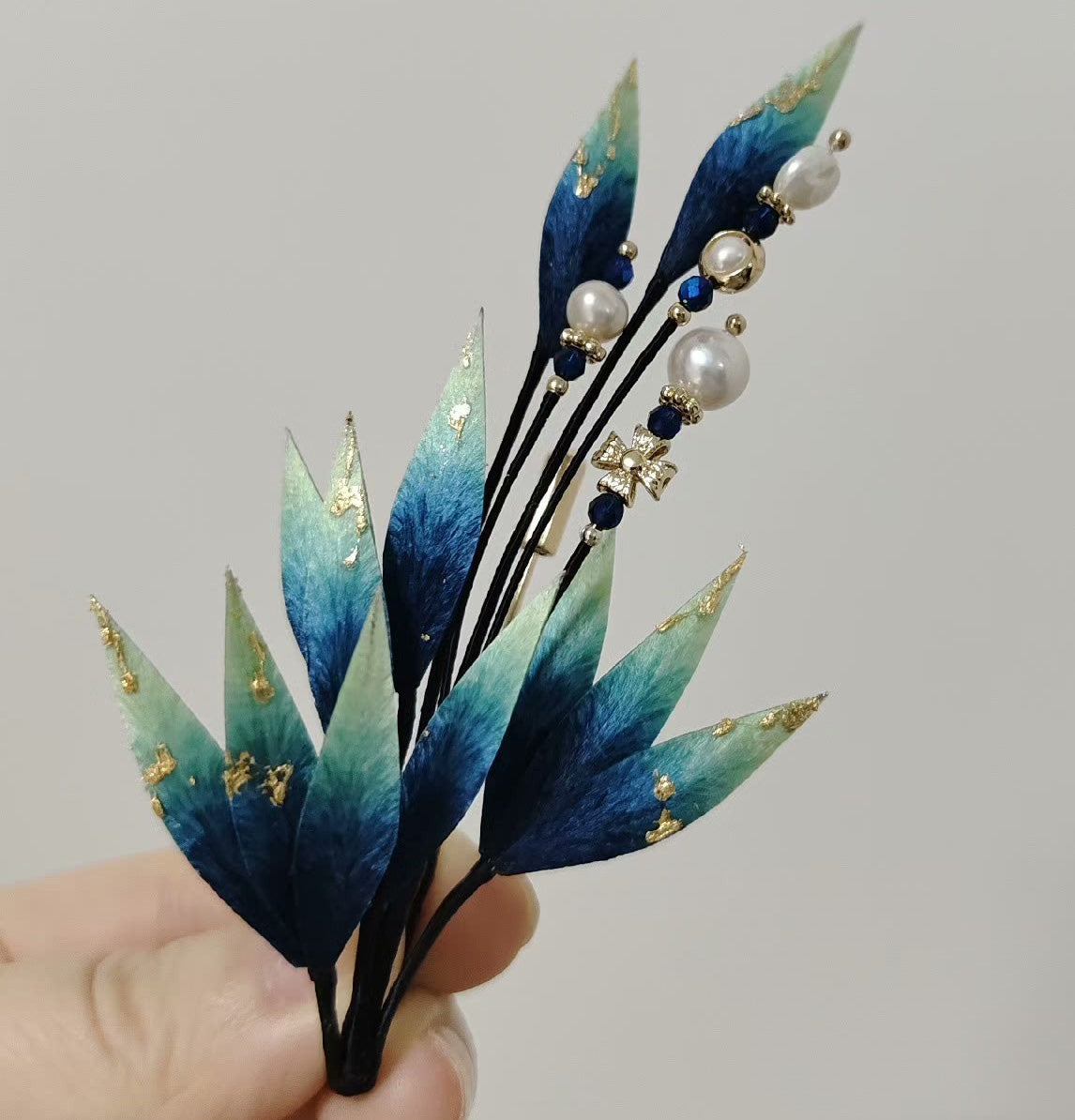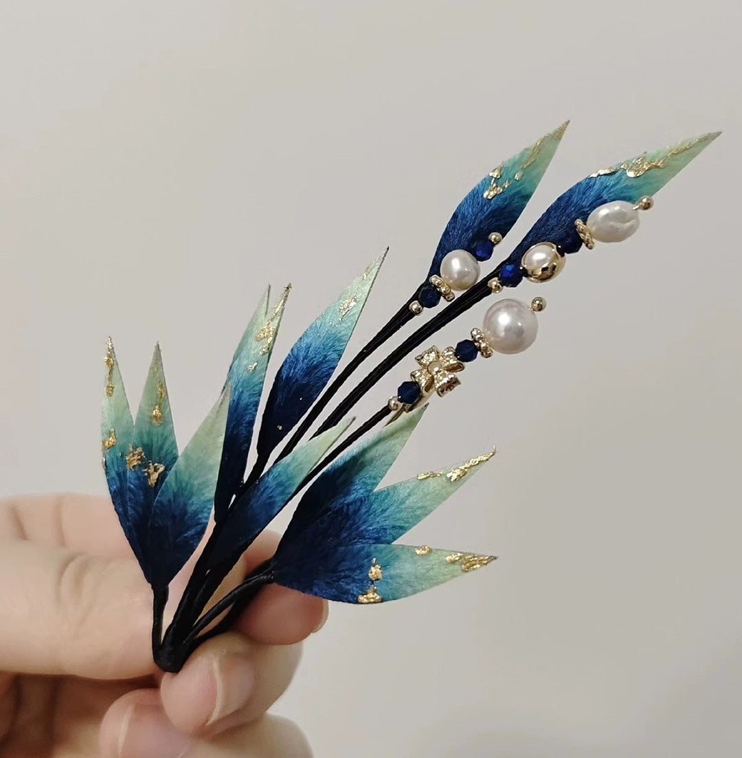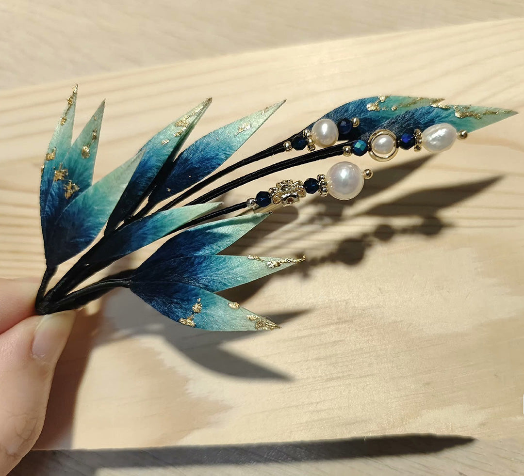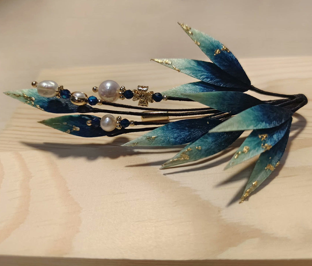 Blue Leaves Bespoke Brooch - Silk Brooch(Ronghua)