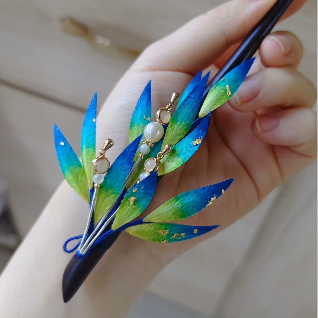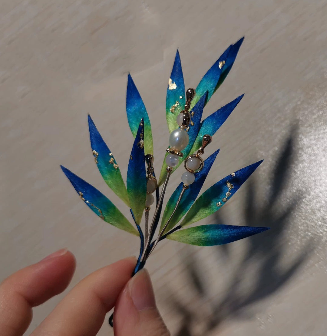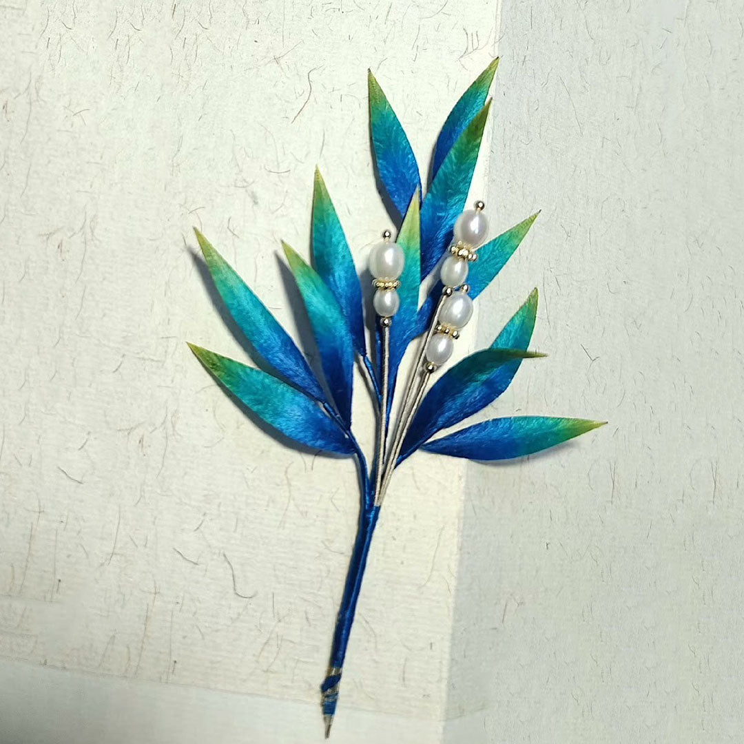 Blue Leaves Bespoke Hairpin - Silk Hairpin(Ronghua)