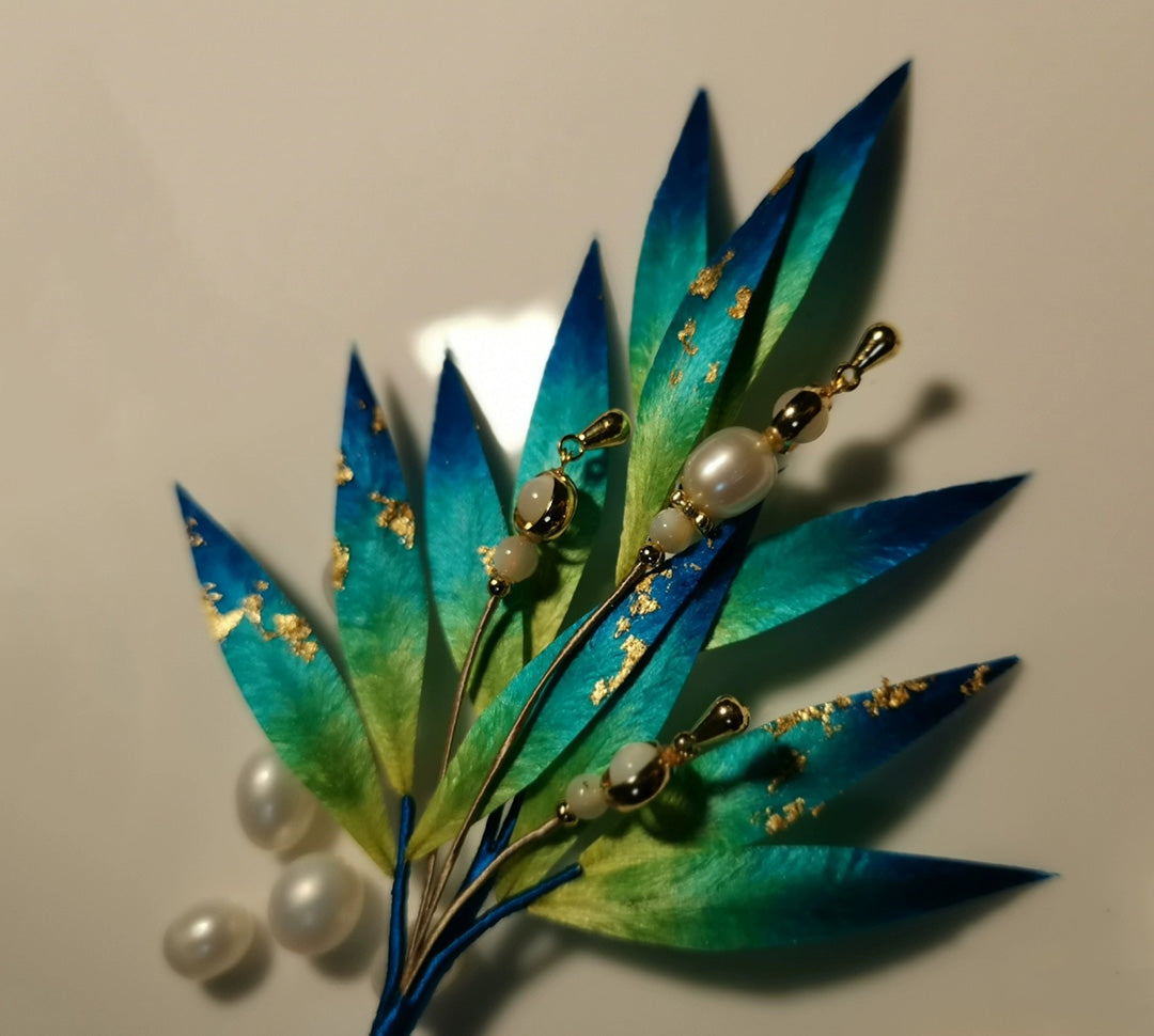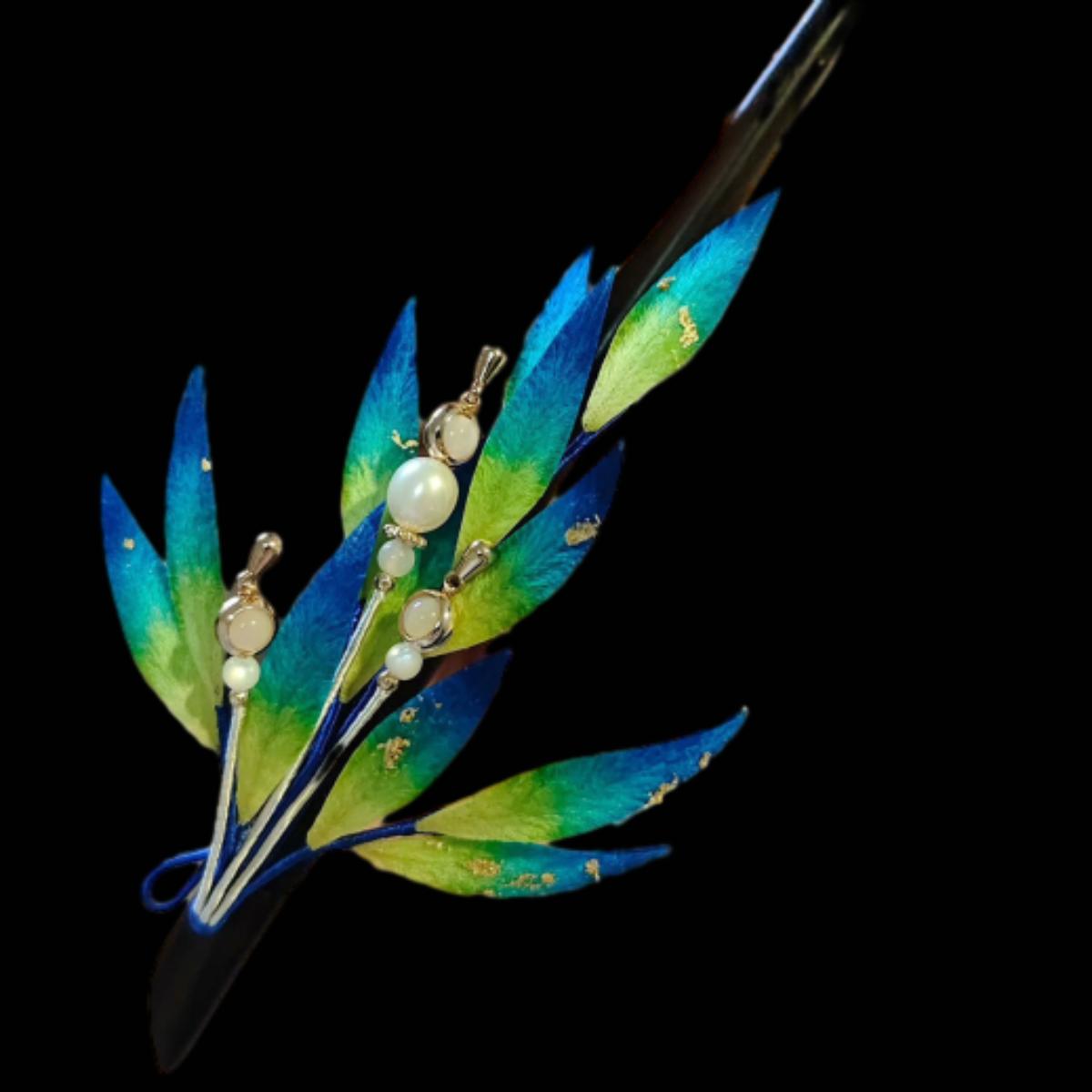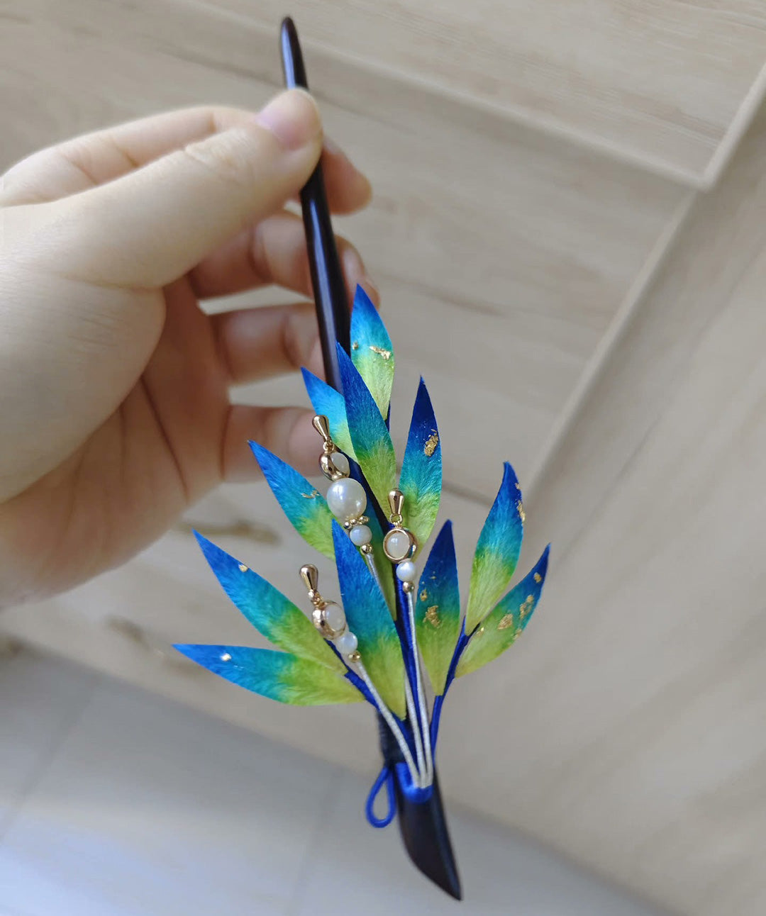 Blue Leaves Bespoke Hairpin - Silk Hairpin(Ronghua)