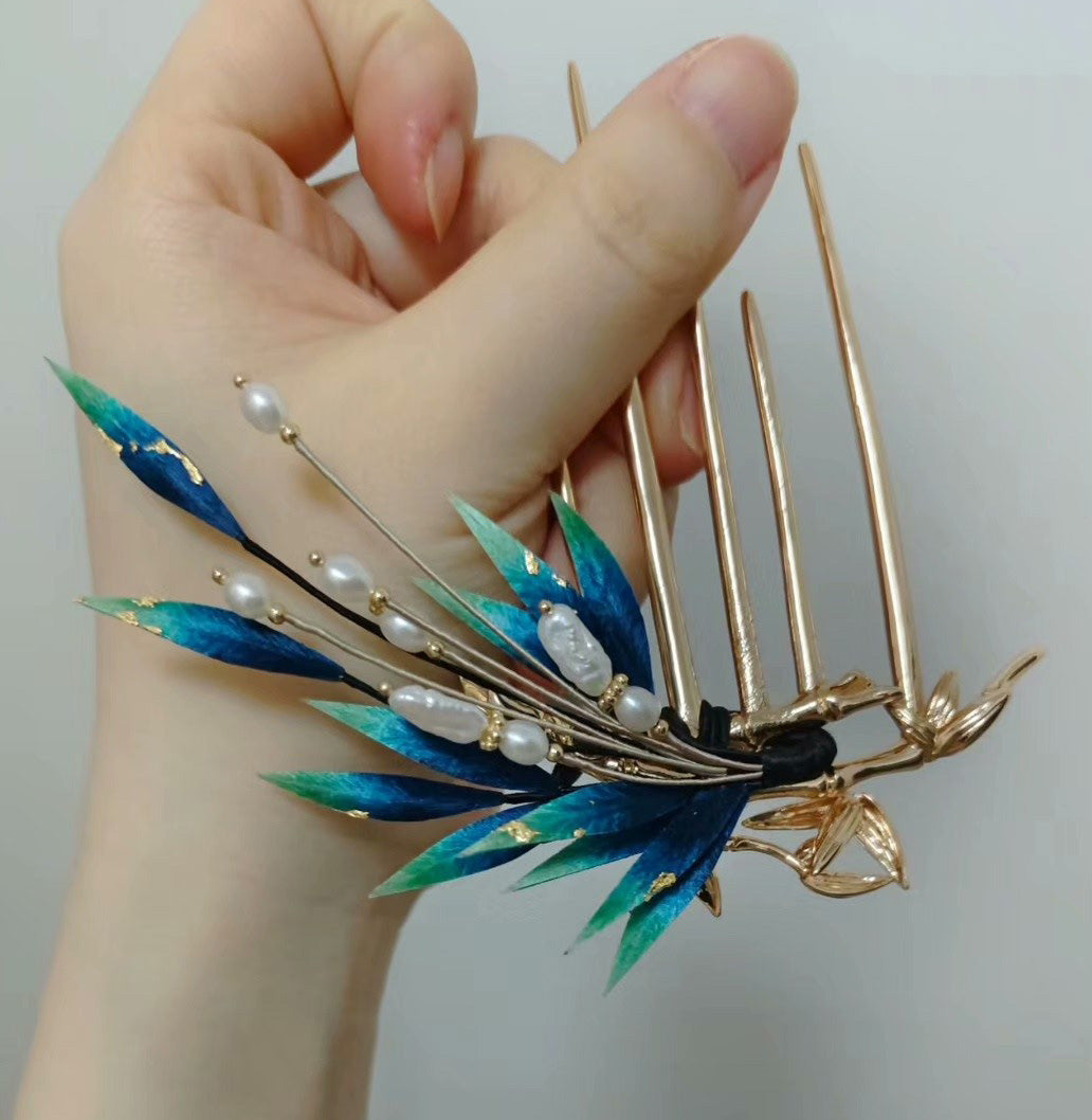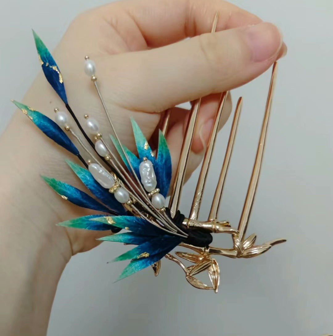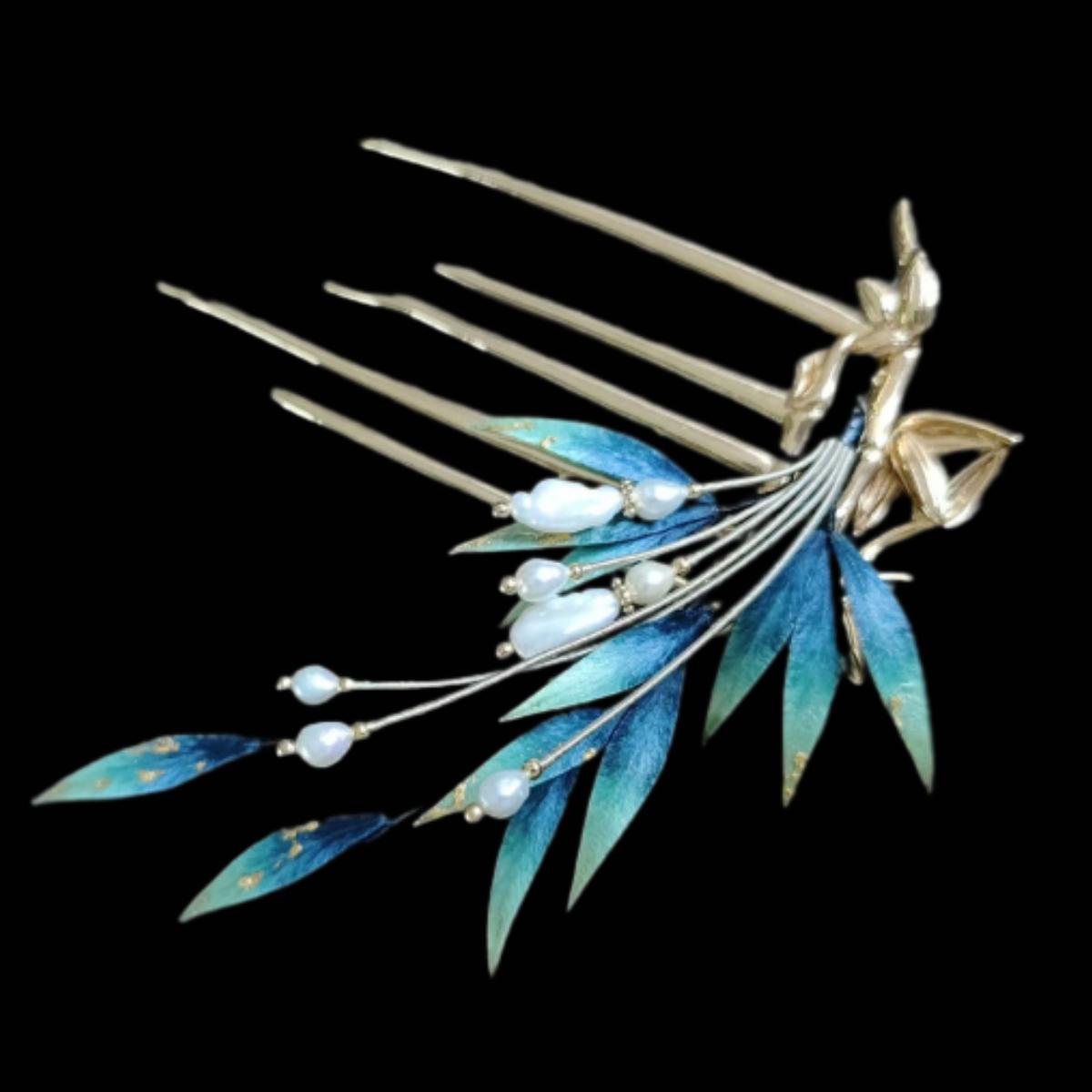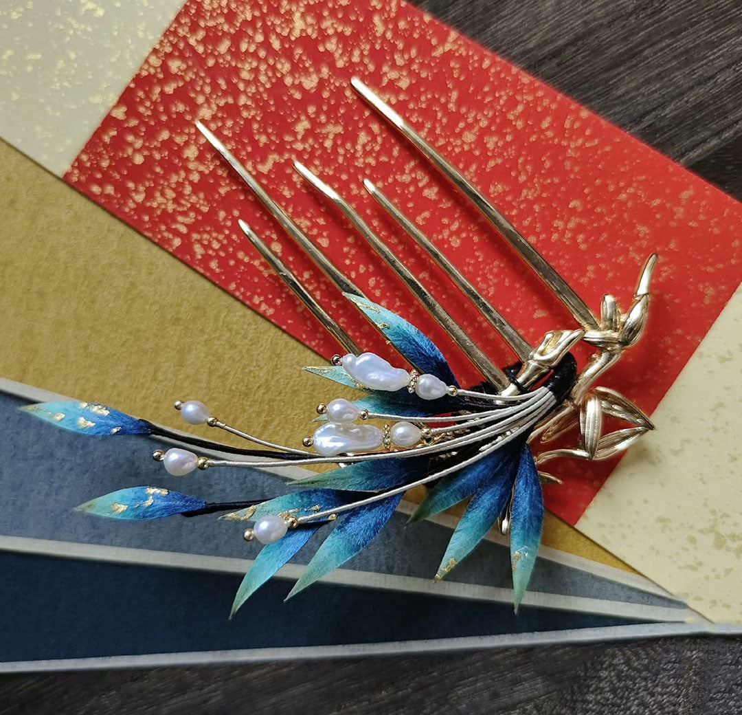 Blue Leaves Bespoke Hairpin - Silk Hairpin(Ronghua)