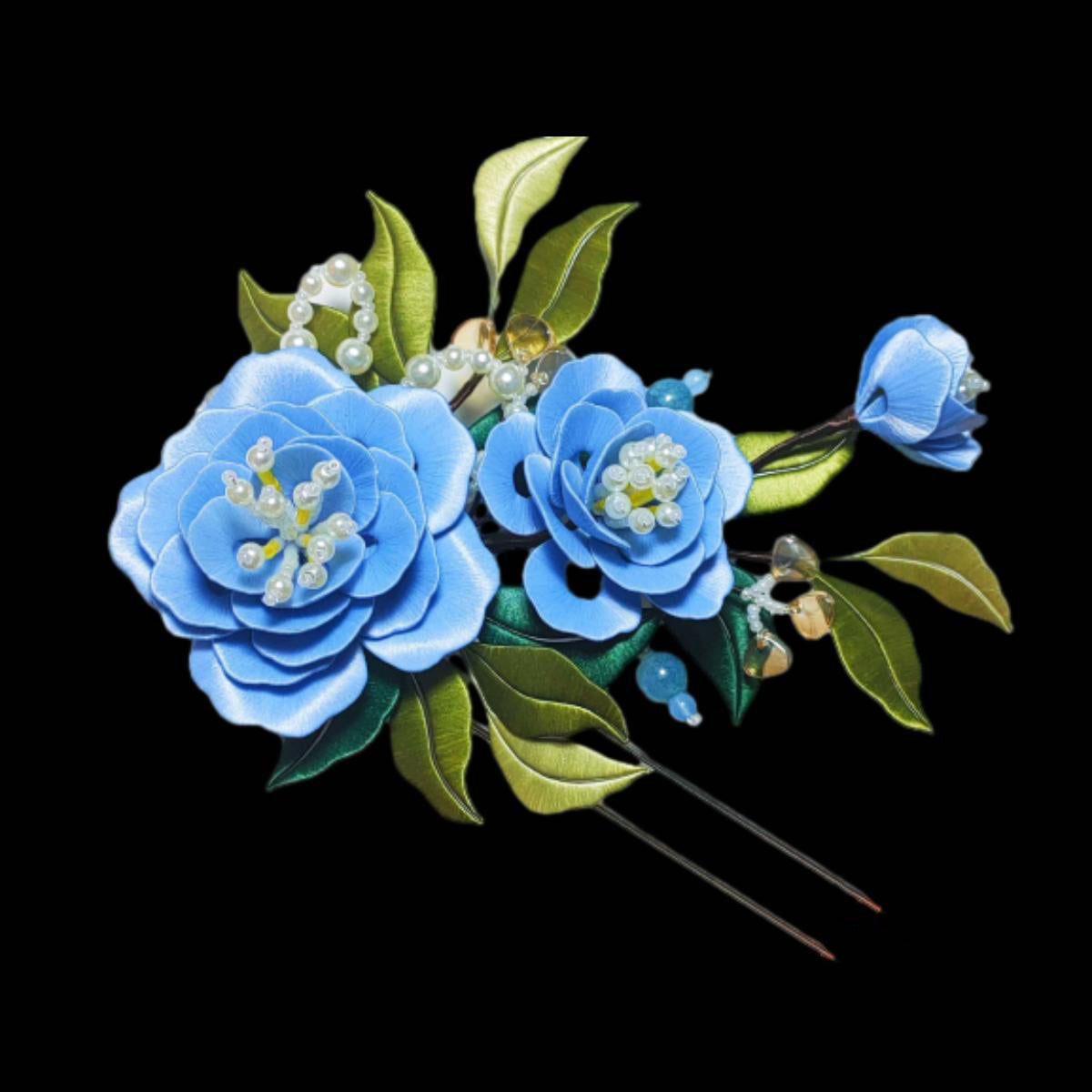 Blue Peony Bespoke Hairpin - Silk Hairpin(Chanhua)