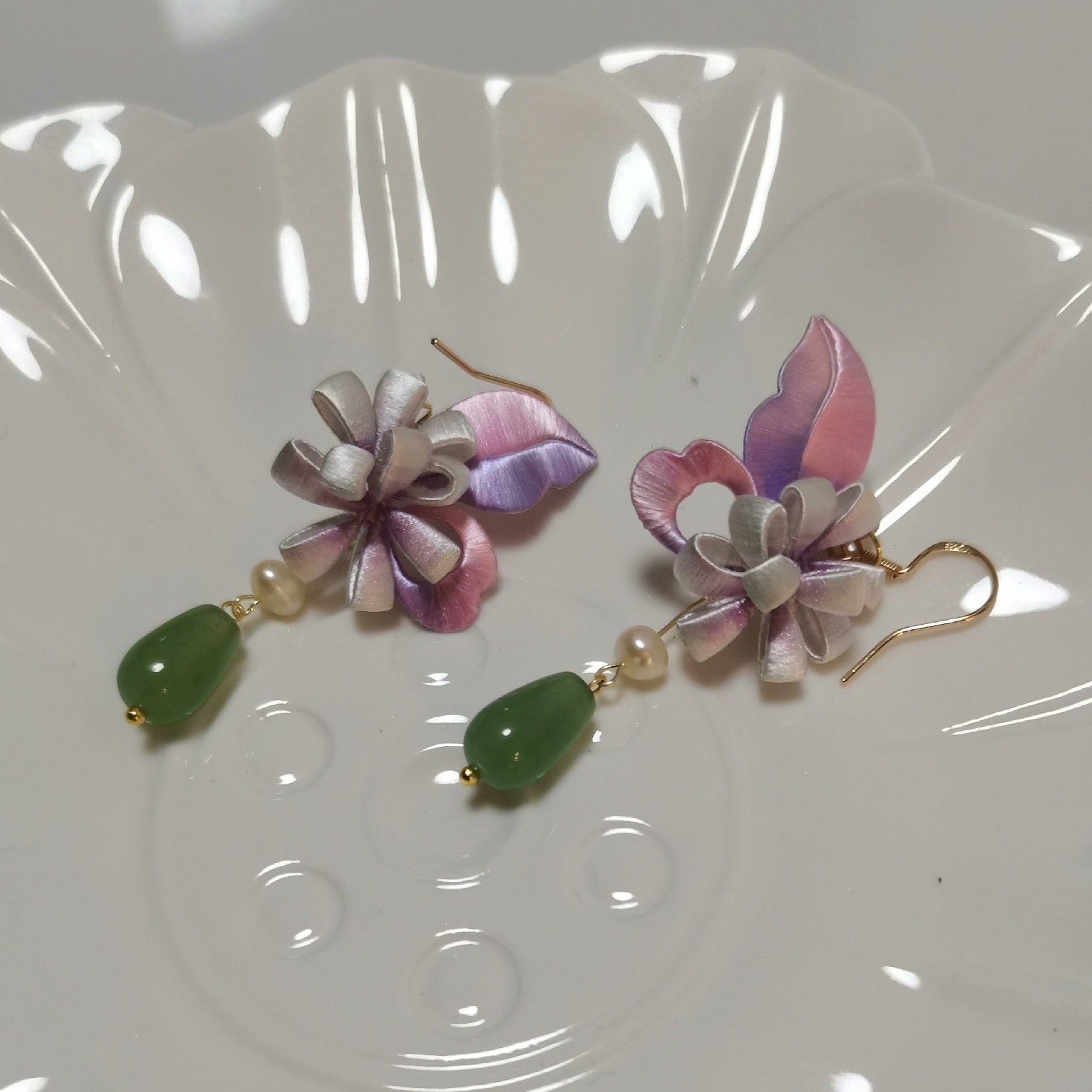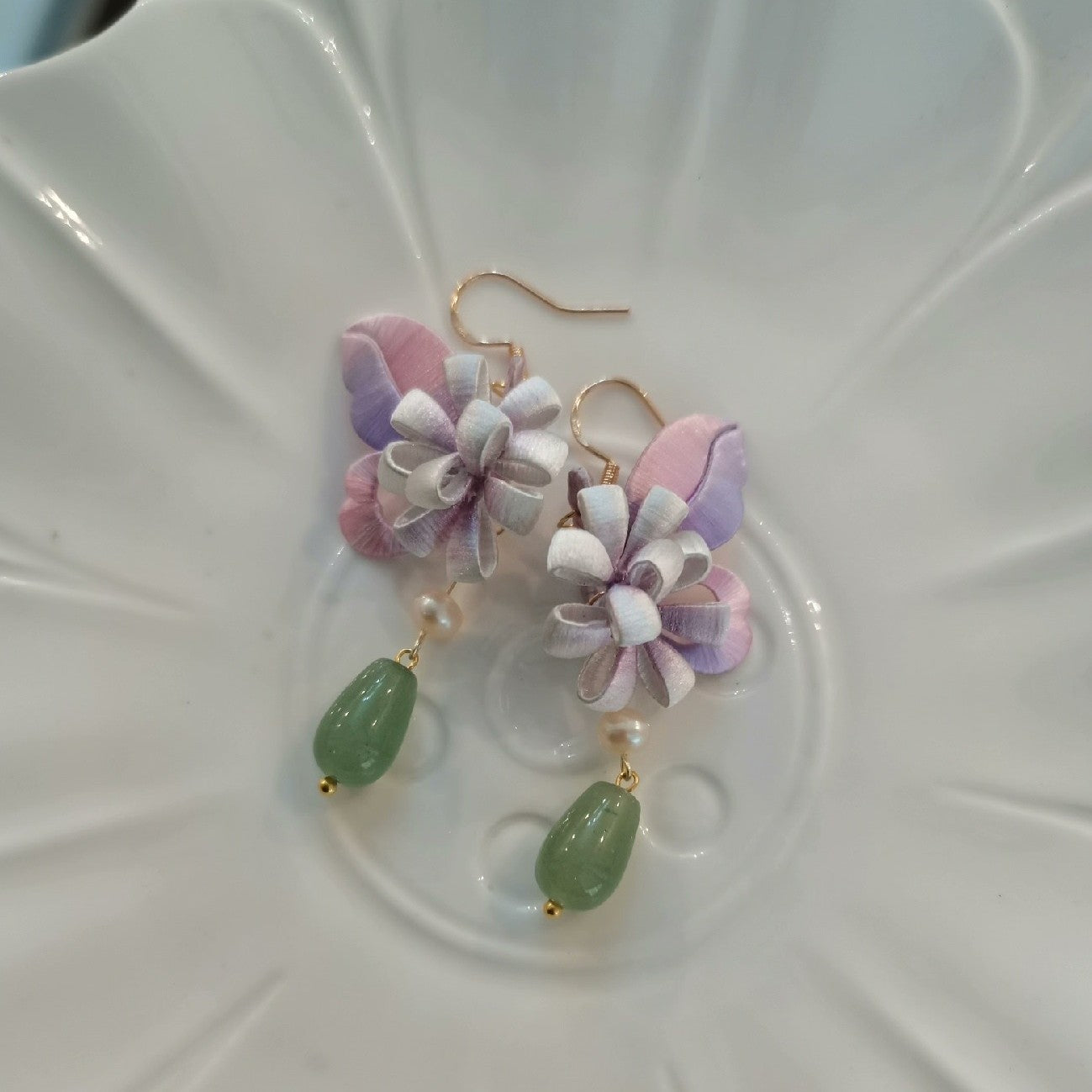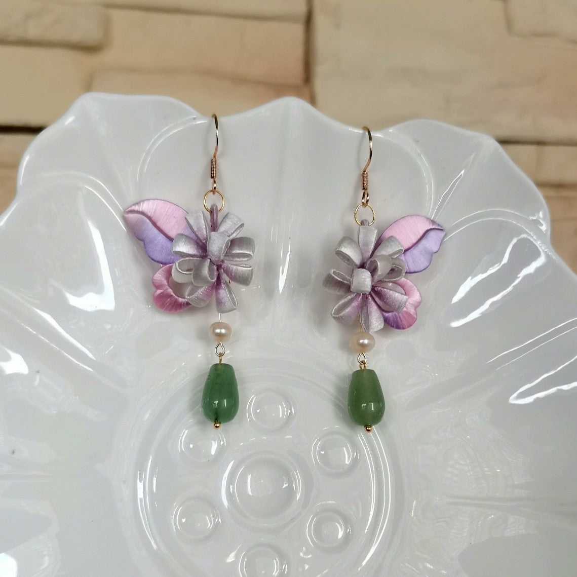 Butterfly And Flower Bespoke Earrings - Silk Earrings(Chanhua)