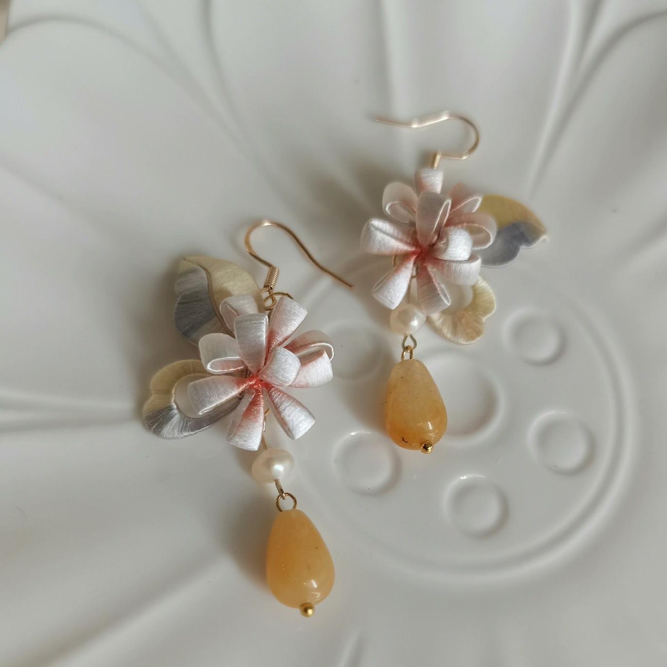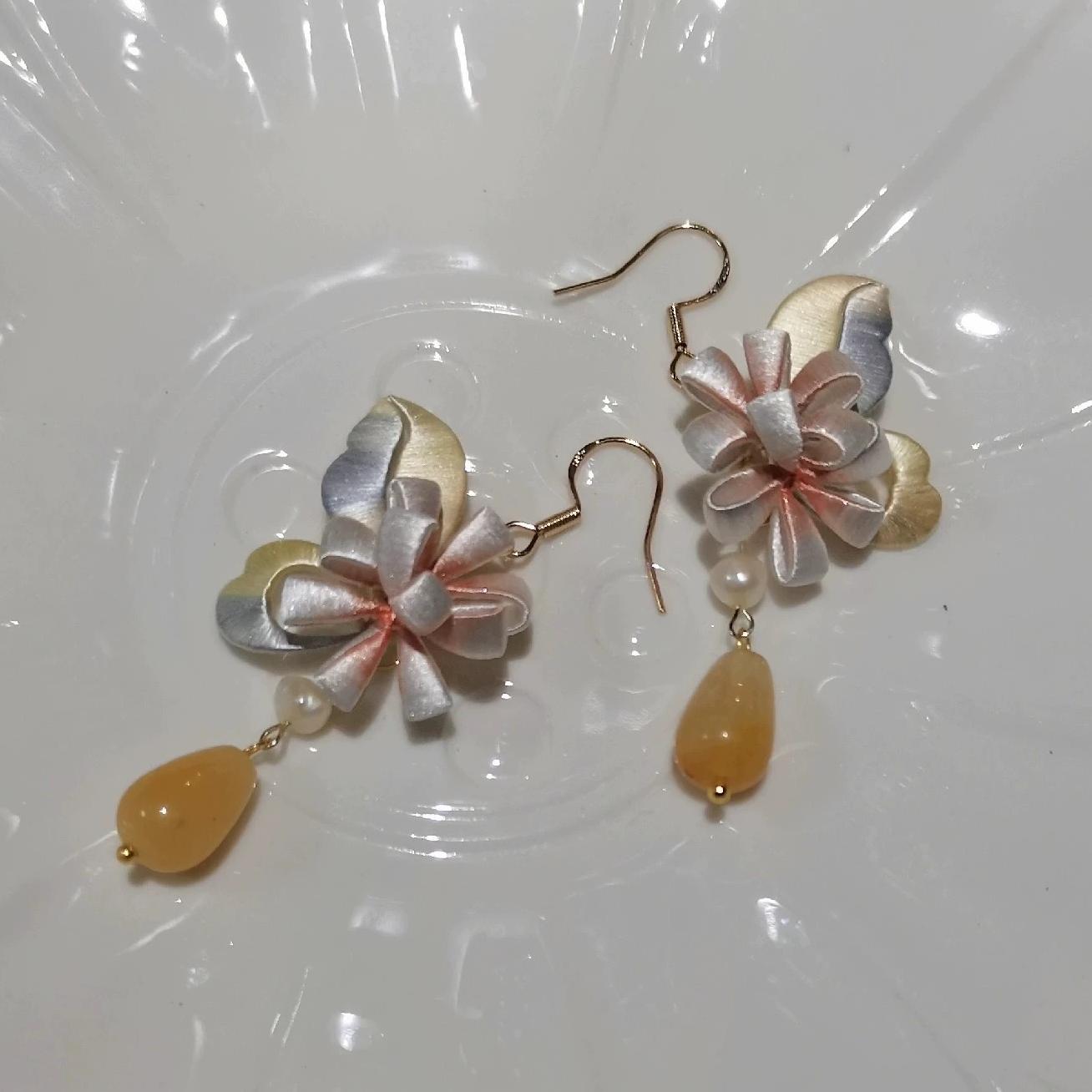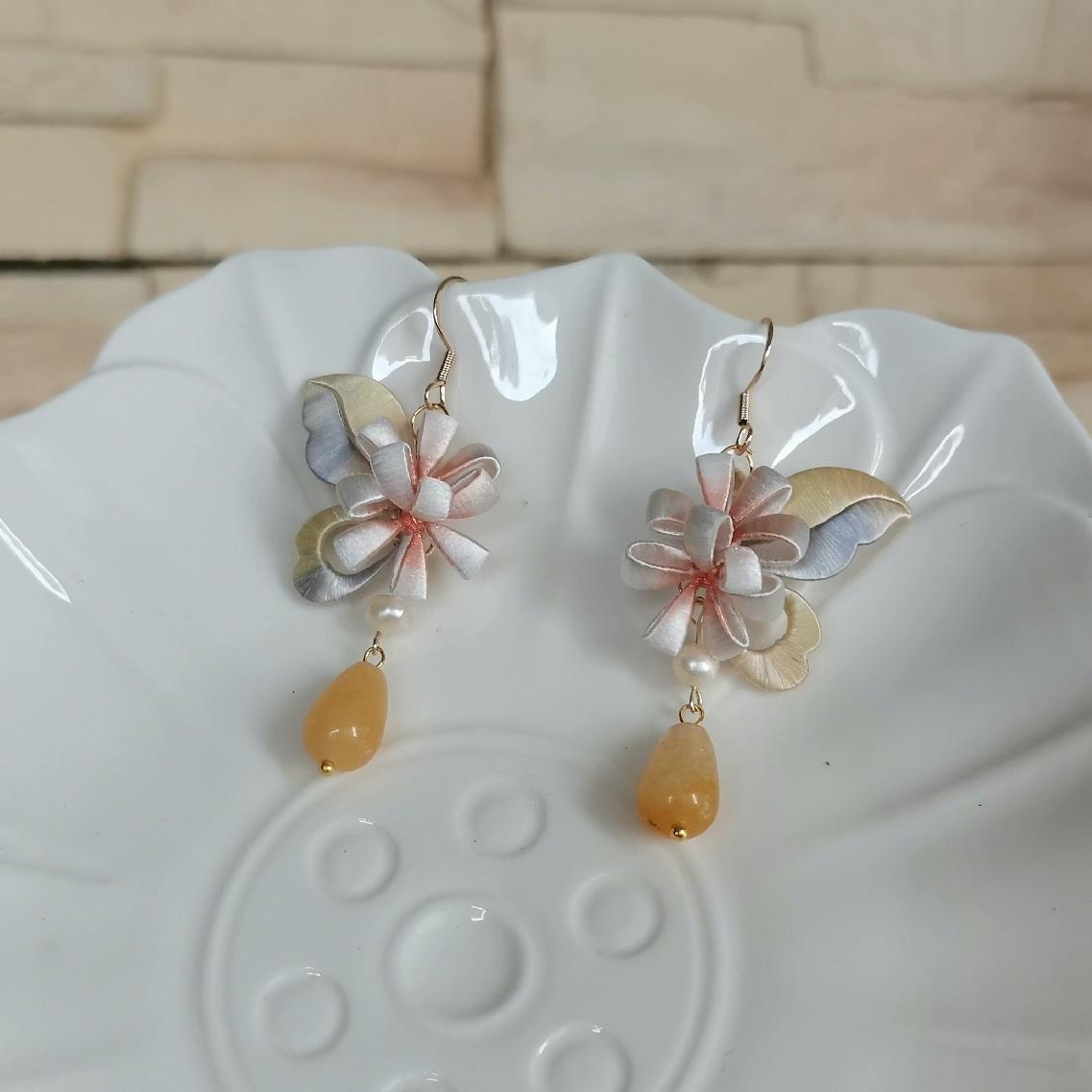 Butterfly And Flower Bespoke Earrings - Silk Earrings(Chanhua)