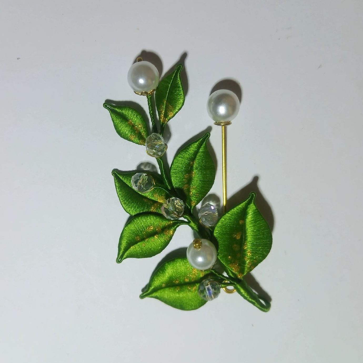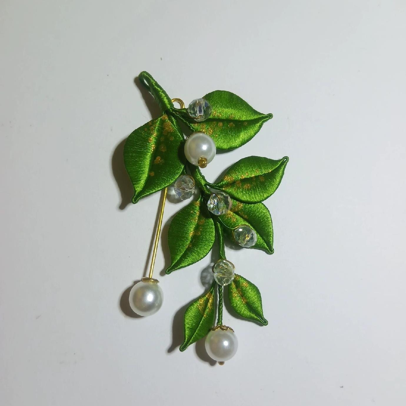 Eucalyptus Leaves Handmade Brooch - Silk Brooch(Chanhua)
