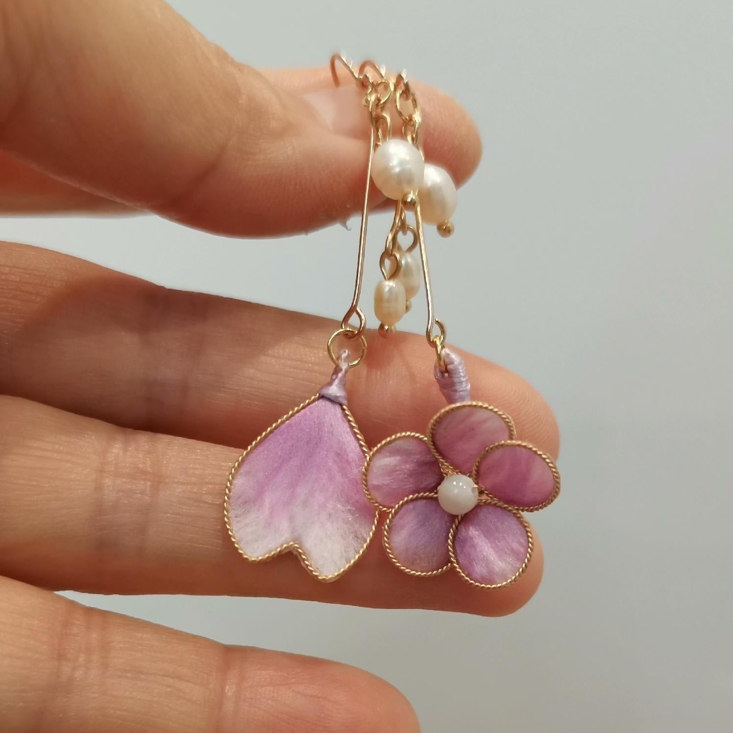 Flower And Heart Bespoke Earrings - Silk Earrings(Ronghua)