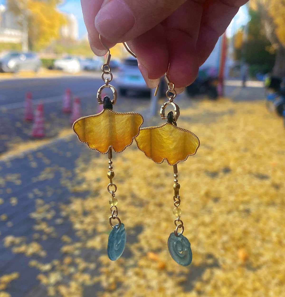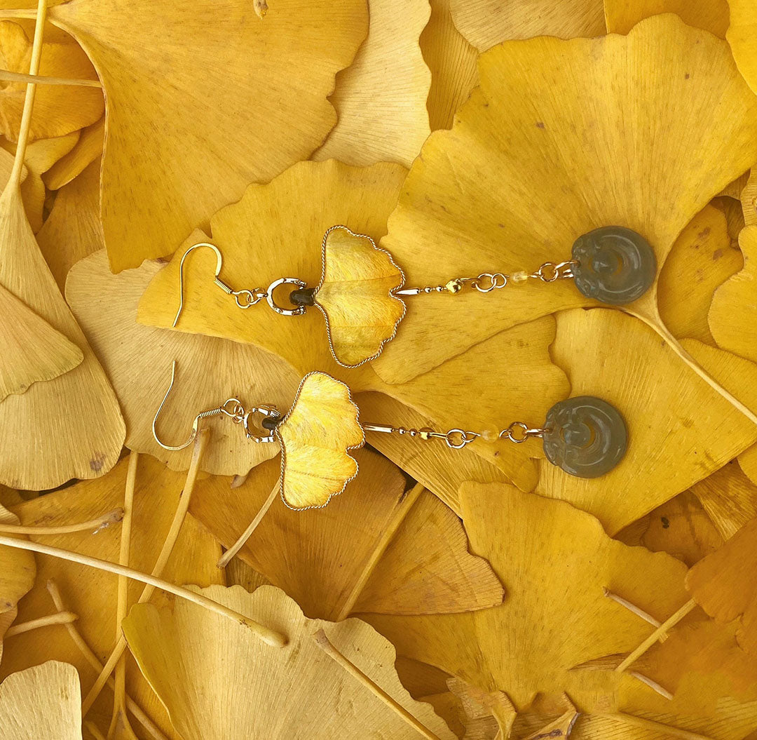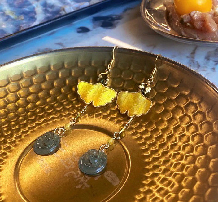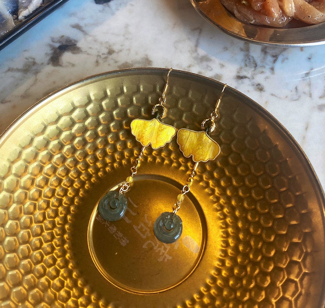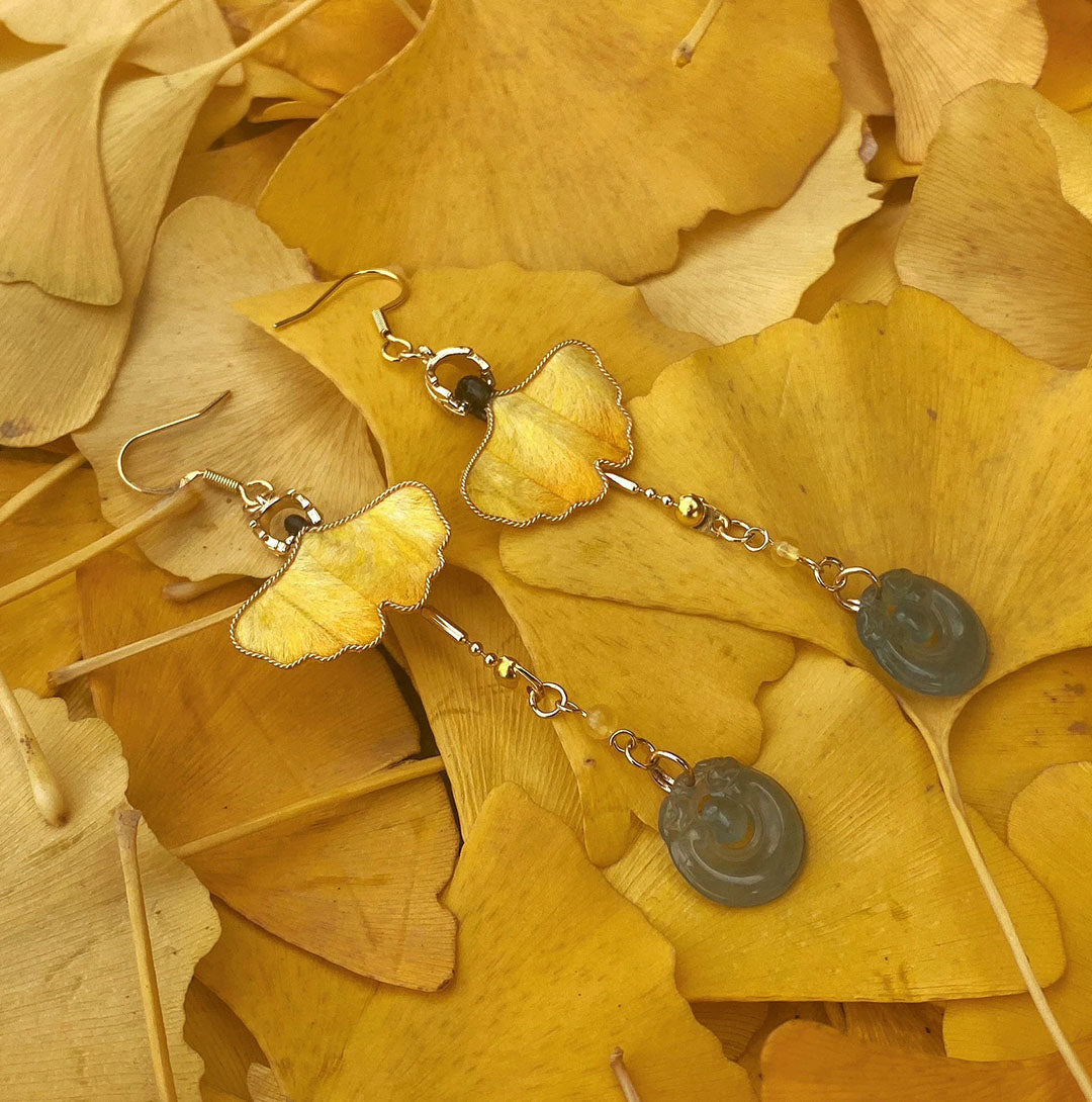 Ginkgo Leaf Bespoke Earrings - Silk Earrings(Ronghua)