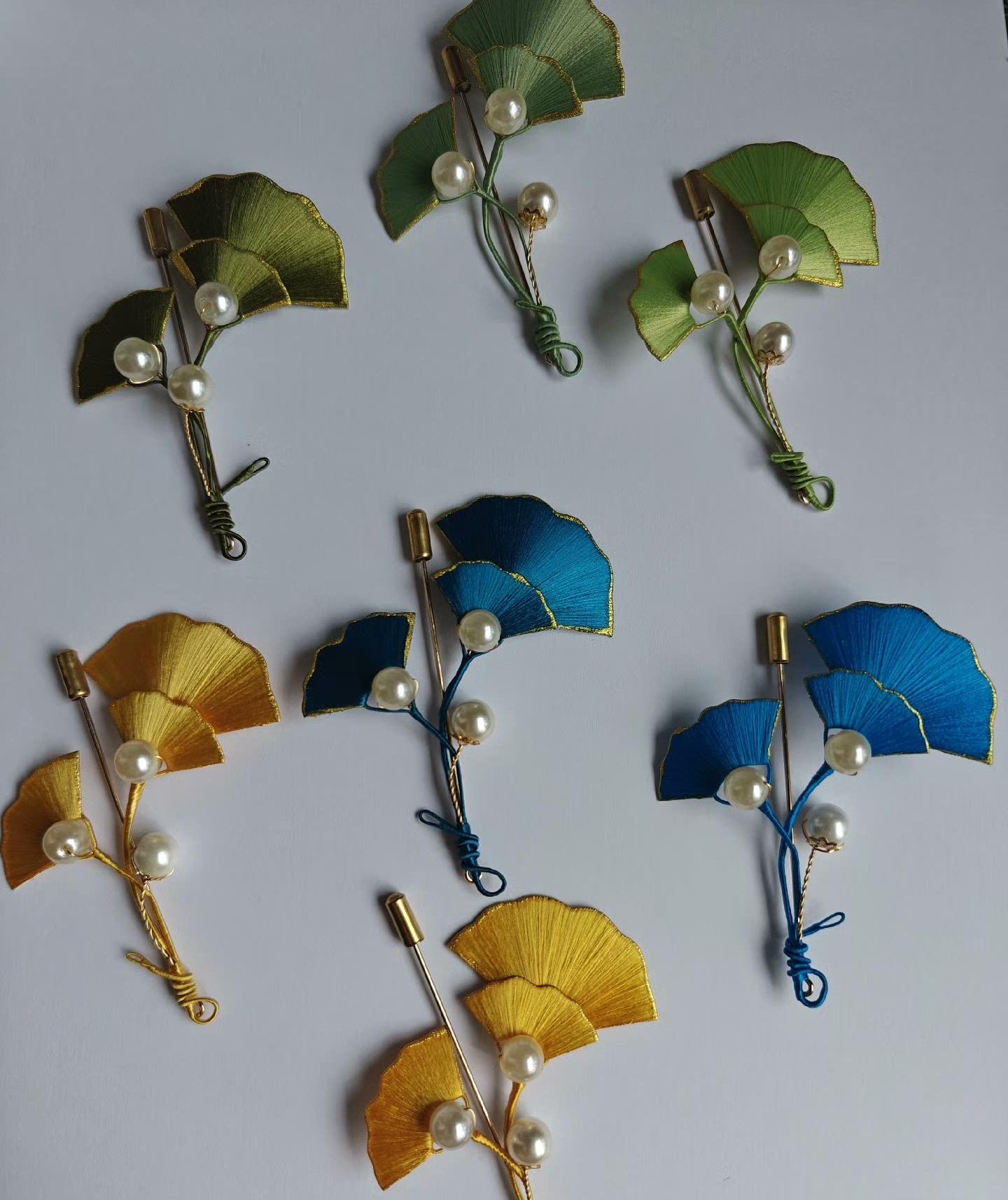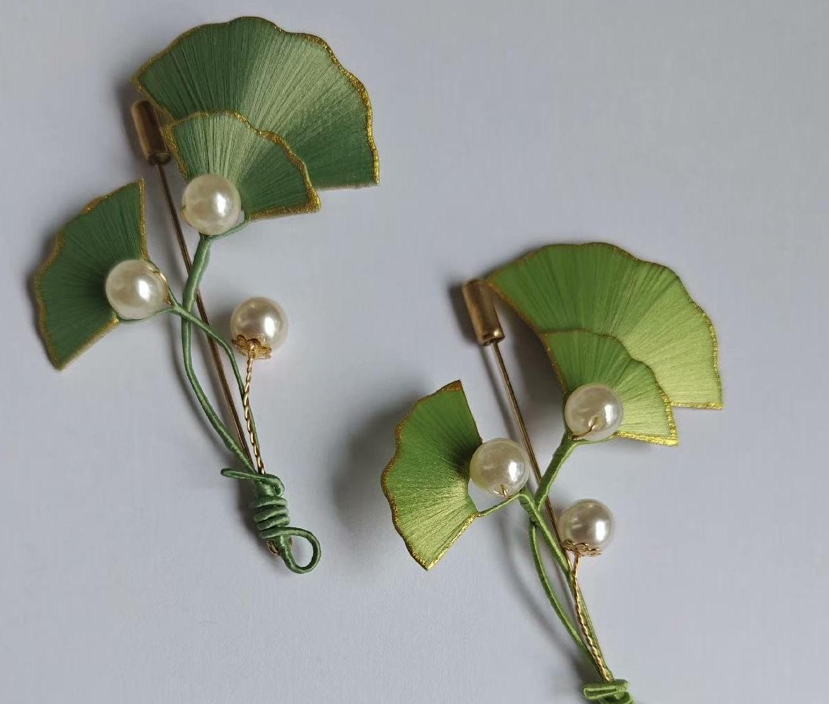 Ginkgo Leaves Handmade Brooch - Silk Brooch(Chanhua)