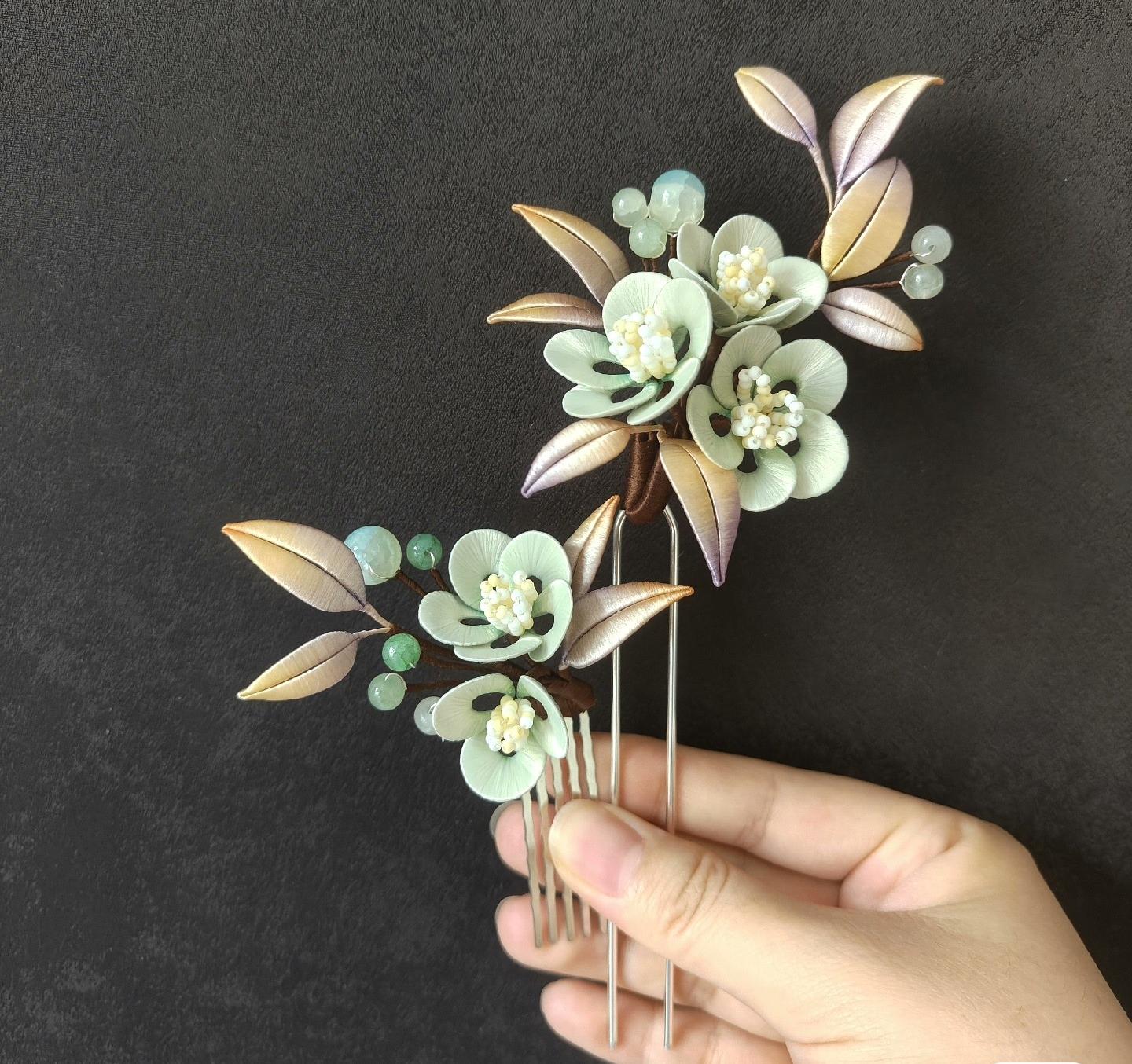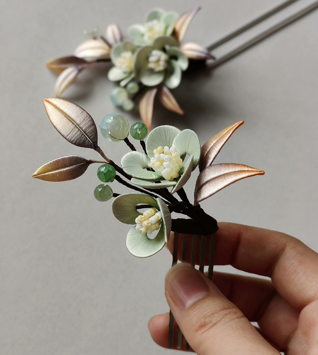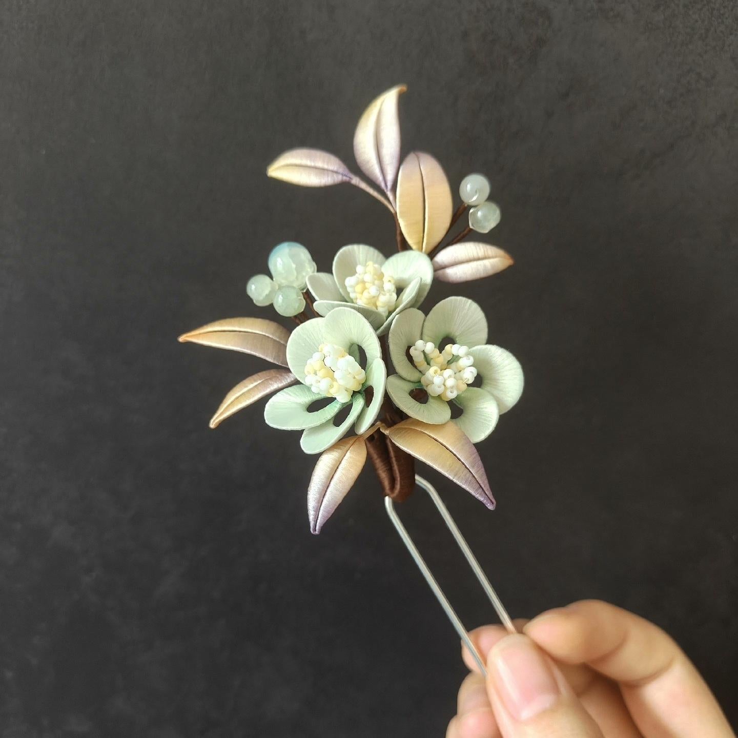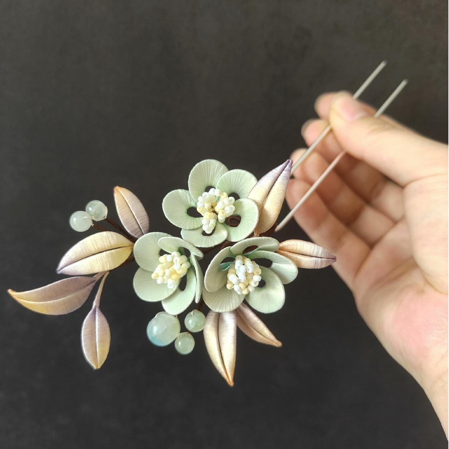 Green Flower Bespoke Hairpin - Silk Hairpin(Chanhua)