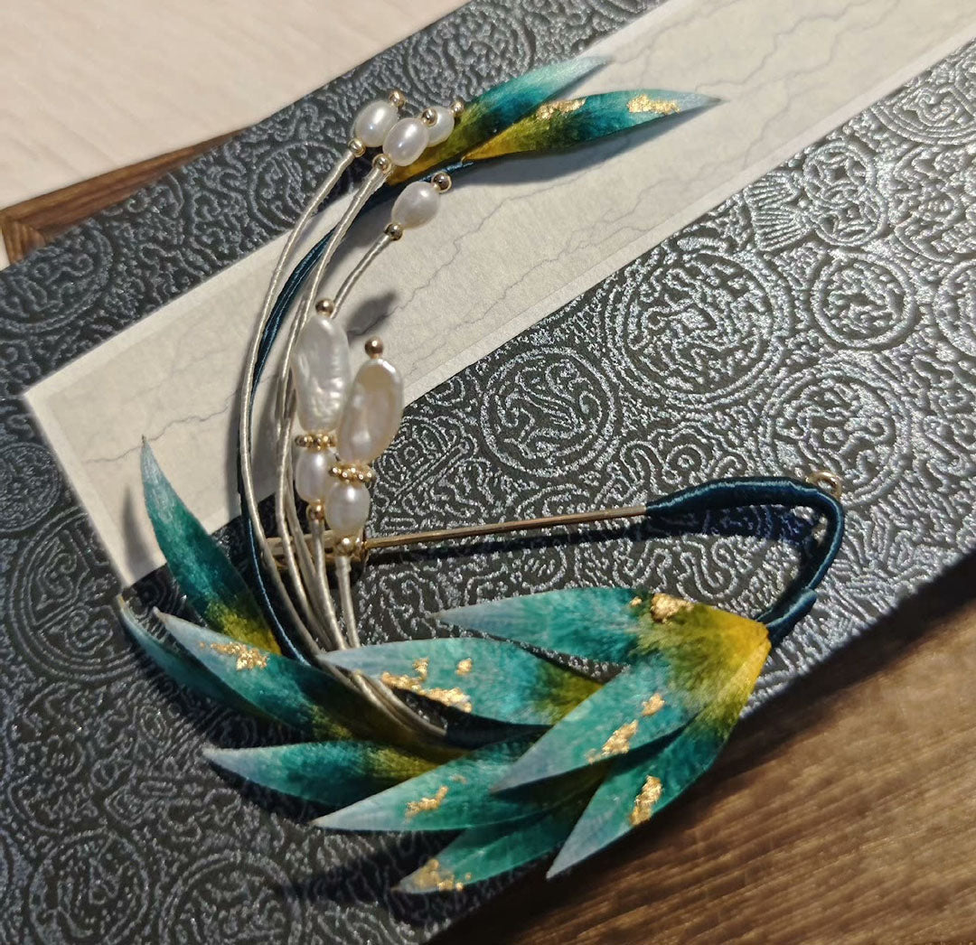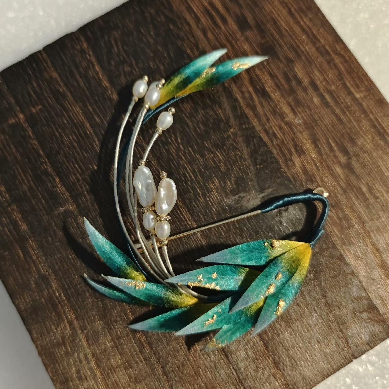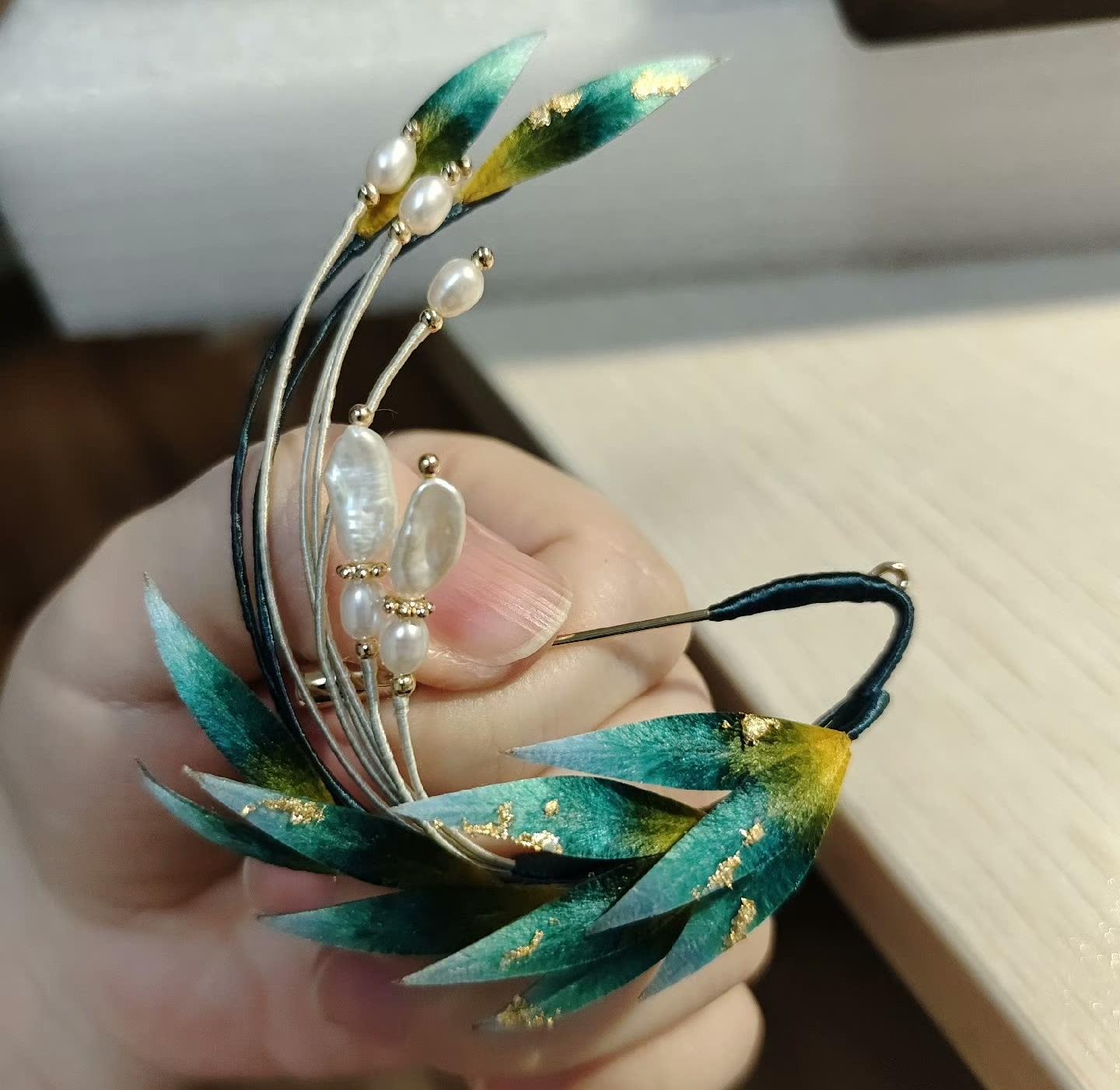 Green Leaves Bespoke Brooch - Silk Brooch(Ronghua)