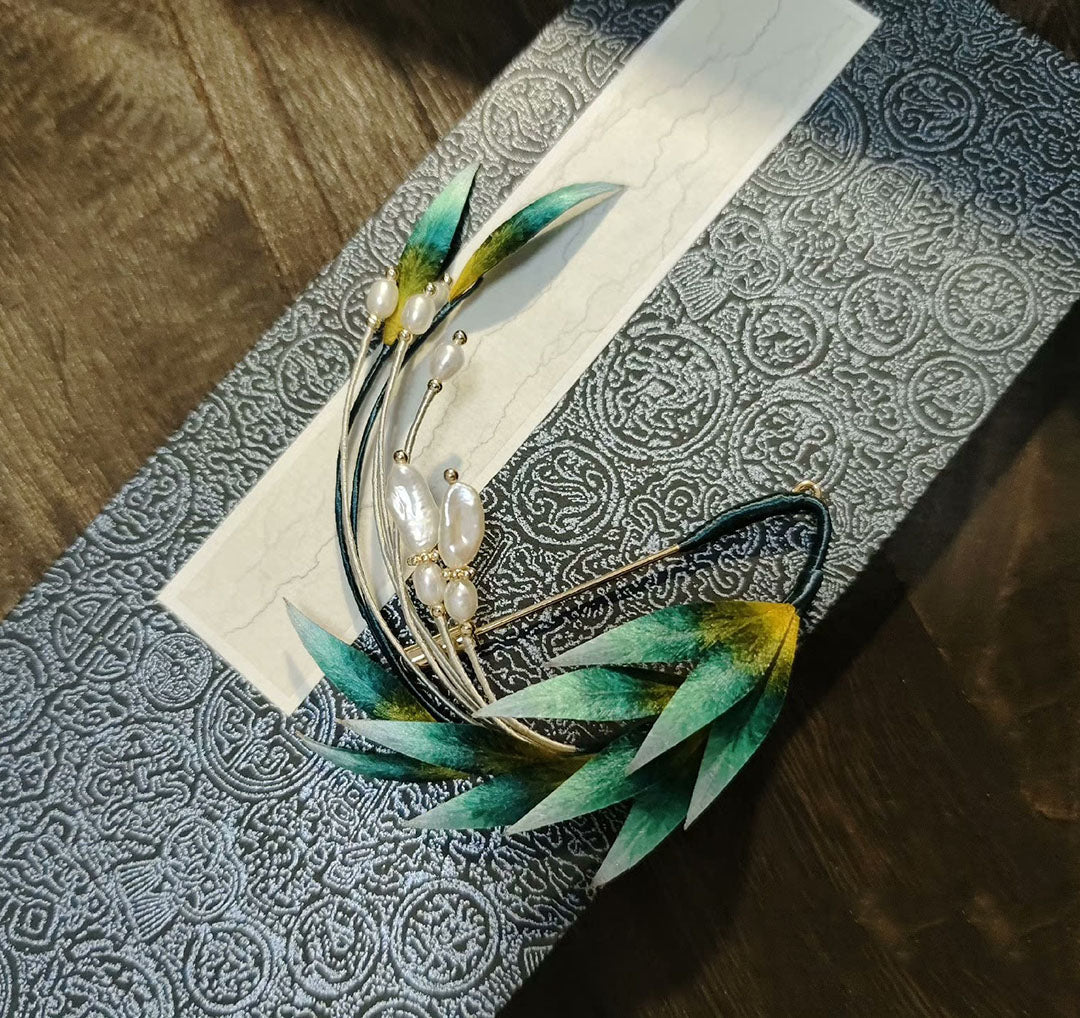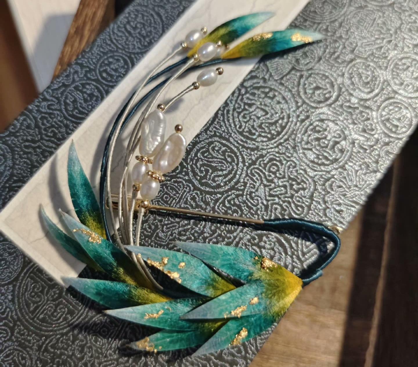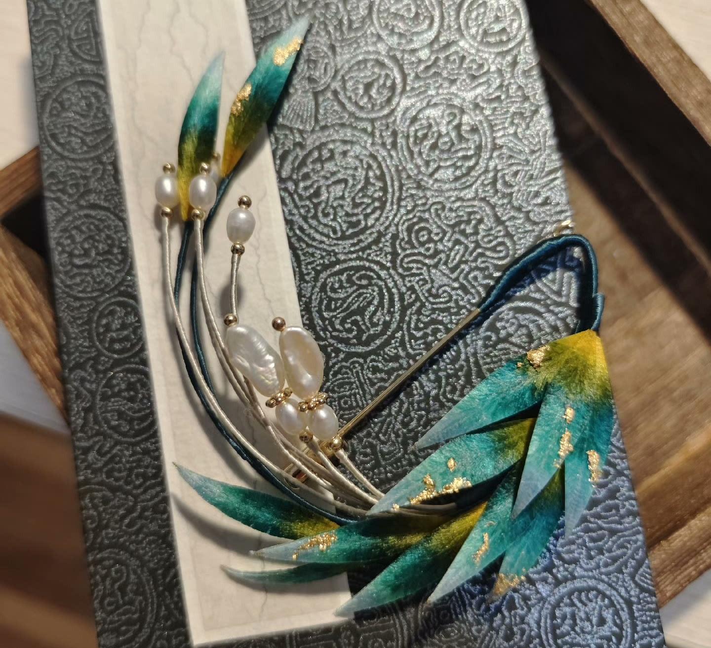 Green Leaves Bespoke Brooch - Silk Brooch(Ronghua)