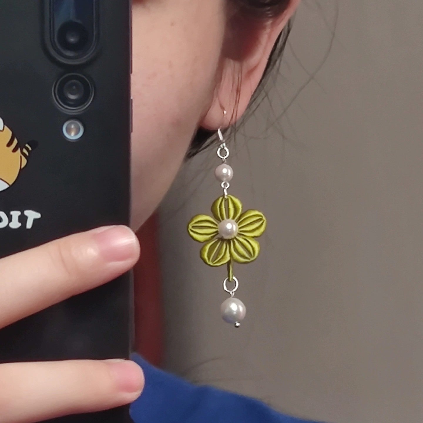 Handmade Chanhua Flower & Pearl Earrings - 925 Silver Hooks