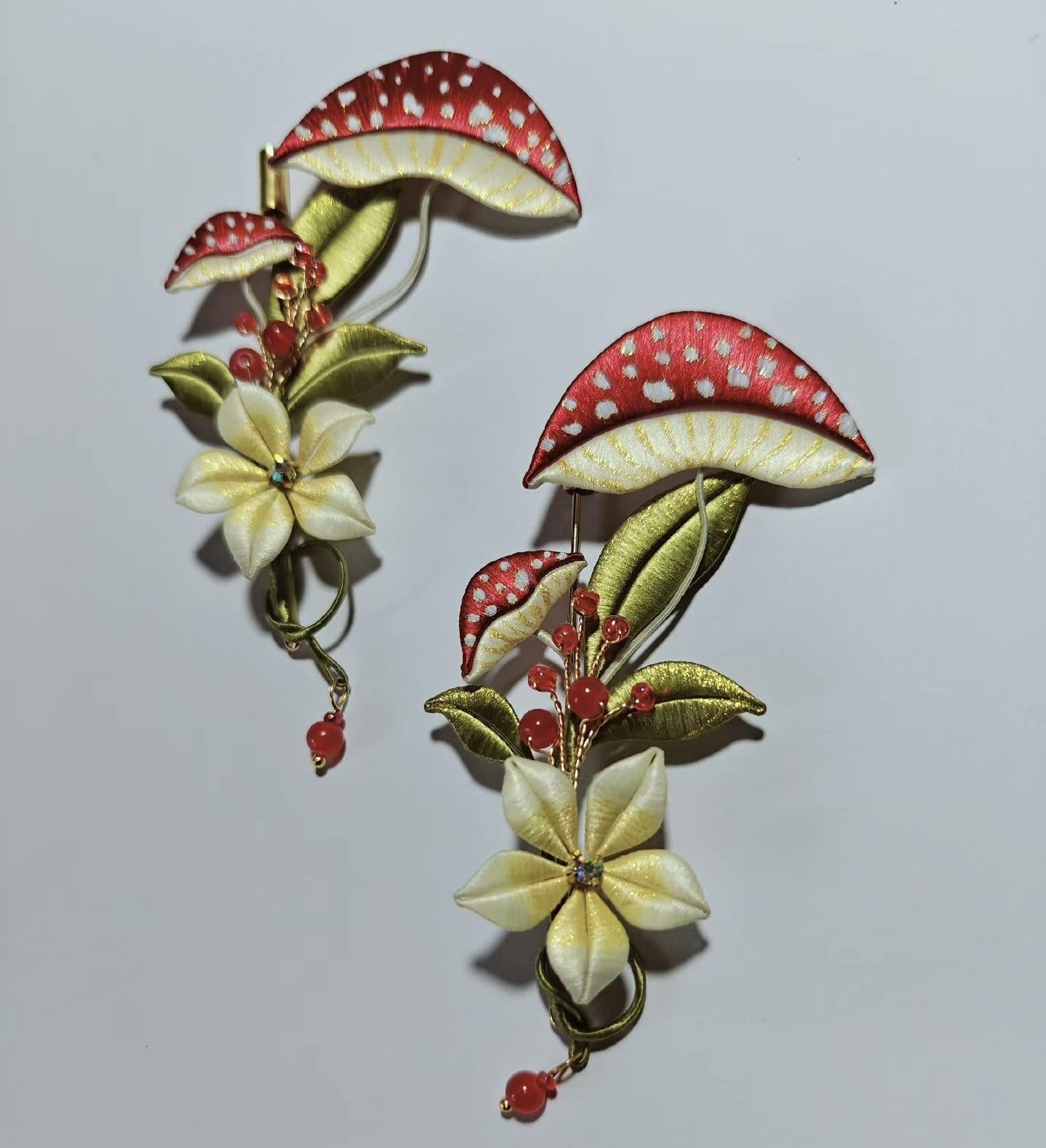 Mushroom Handmade Brooch - Silk Brooch(Chanhua)