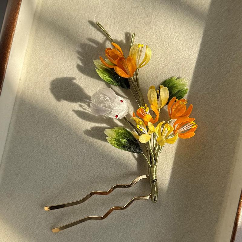 Osmanthus And Rabbit Bespoke Hairpin - Silk Hairpin(Ronghua)