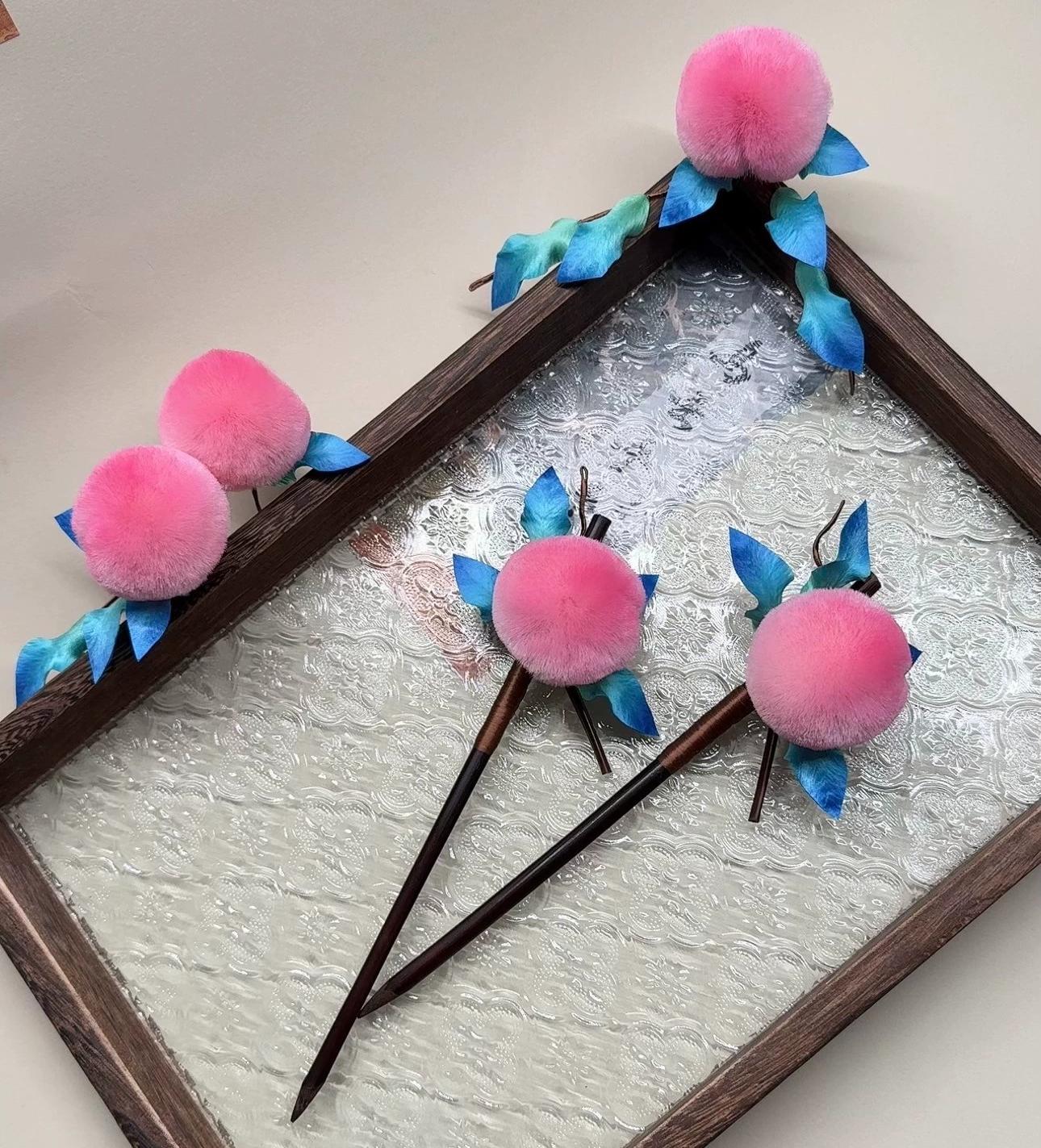 Peach Bespoke Hairpin - Silk Hairpin(Ronghua)