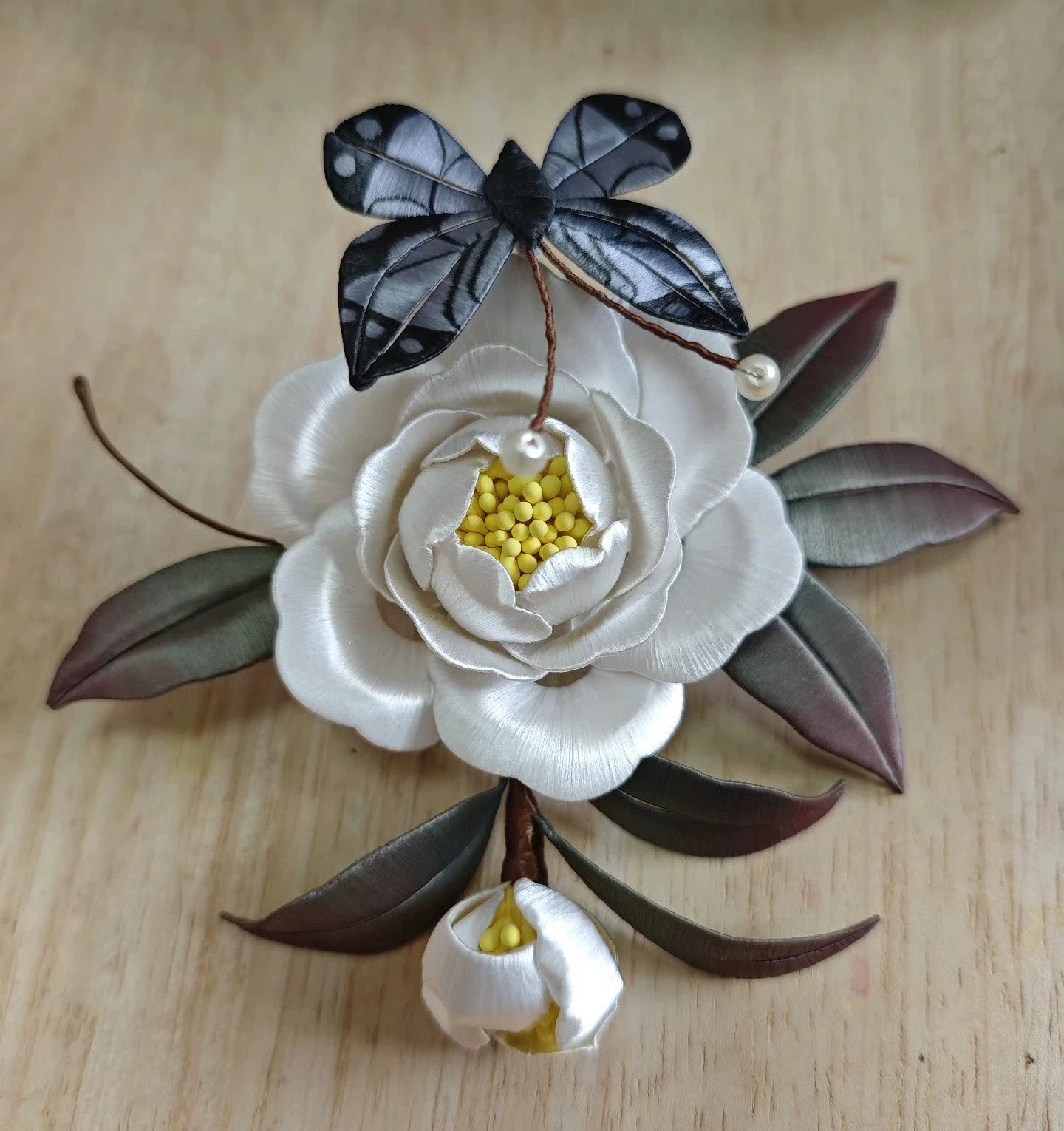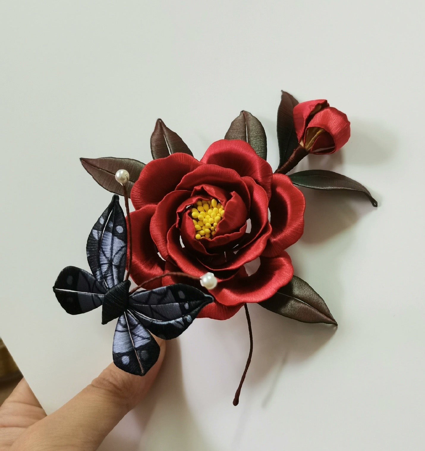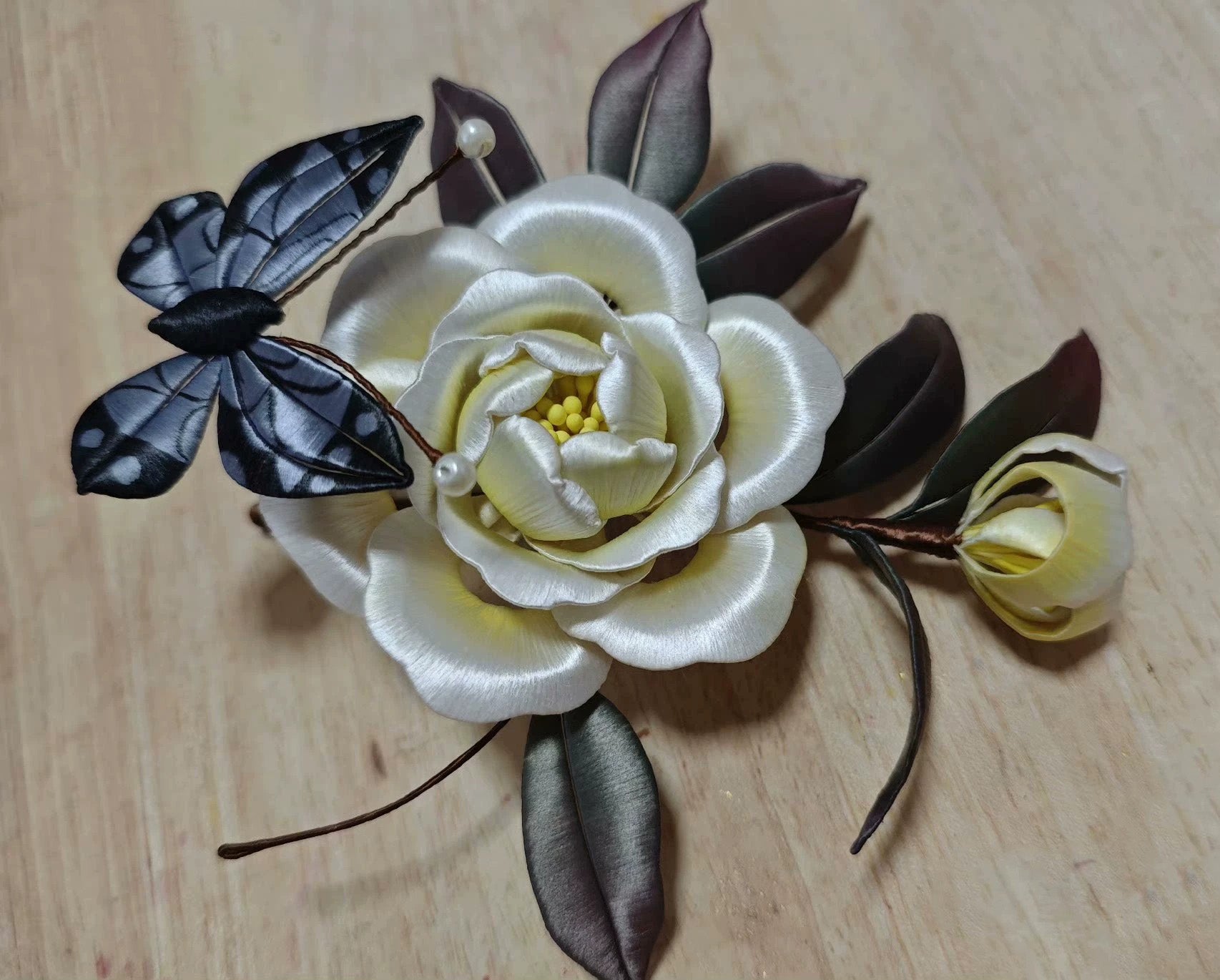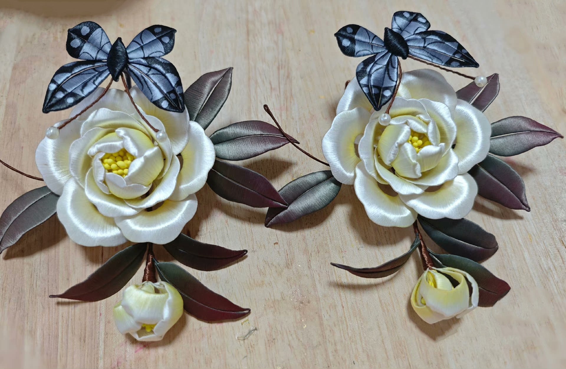 Peony and Butterfly Bespoke Hairpin - Silk Hairpin(Chanhua)