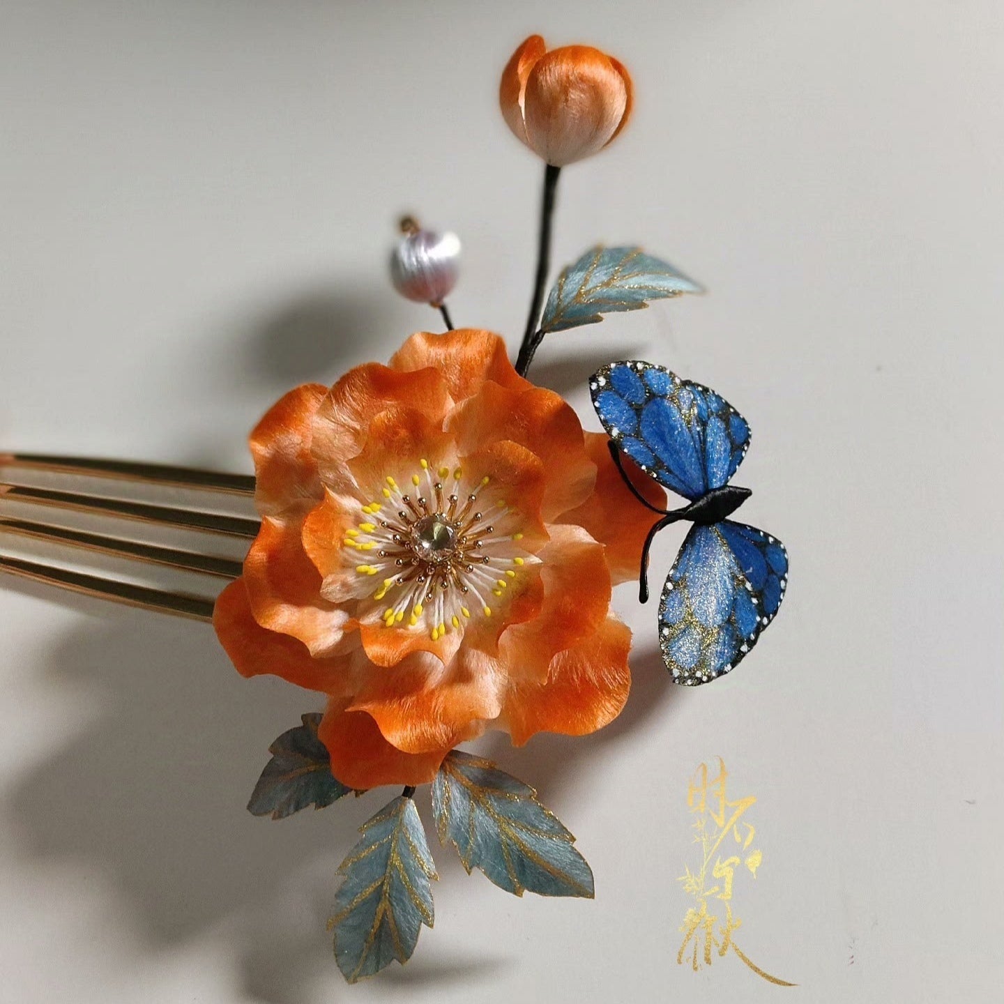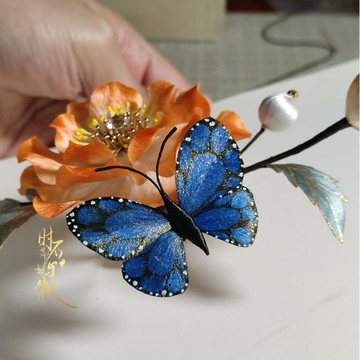 Peony And Butterfly Bespoke Hairpin - Silk Hairpin(Ronghua)