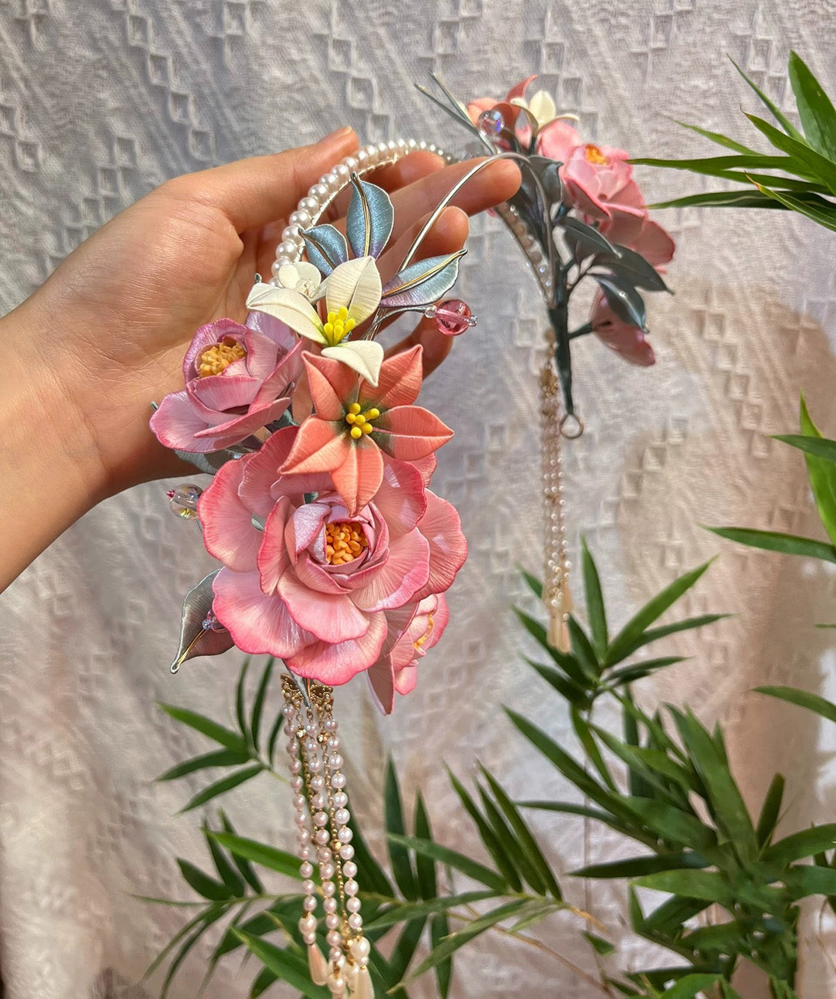 Peony Bespoke Hair Crown - Silk Hair Crown(Chanhua)