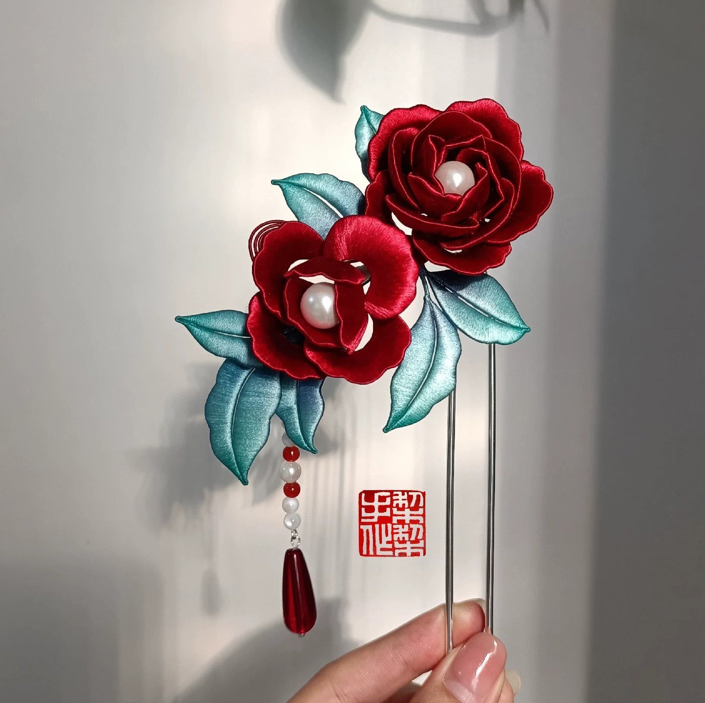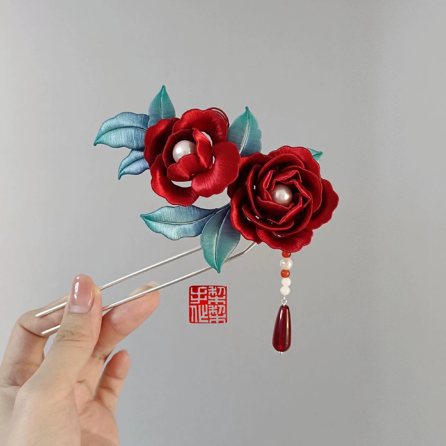 Peony Bespoke Hairpin - Silk Hairpin(Chanhua)
