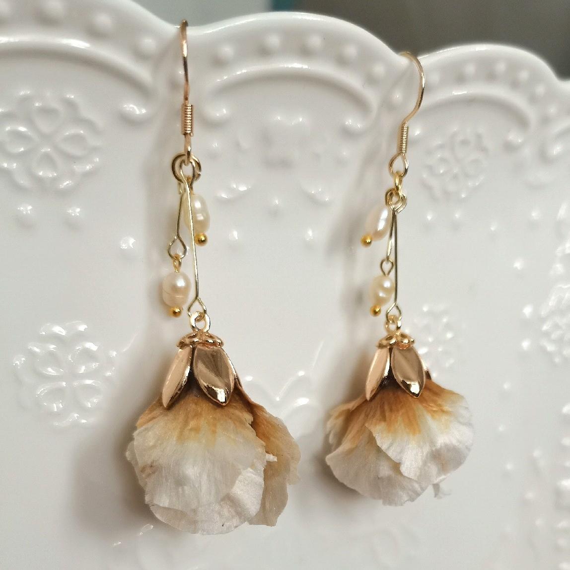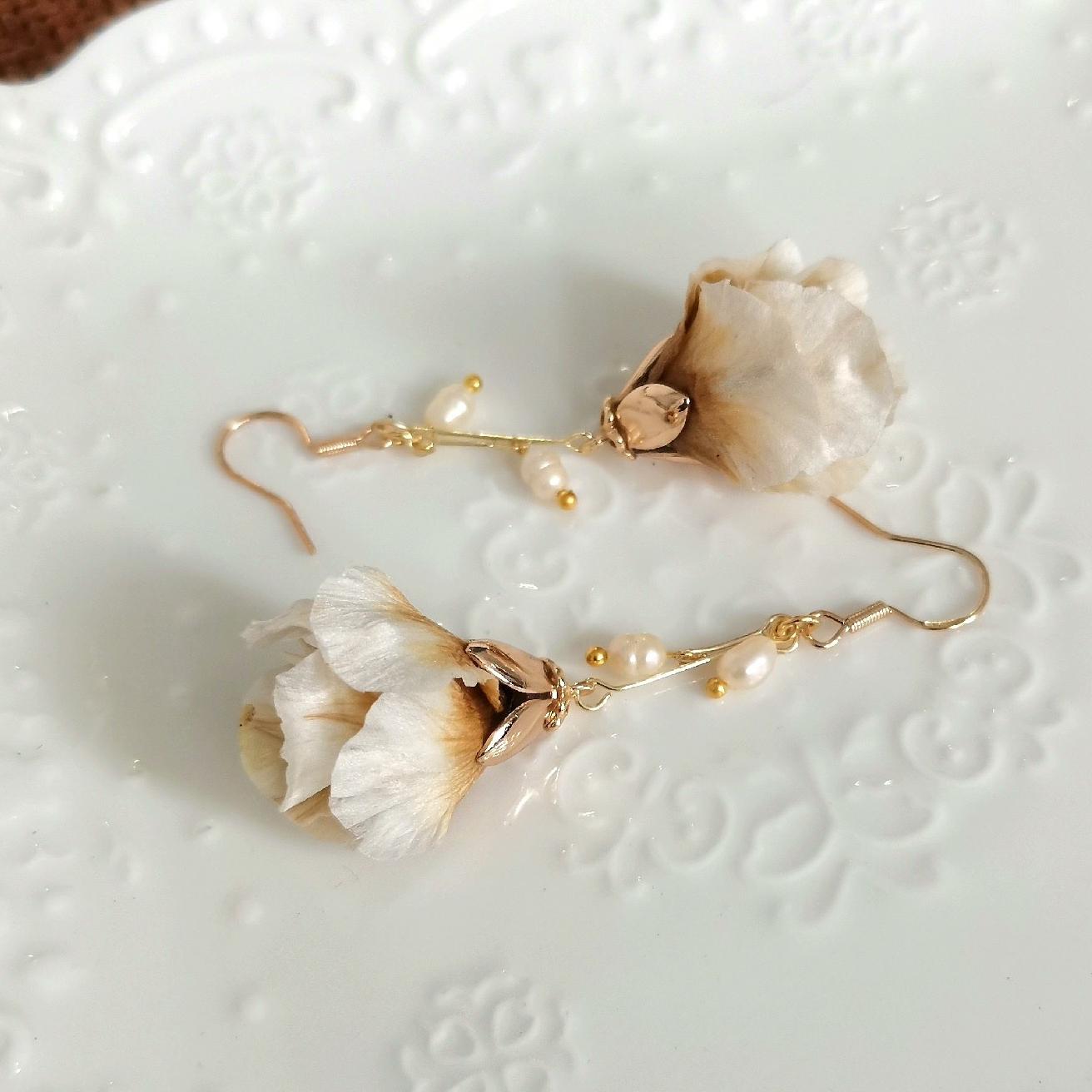 Peony Flower Bud Bespoke Earrings - Silk Earrings(Ronghua)