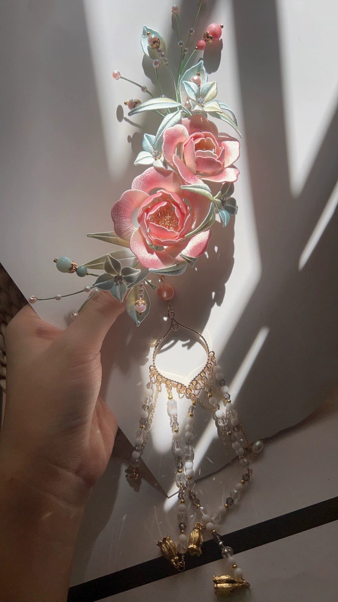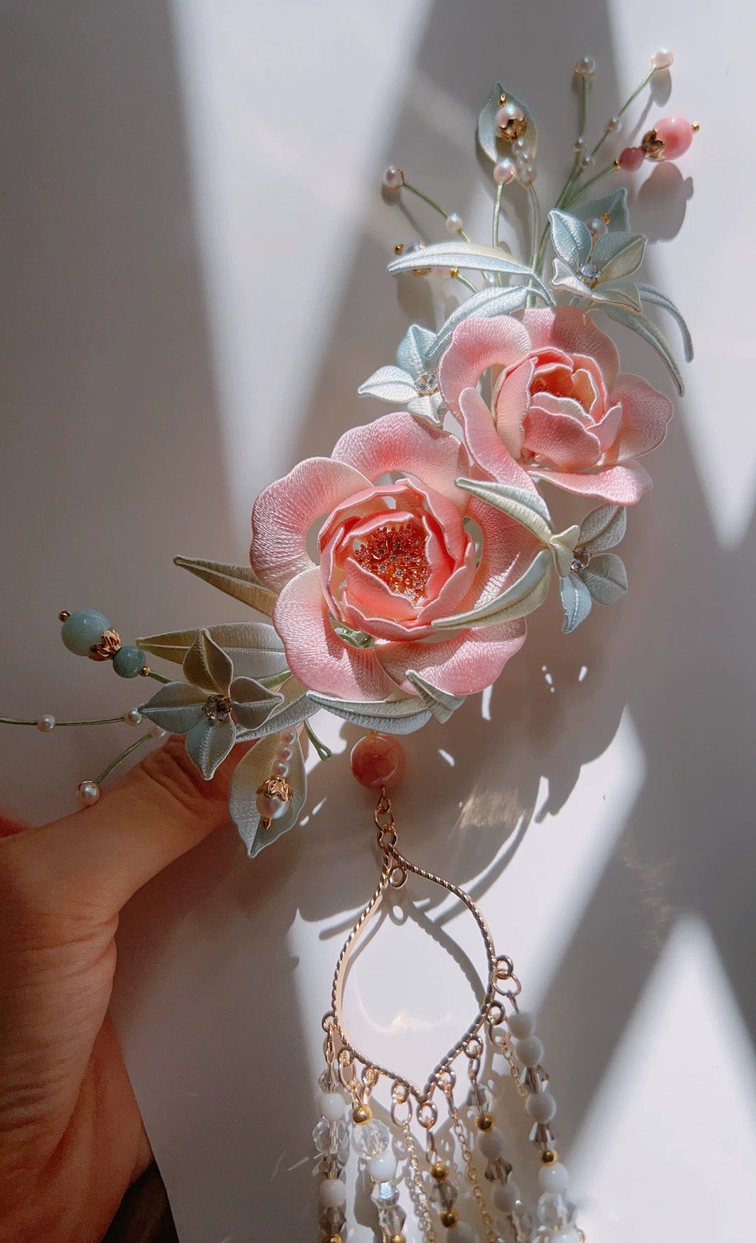Pink Flower Bespoke Hairpin - Silk Hairpin(Chanhua)