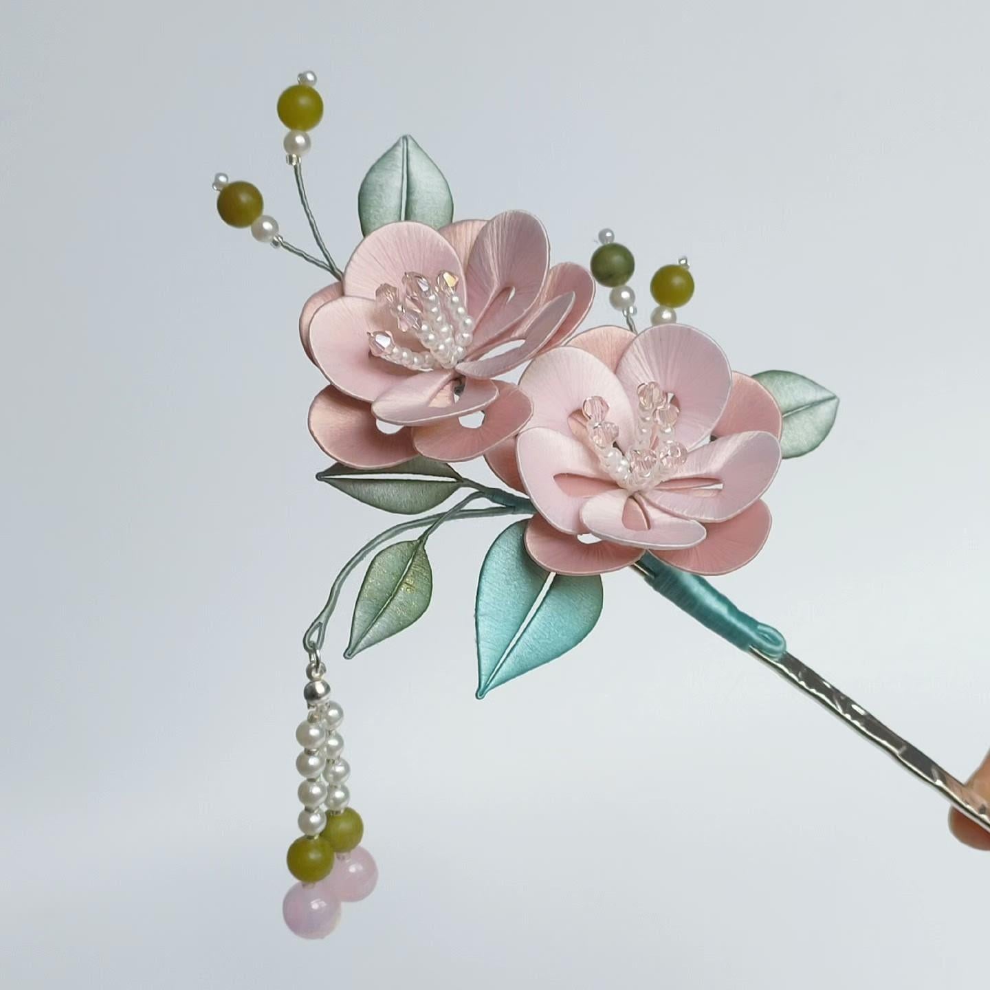 Pink Flower Bespoke Hairpin - Silk Hairpin(Chanhua)