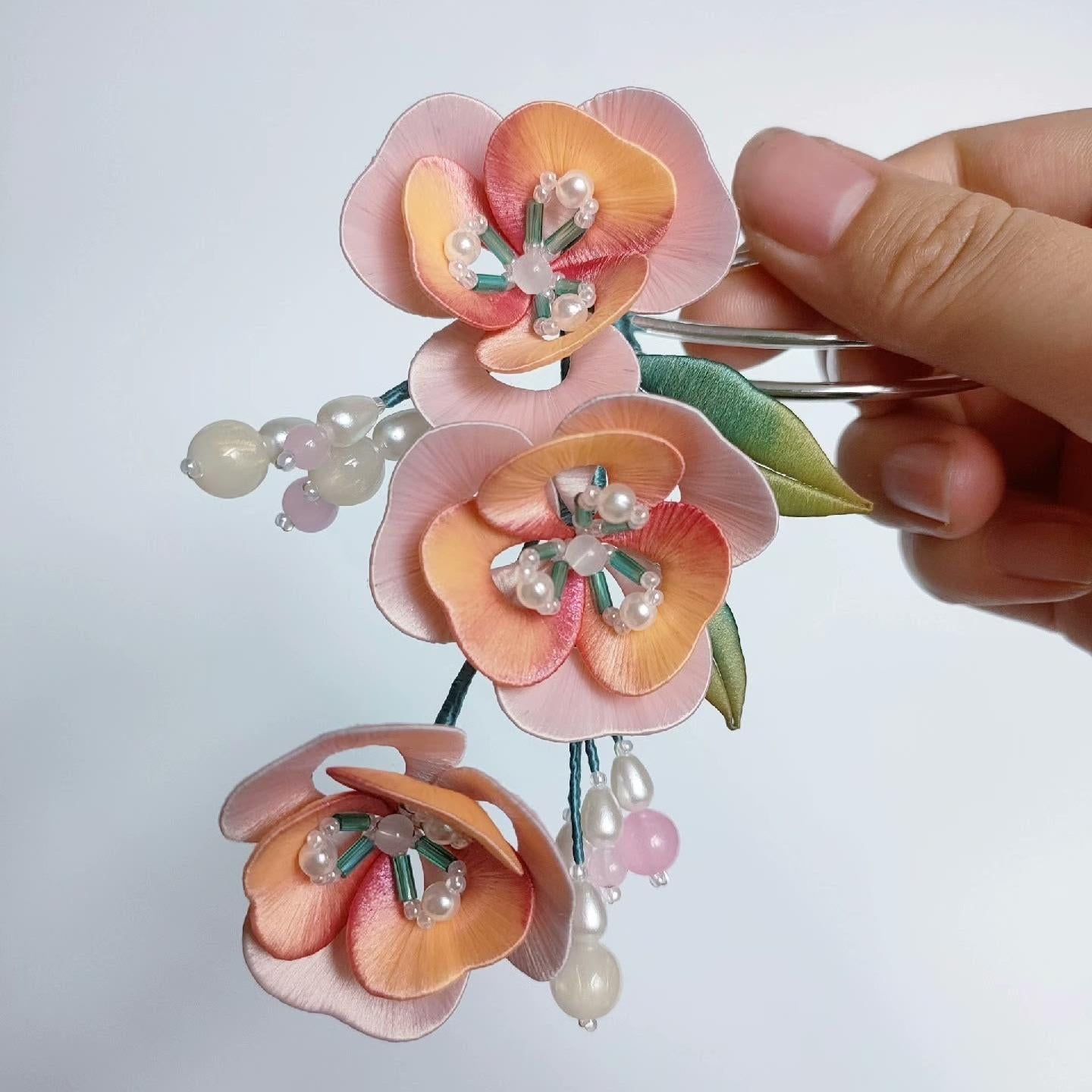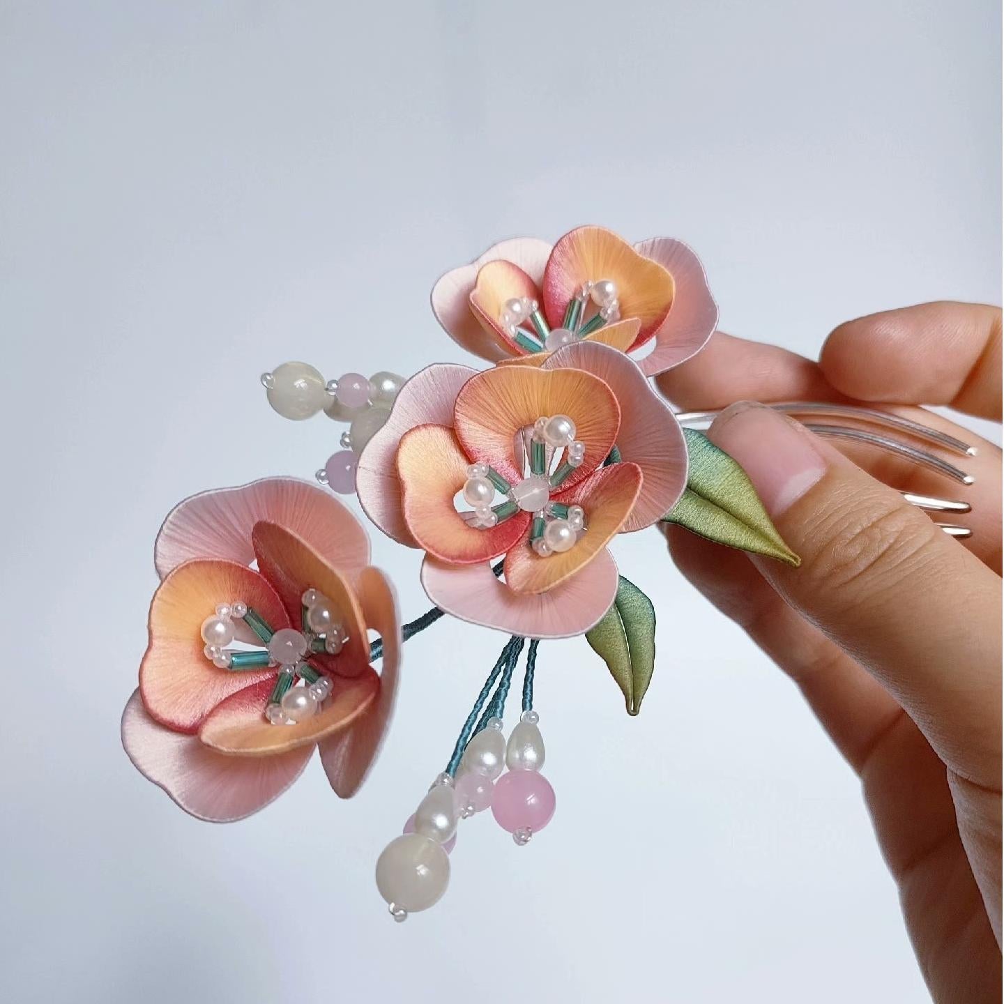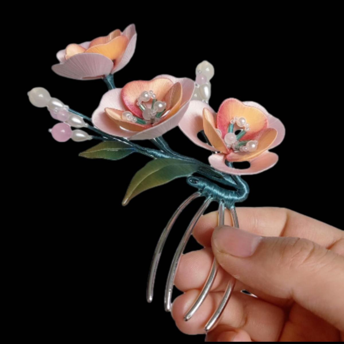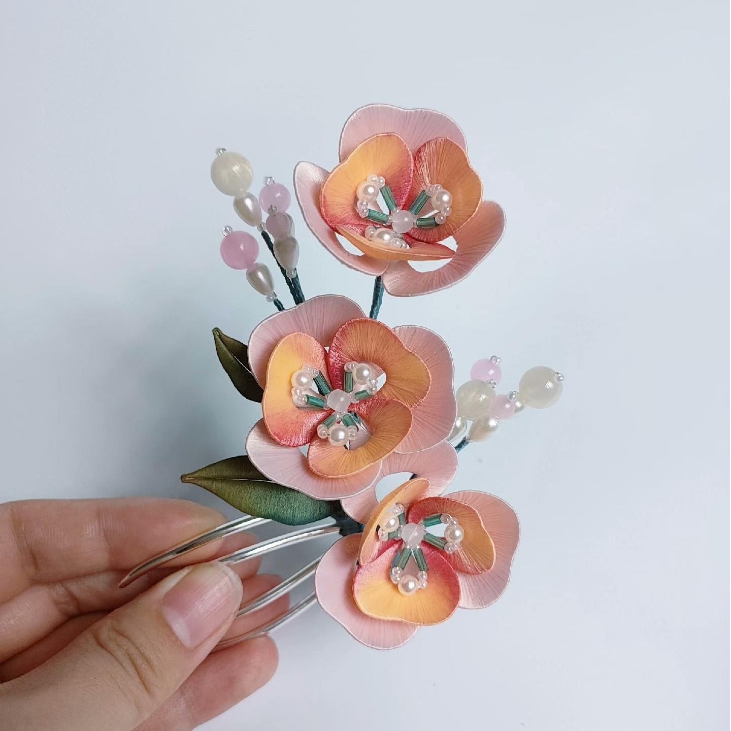 Pink Flower Bespoke Hairpin - Silk Hairpin(Chanhua)