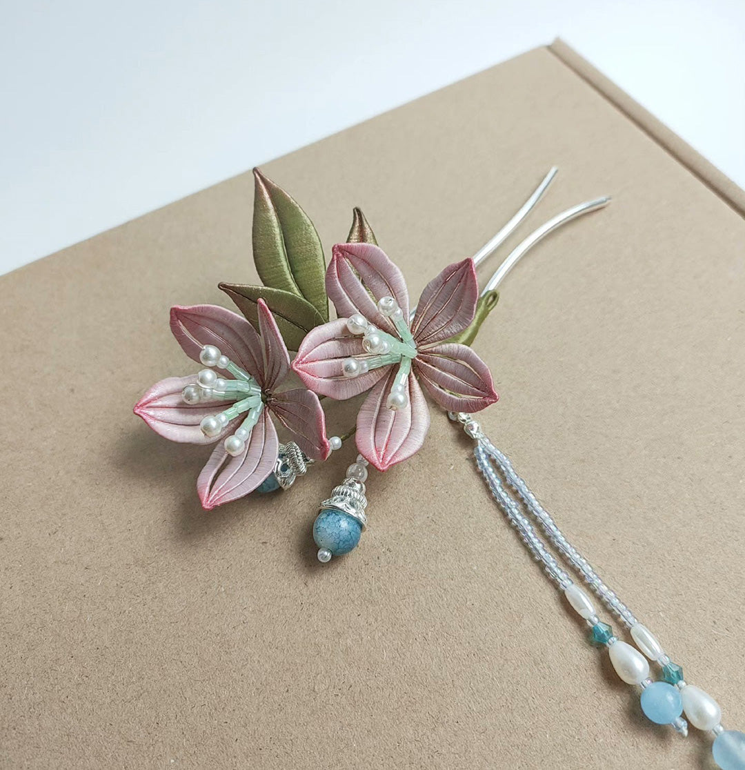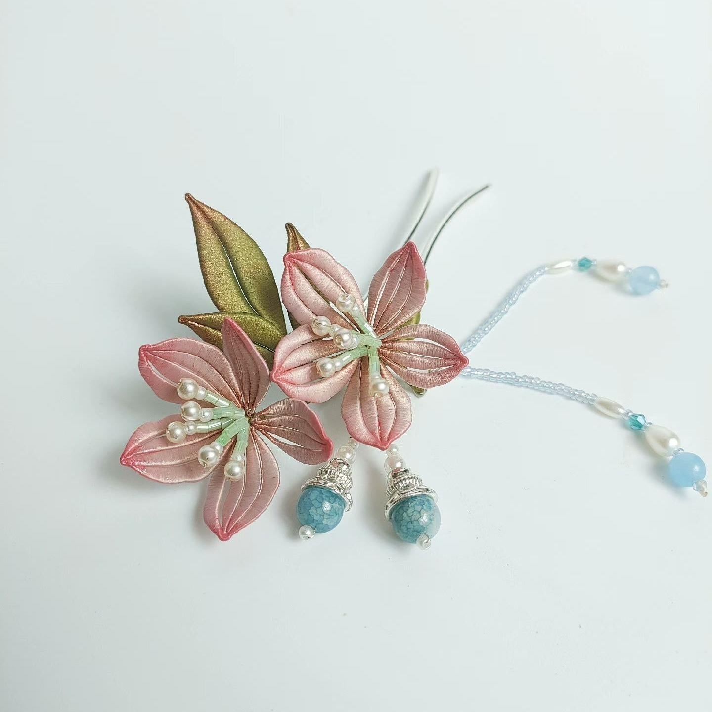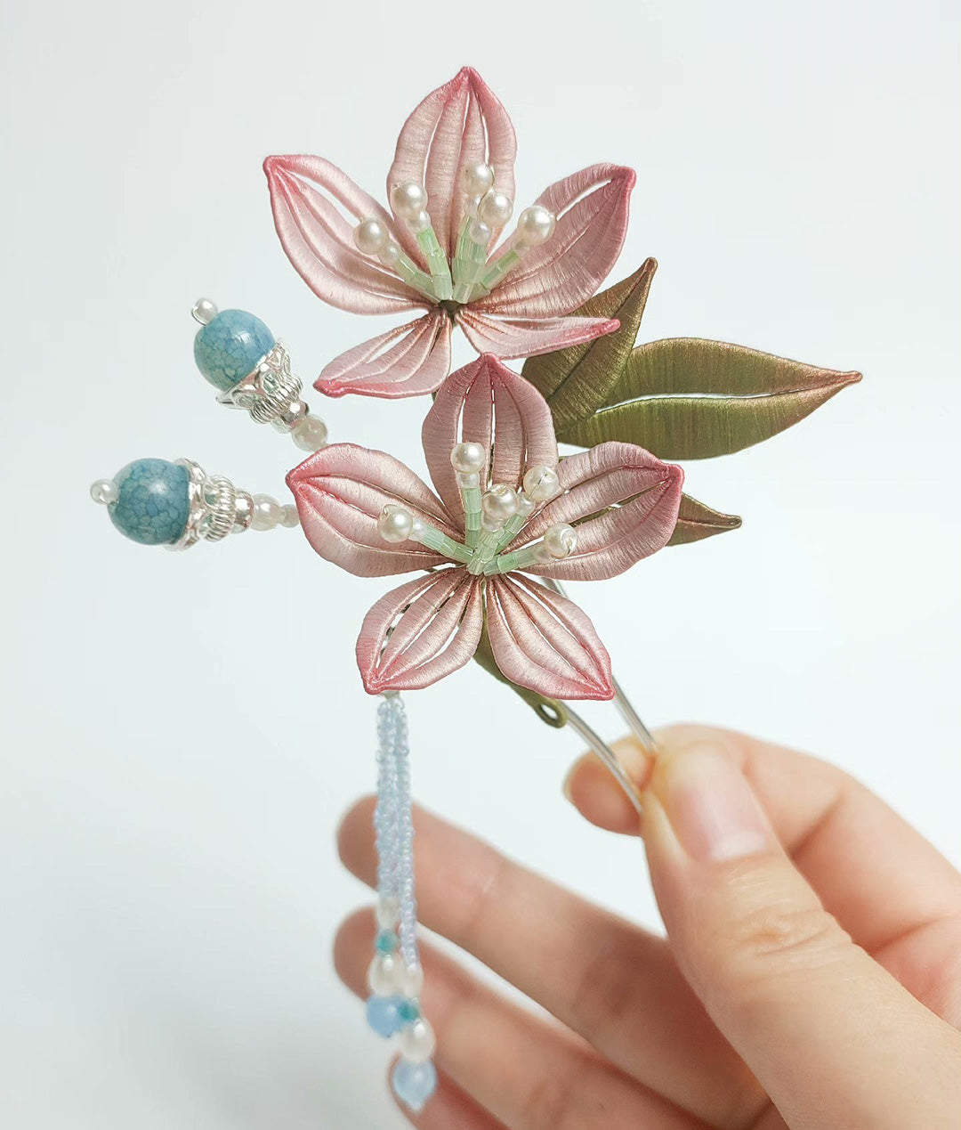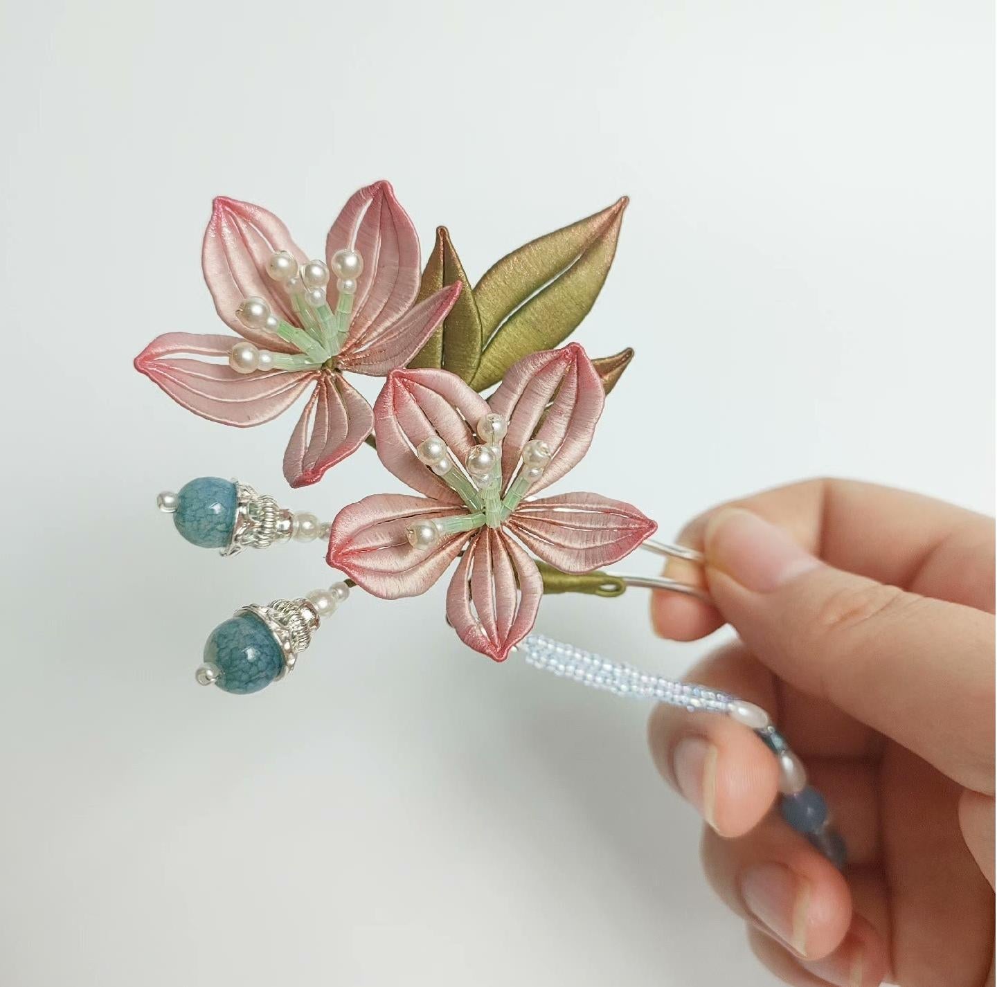 Pink Flower Handmade Hairpin - Silk Hairpin(Chanhua)
