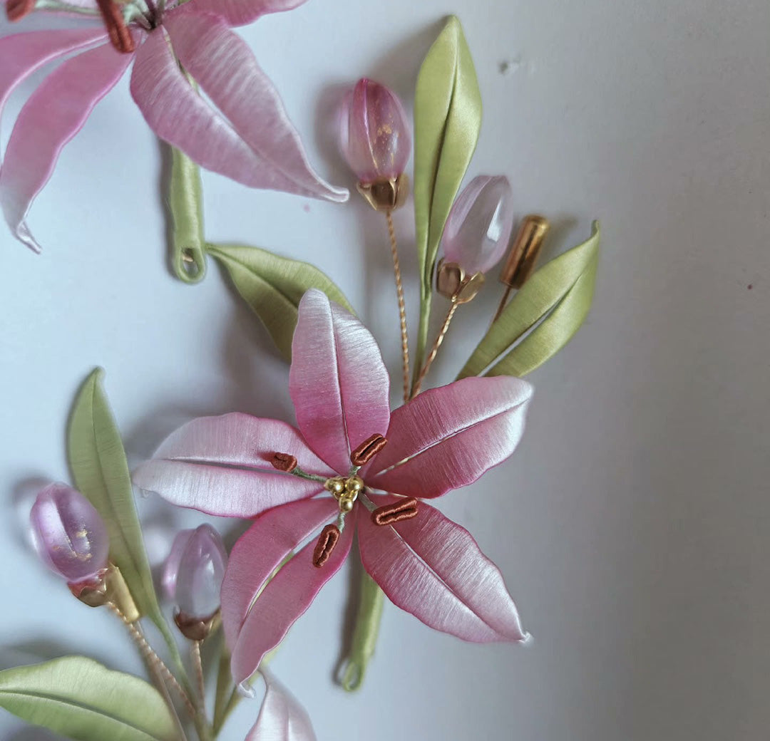 Pink Lily Handmade Brooch - Silk Brooch(Chanhua)