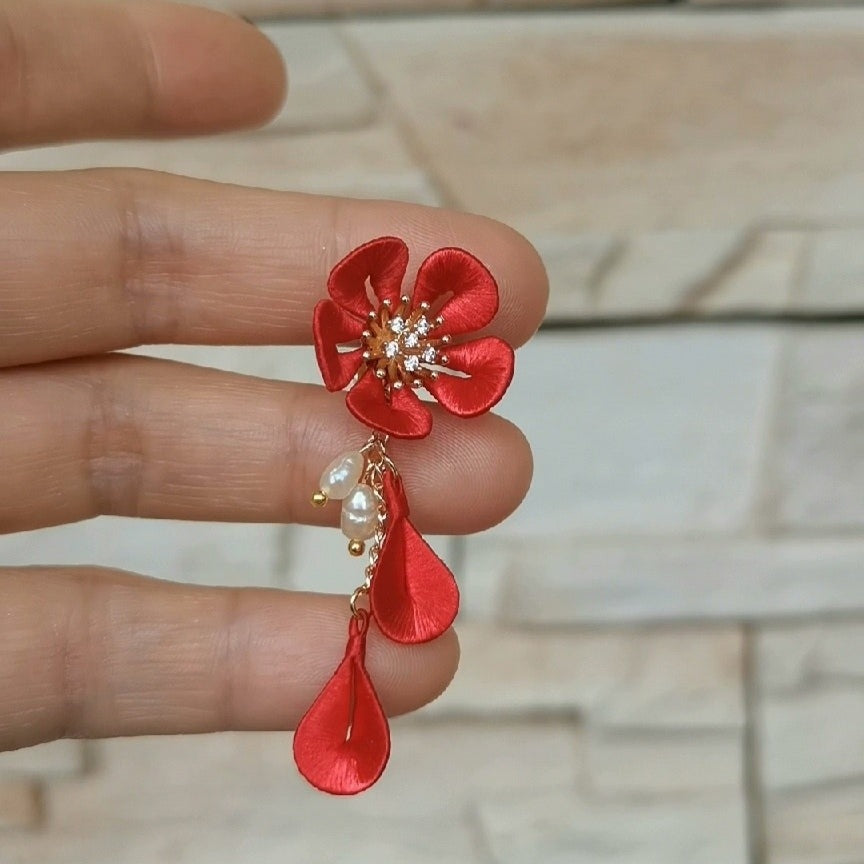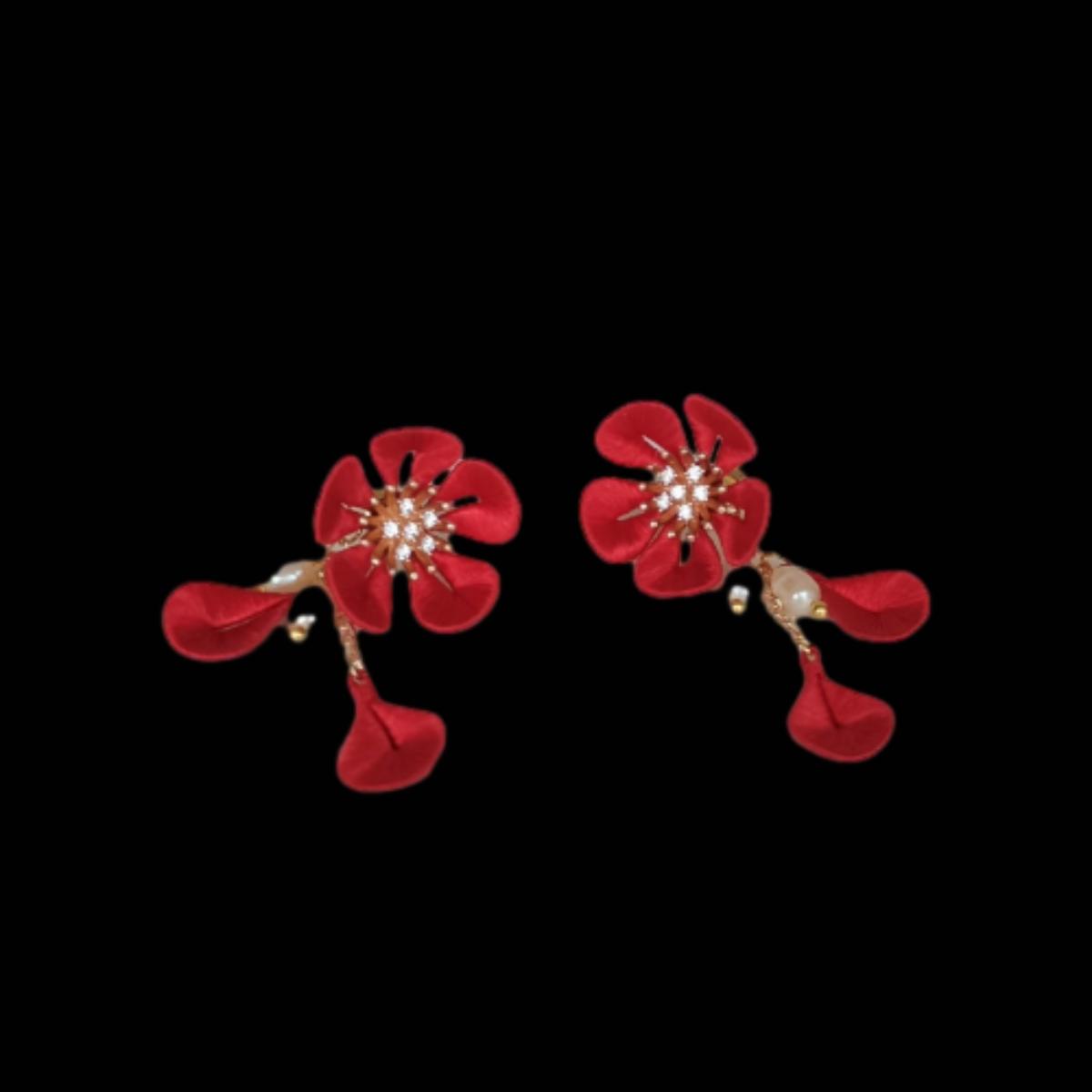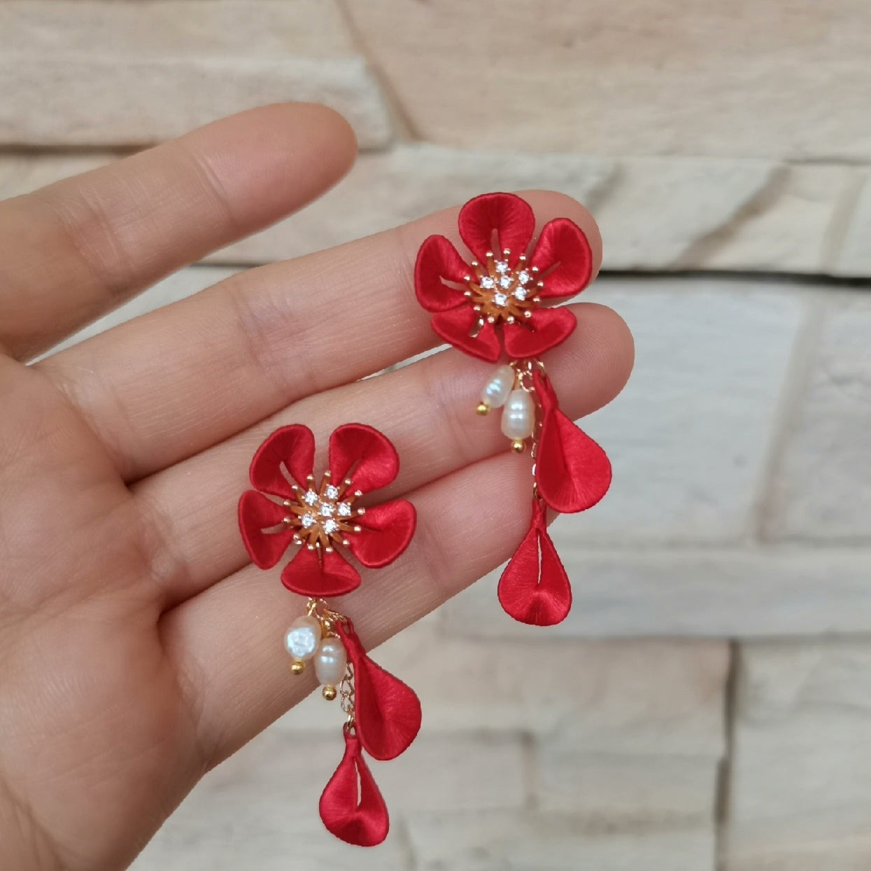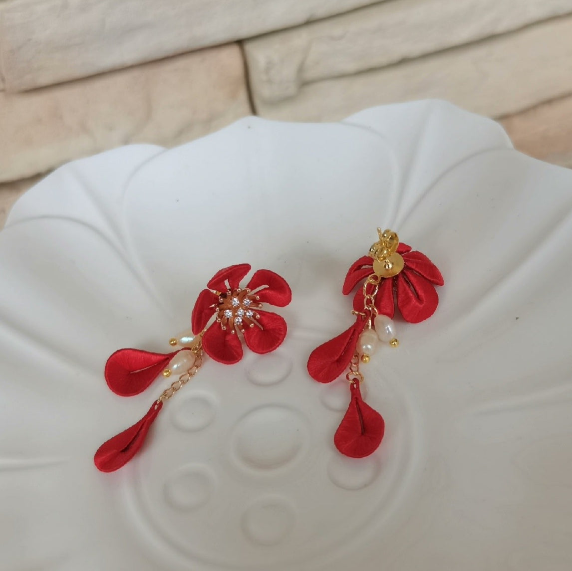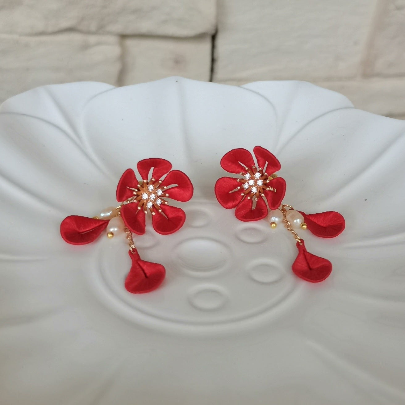 Plum Blossom Bespoke Earrings - Red Silk Earrings(Chanhua)