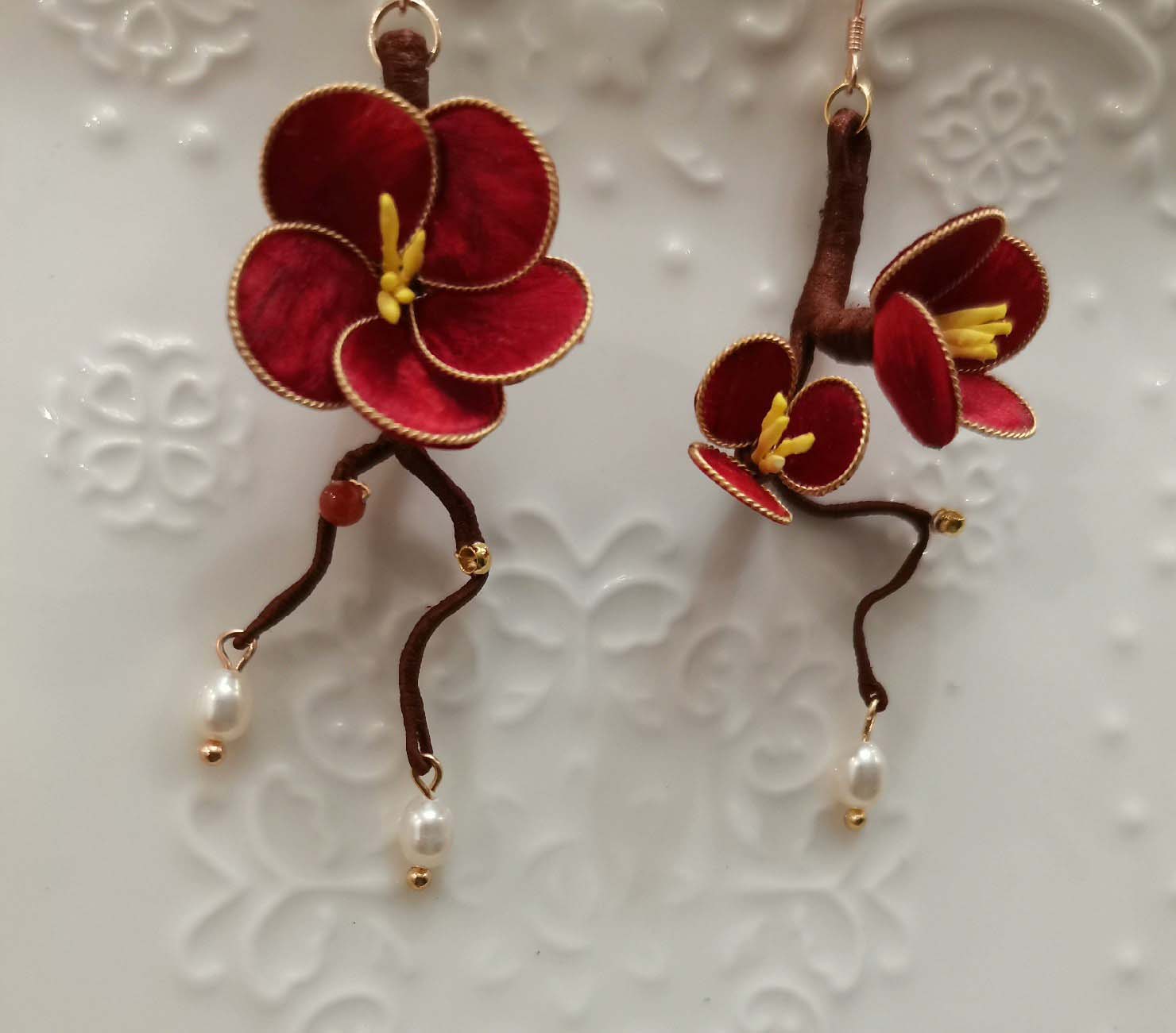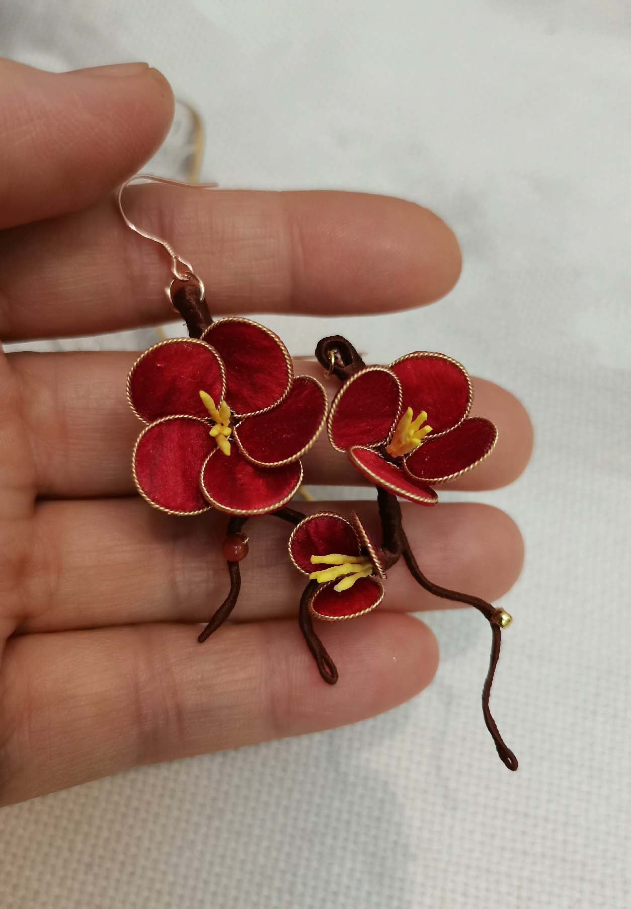 Independence Bespoke Earrings-Red Silk Earrings(Ronghua)