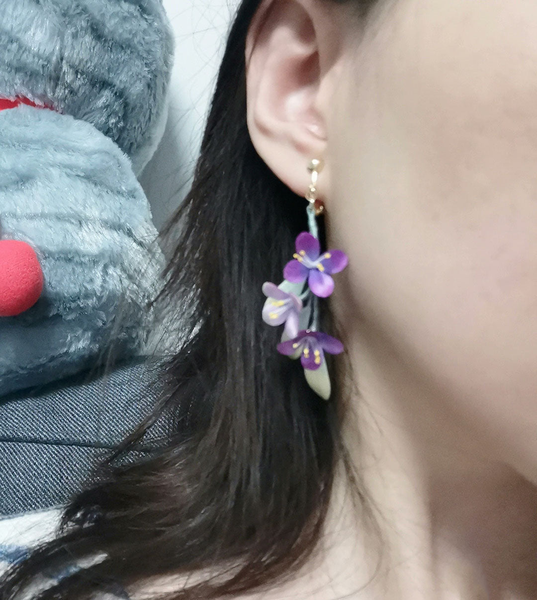 Purple Bespoke Earrings - Silk Earrings(Ronghua)